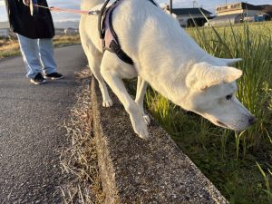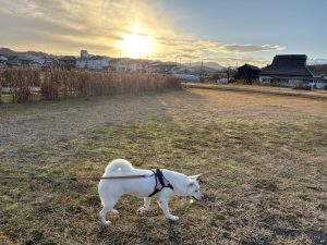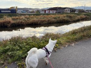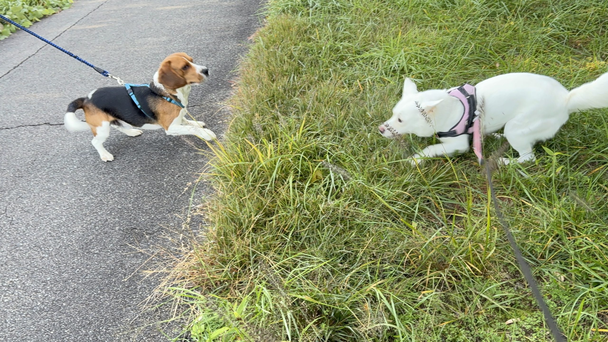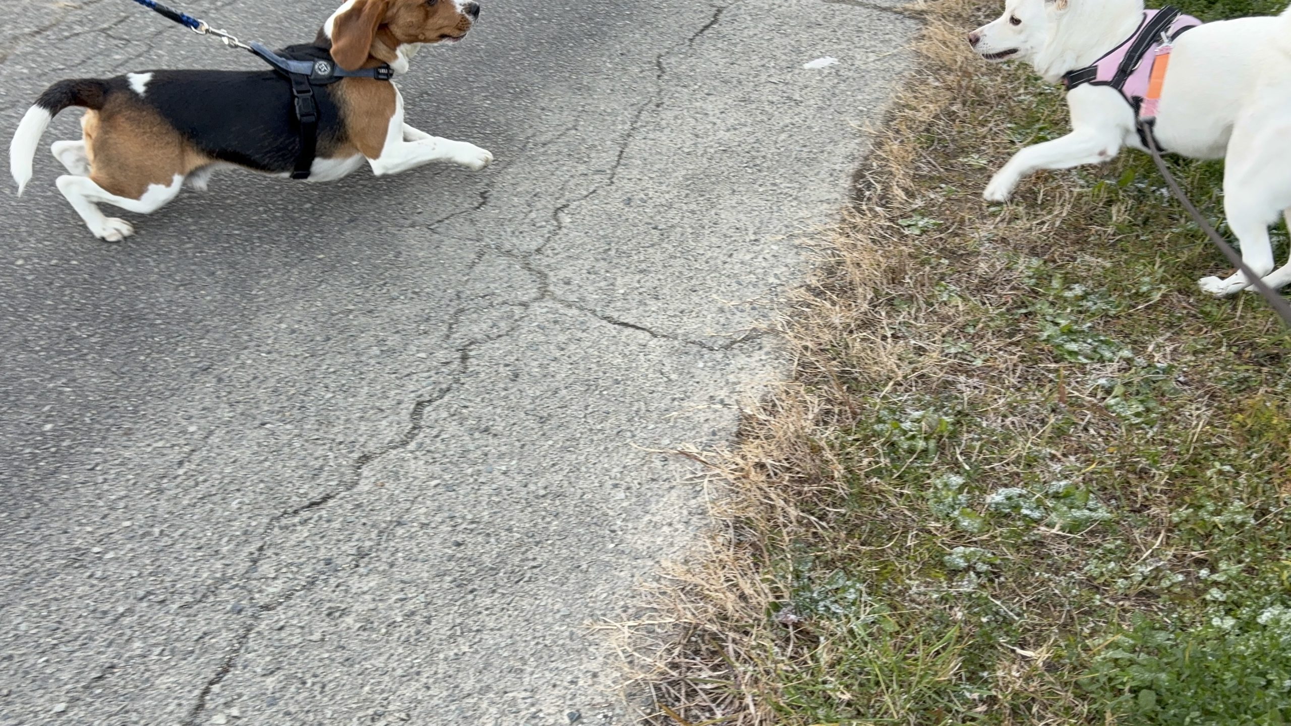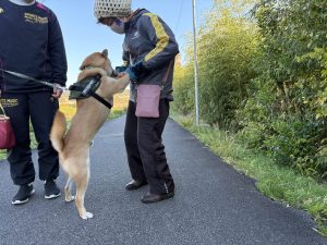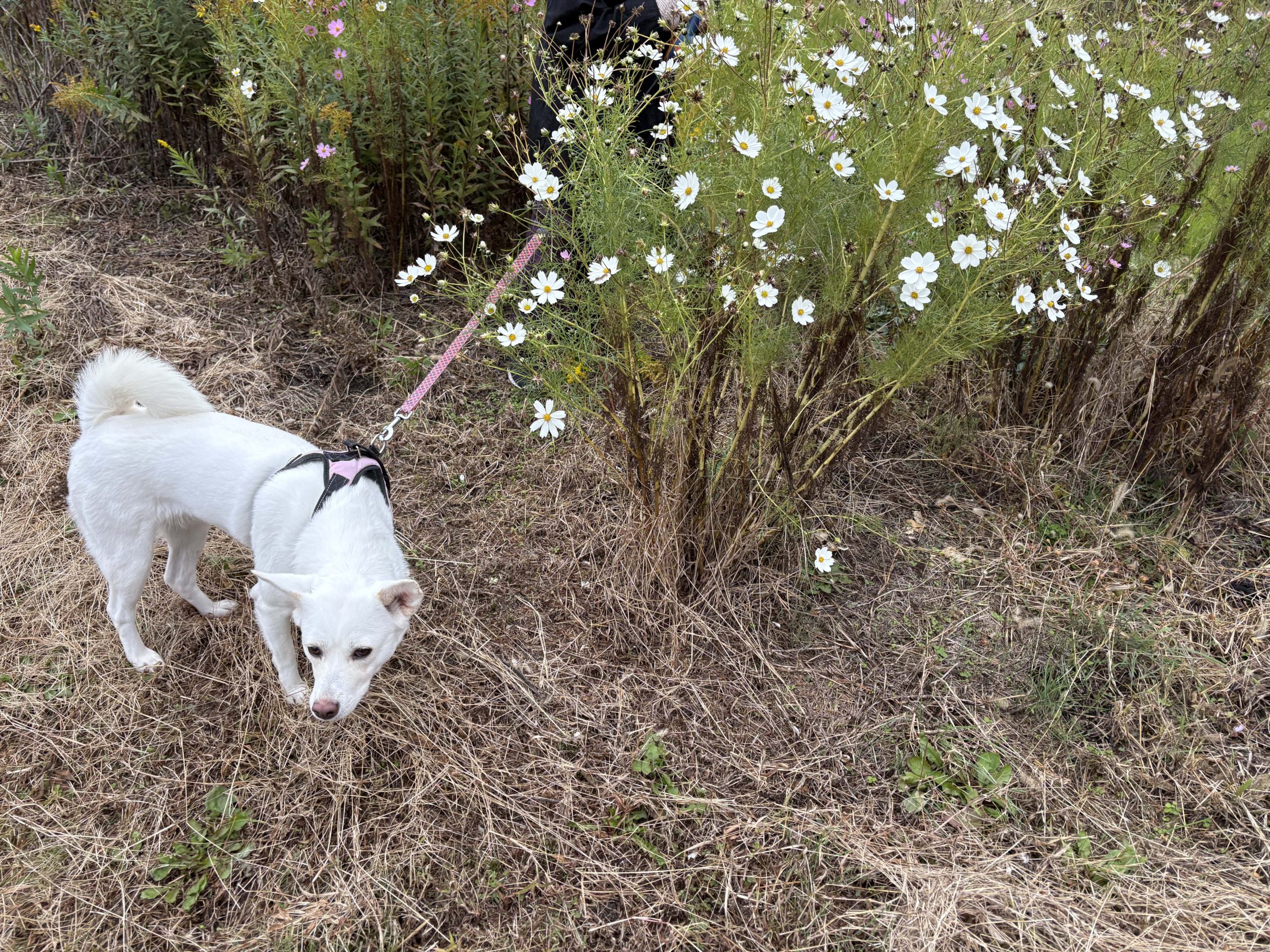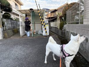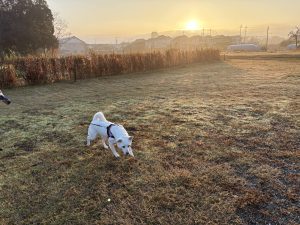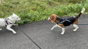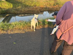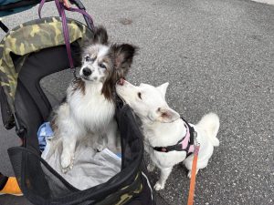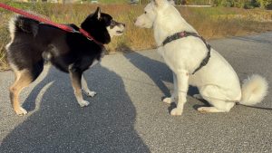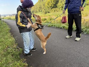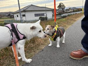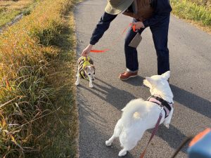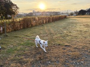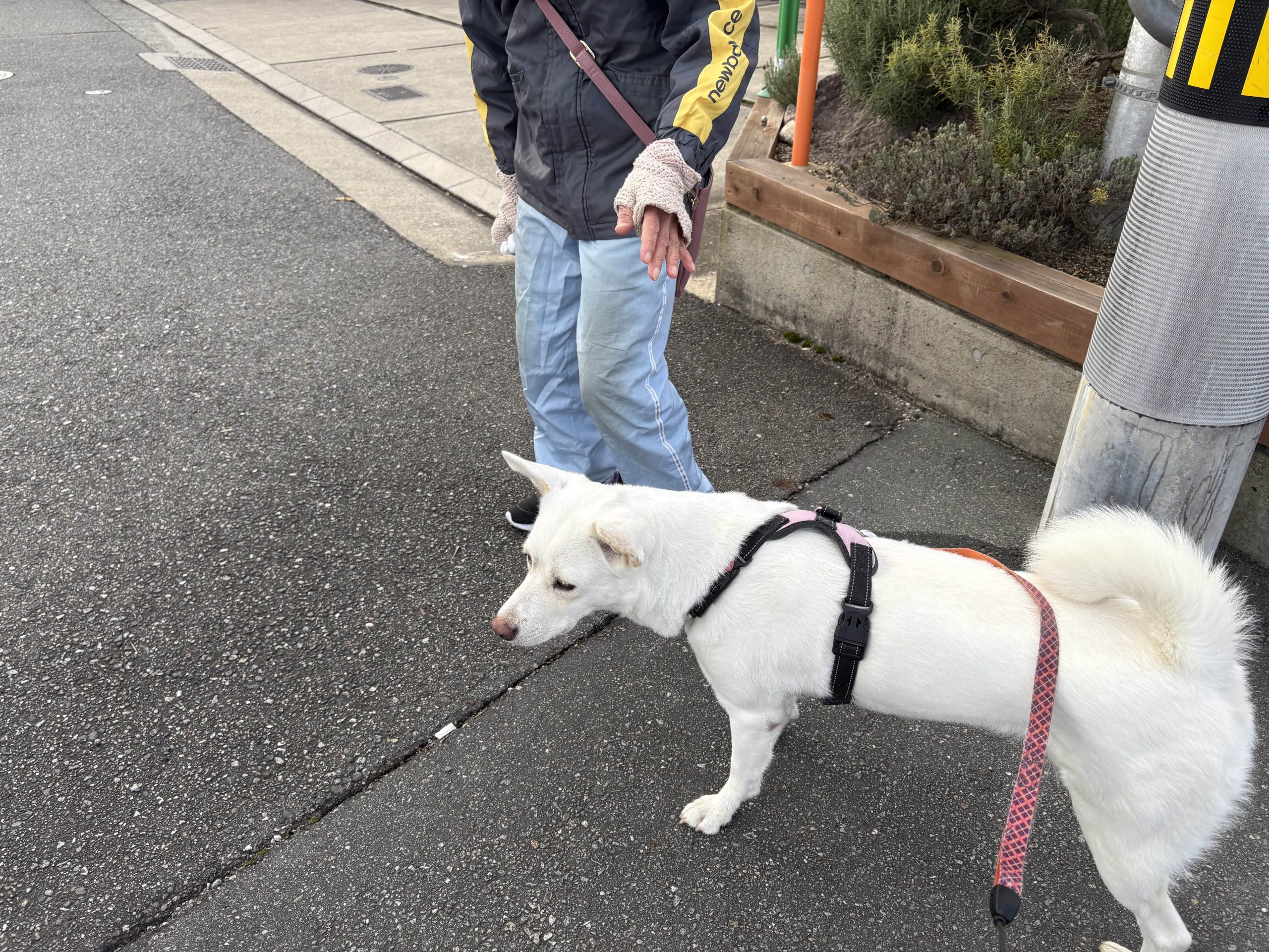 ヒラリちゃんは仕方なくお座りして、遠巻きにマルちゃんを見守りました(”◇”)ゞ