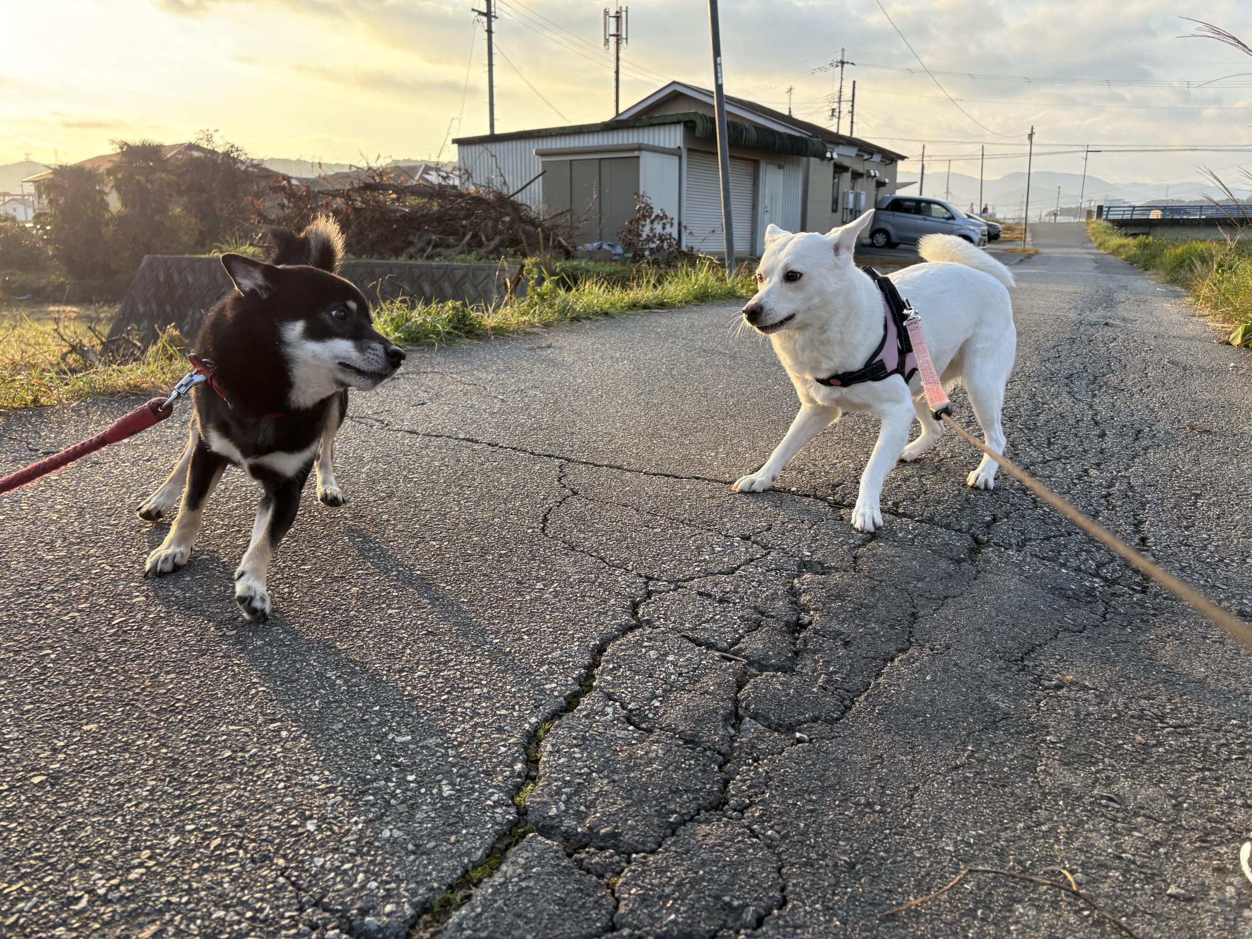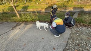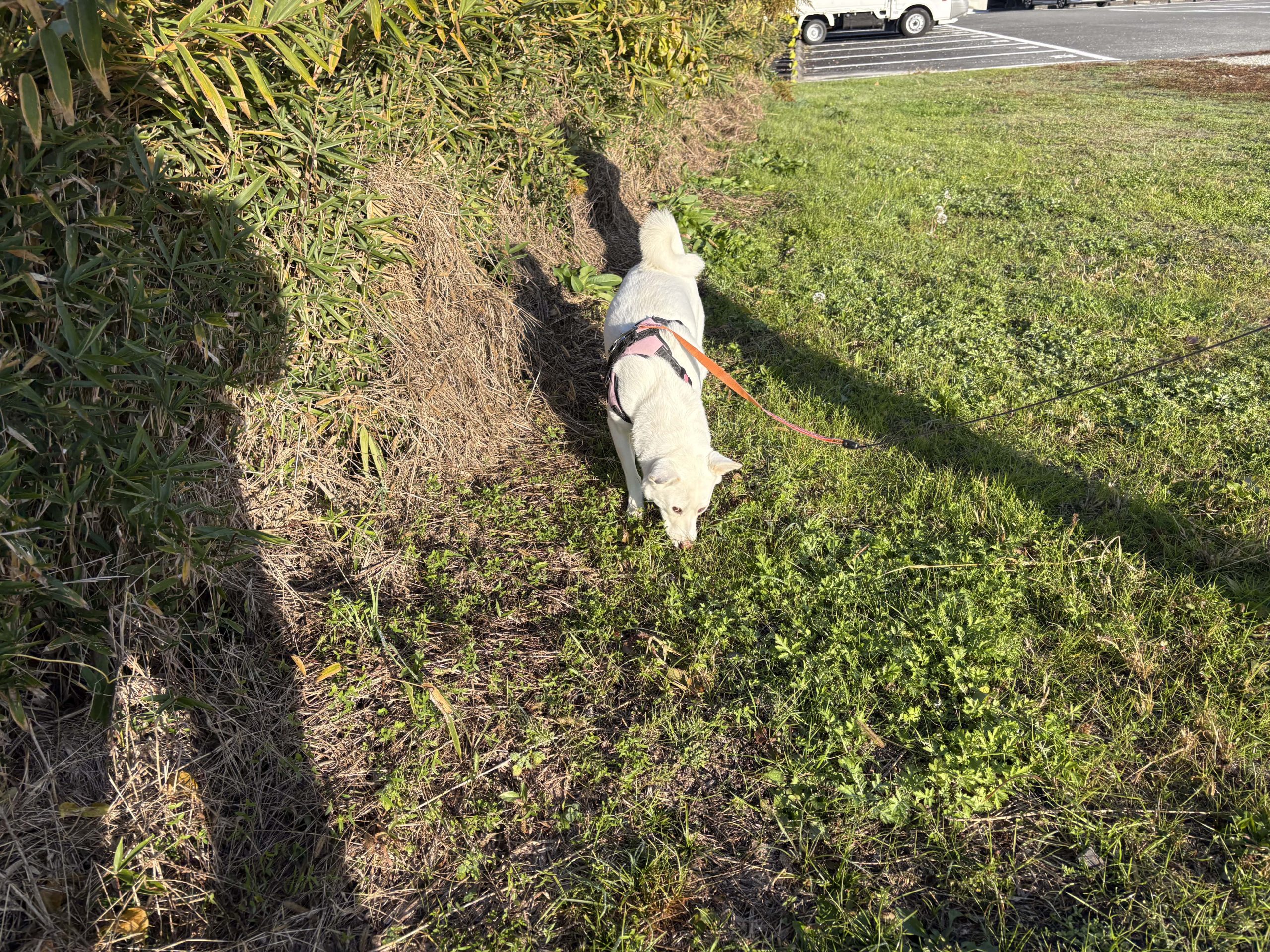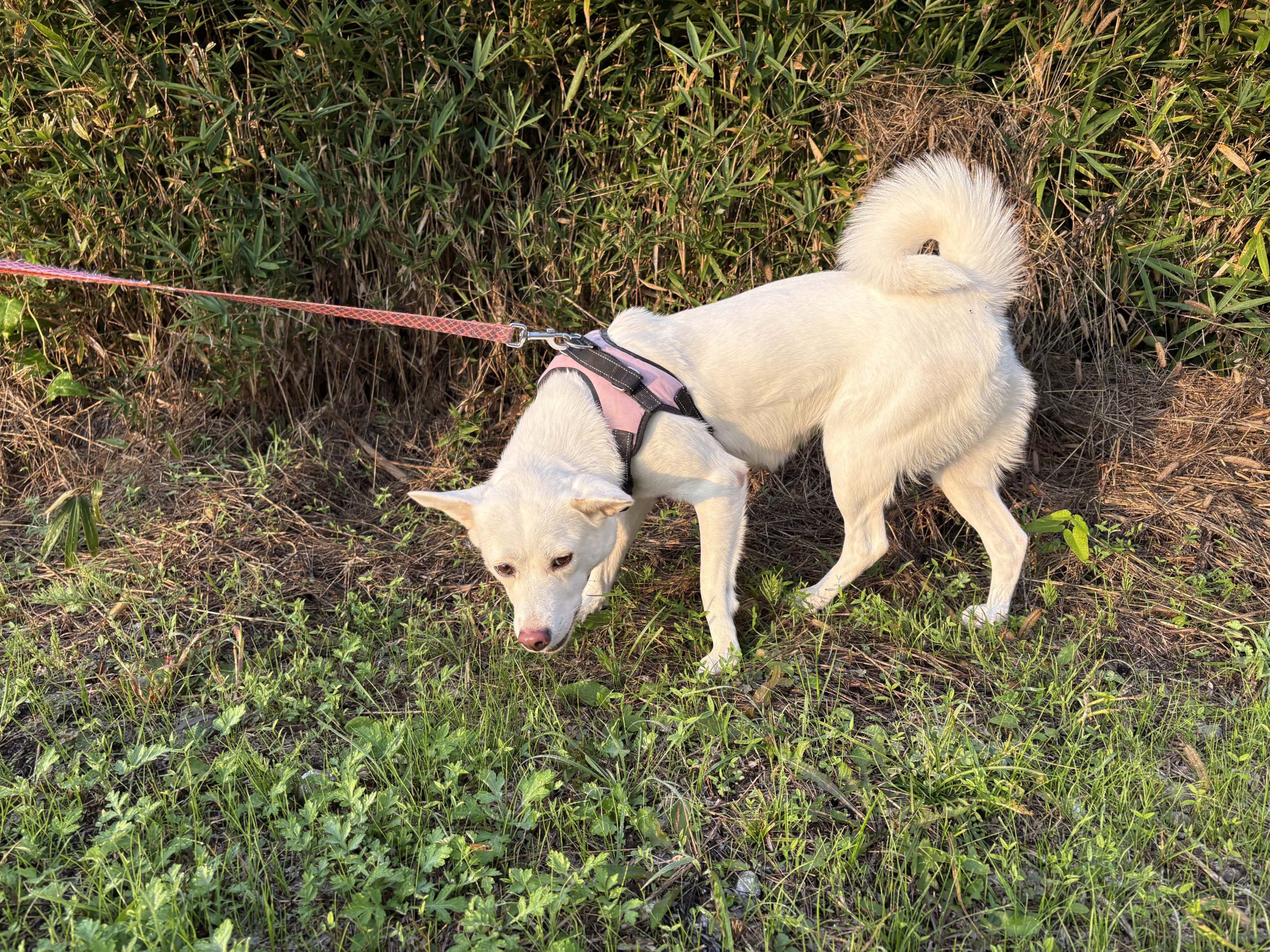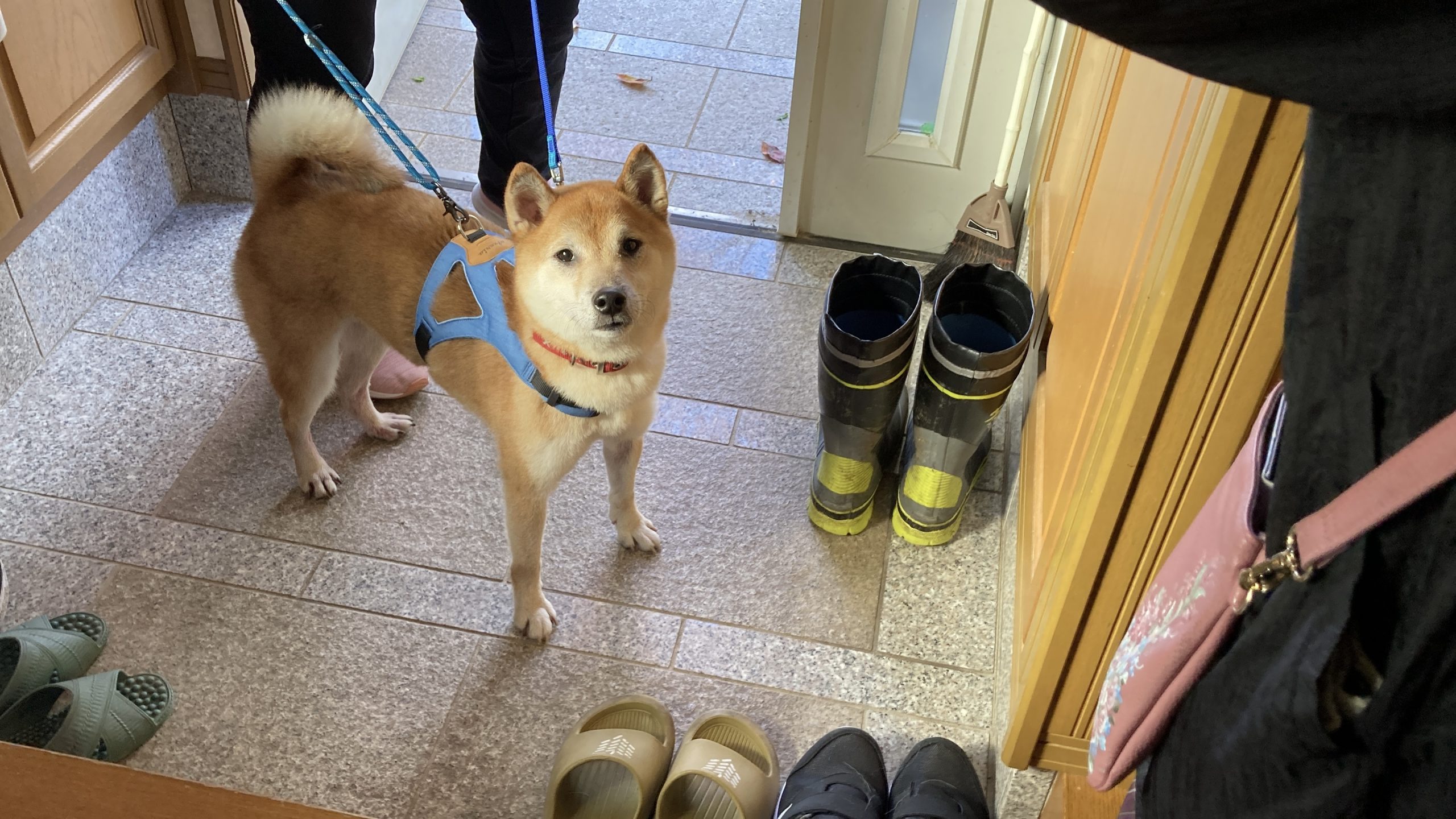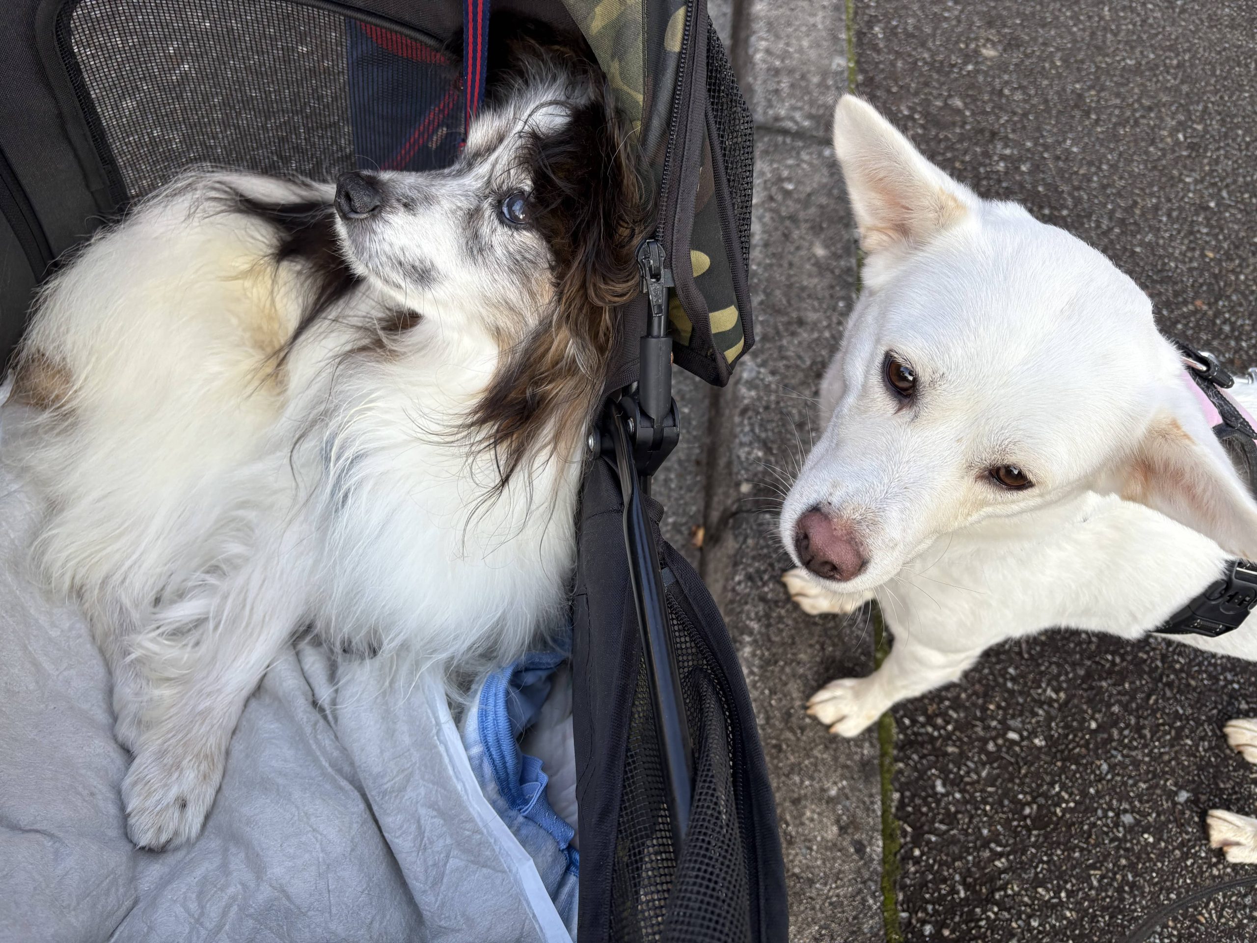 ヒラリちゃんは仕方なくお座りして、遠巻きにマルちゃんを見守りました(”◇”)ゞ