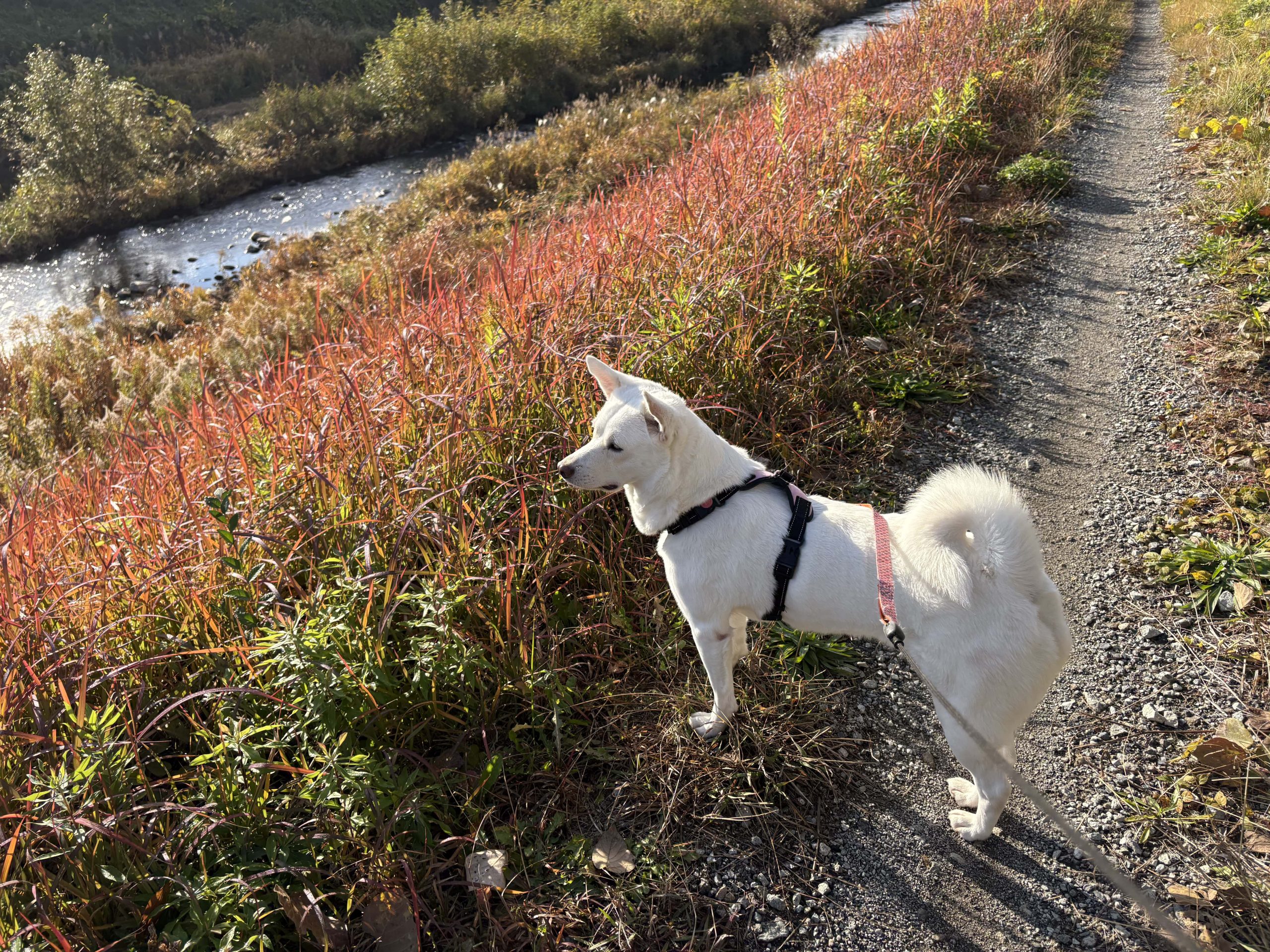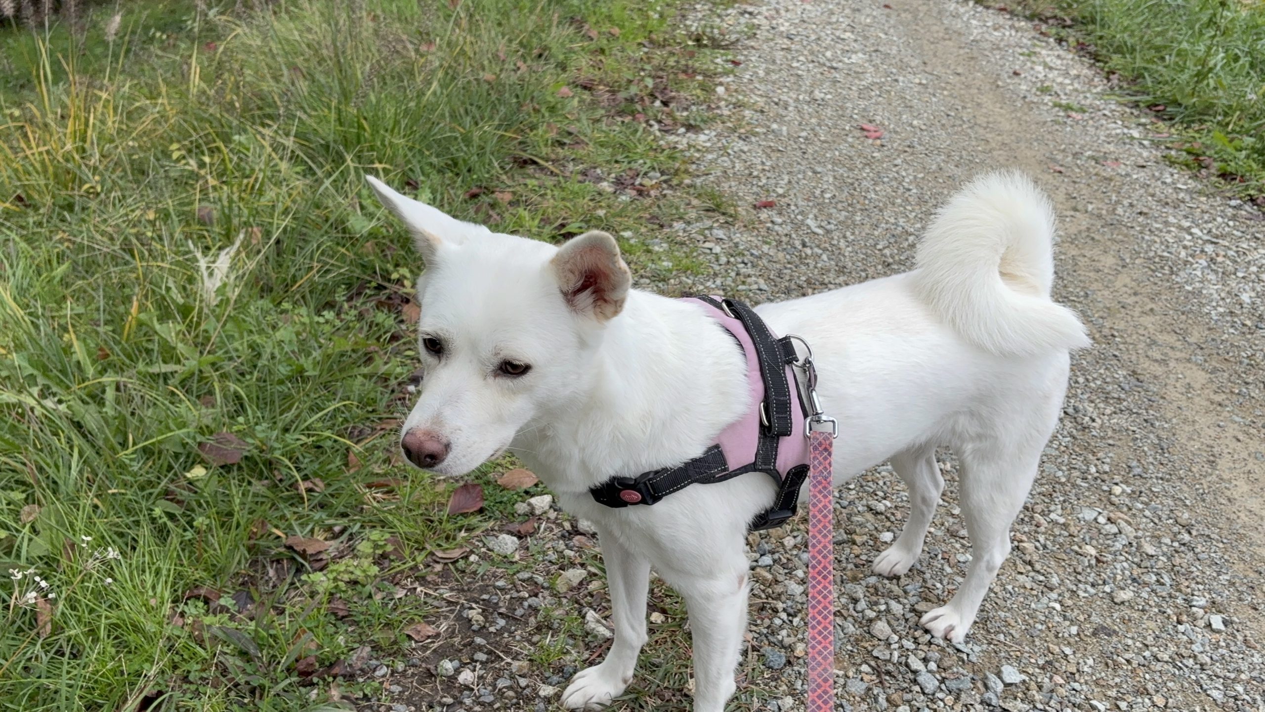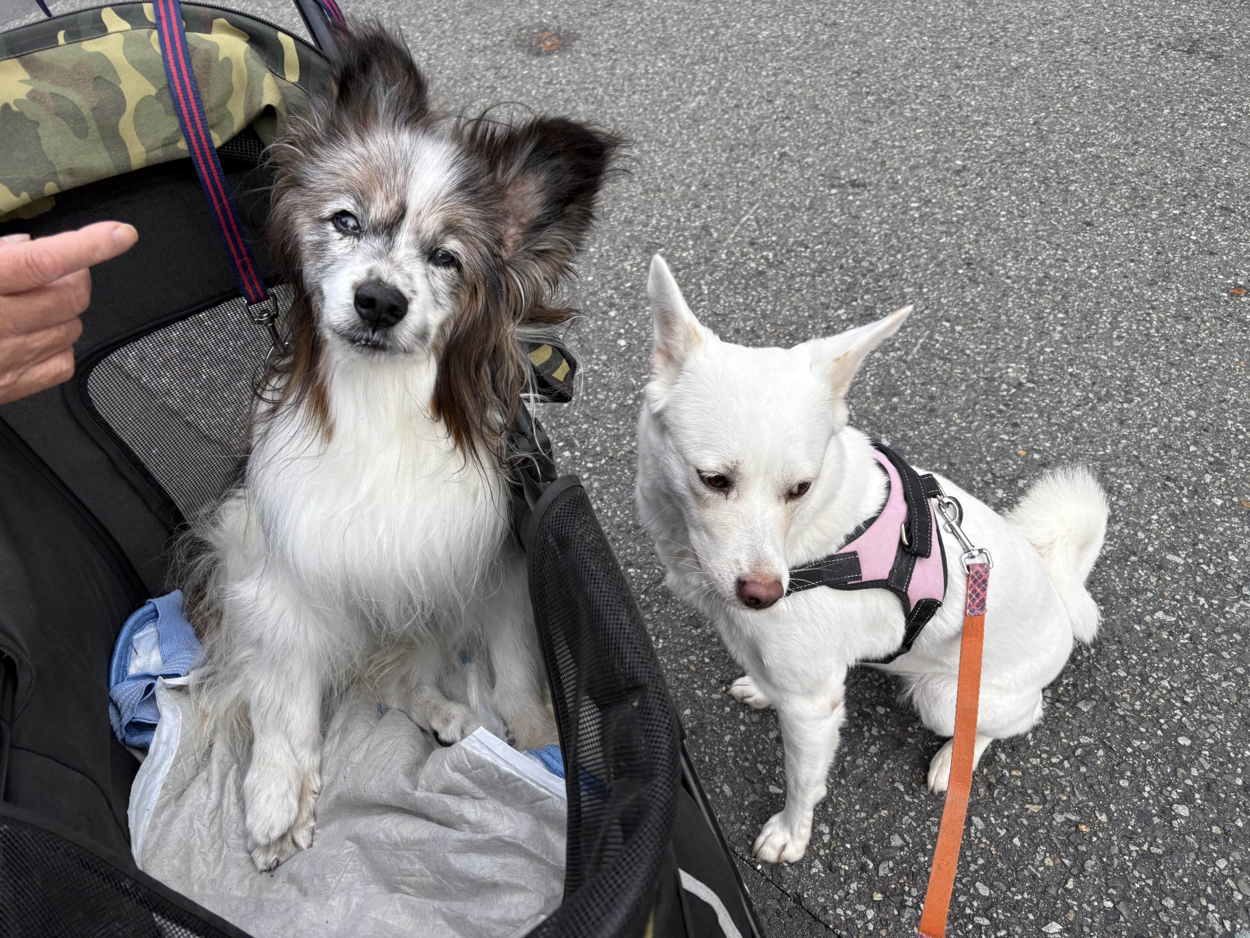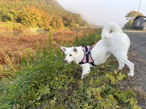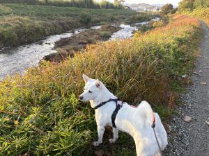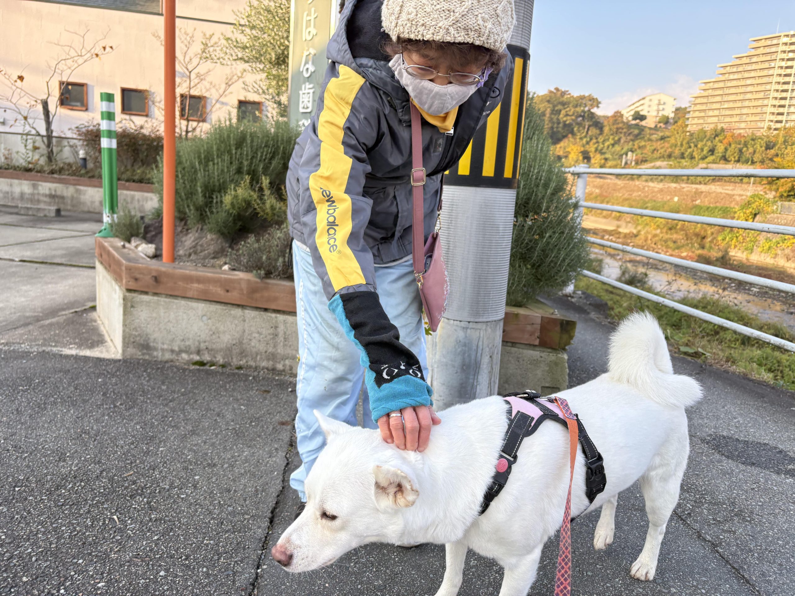 ヒラリちゃんは仕方なくお座りして、遠巻きにマルちゃんを見守りました(”◇”)ゞ