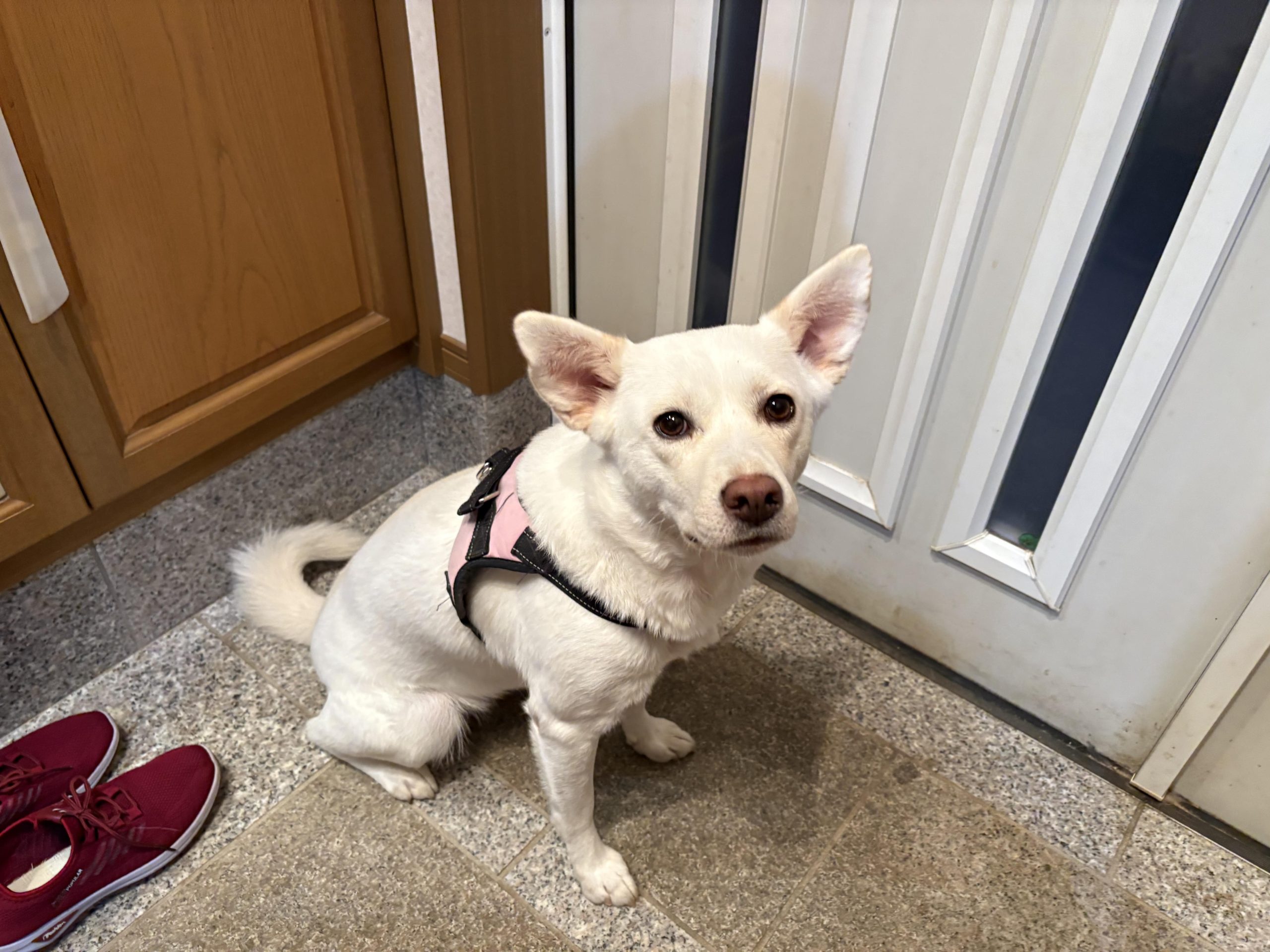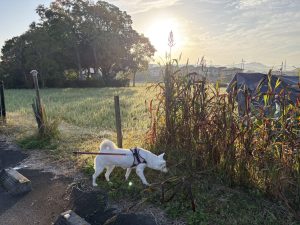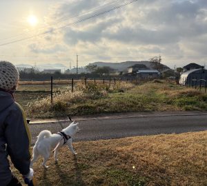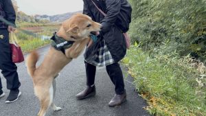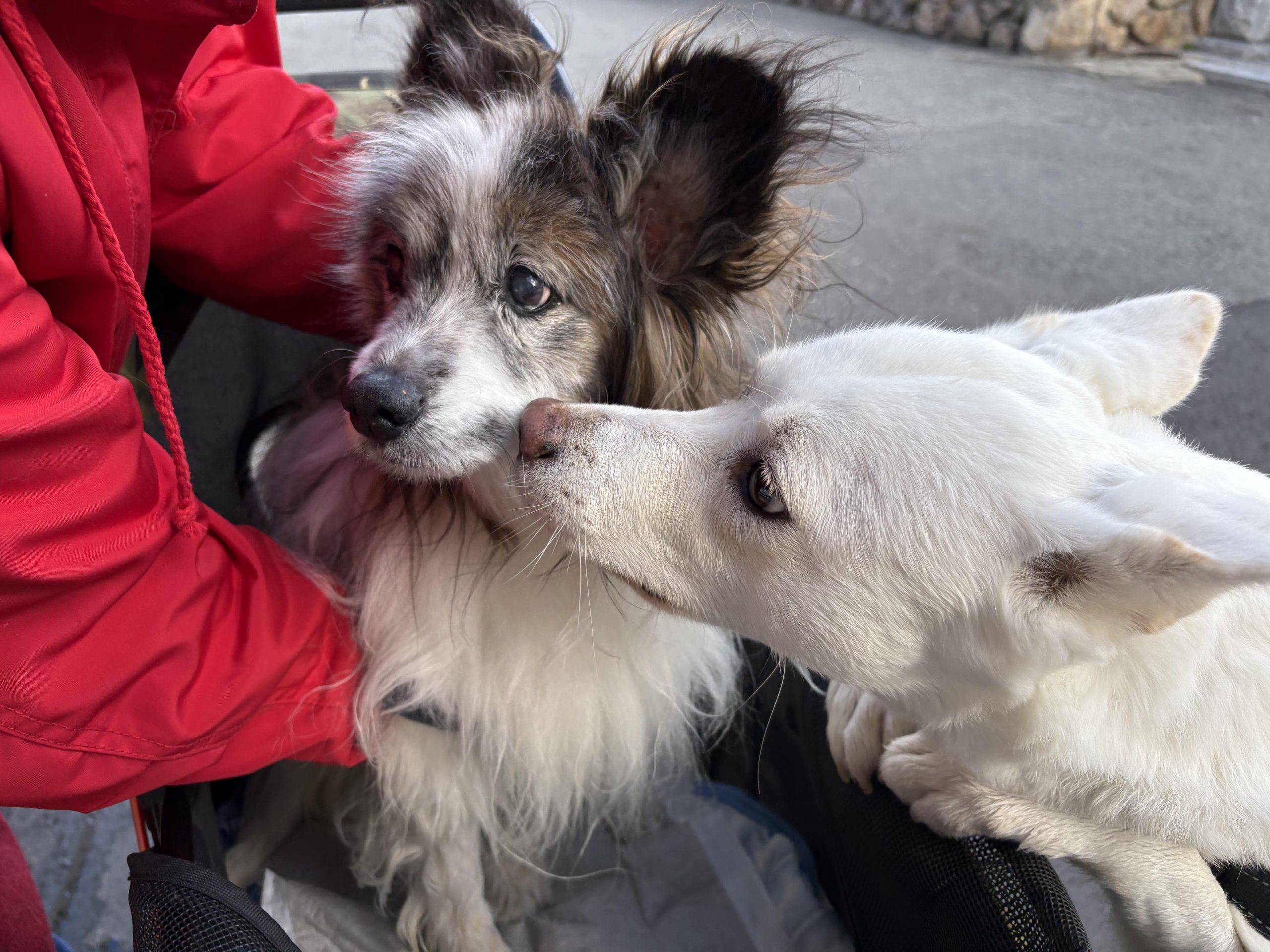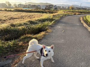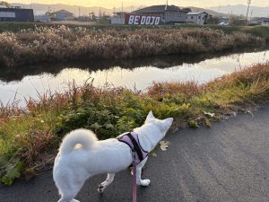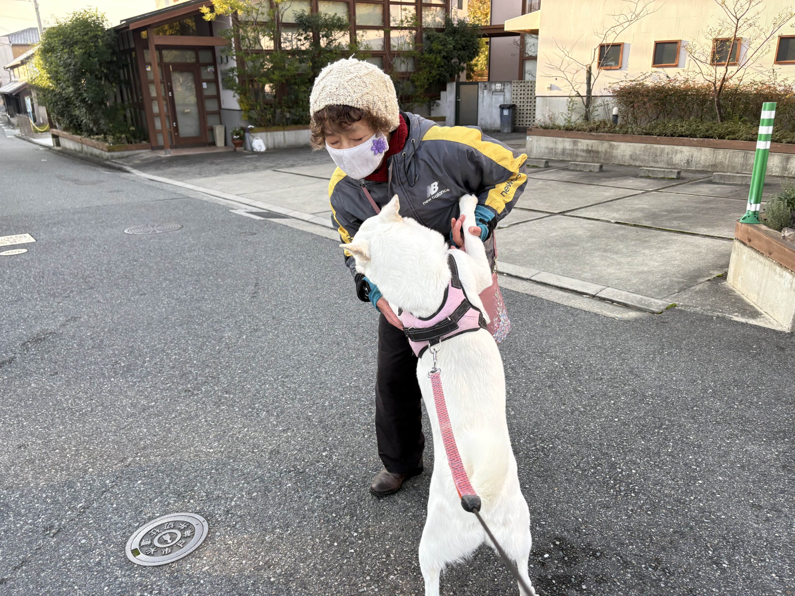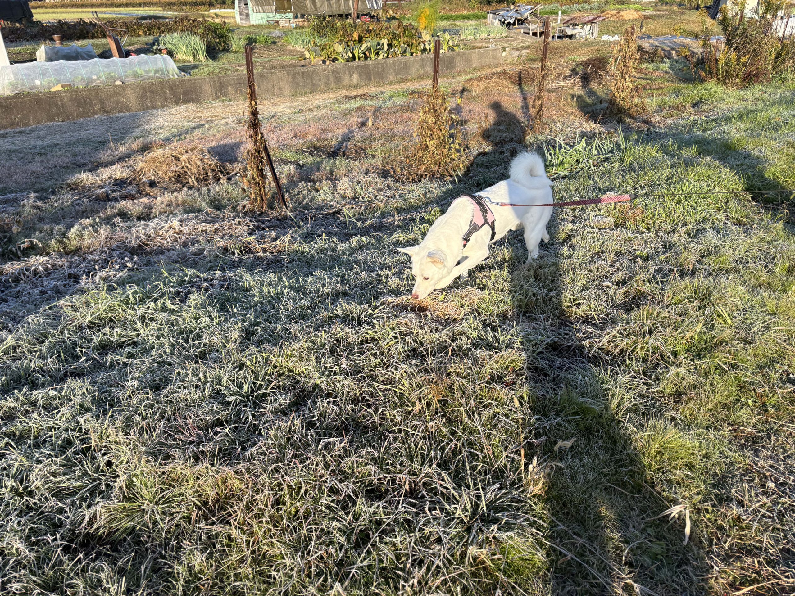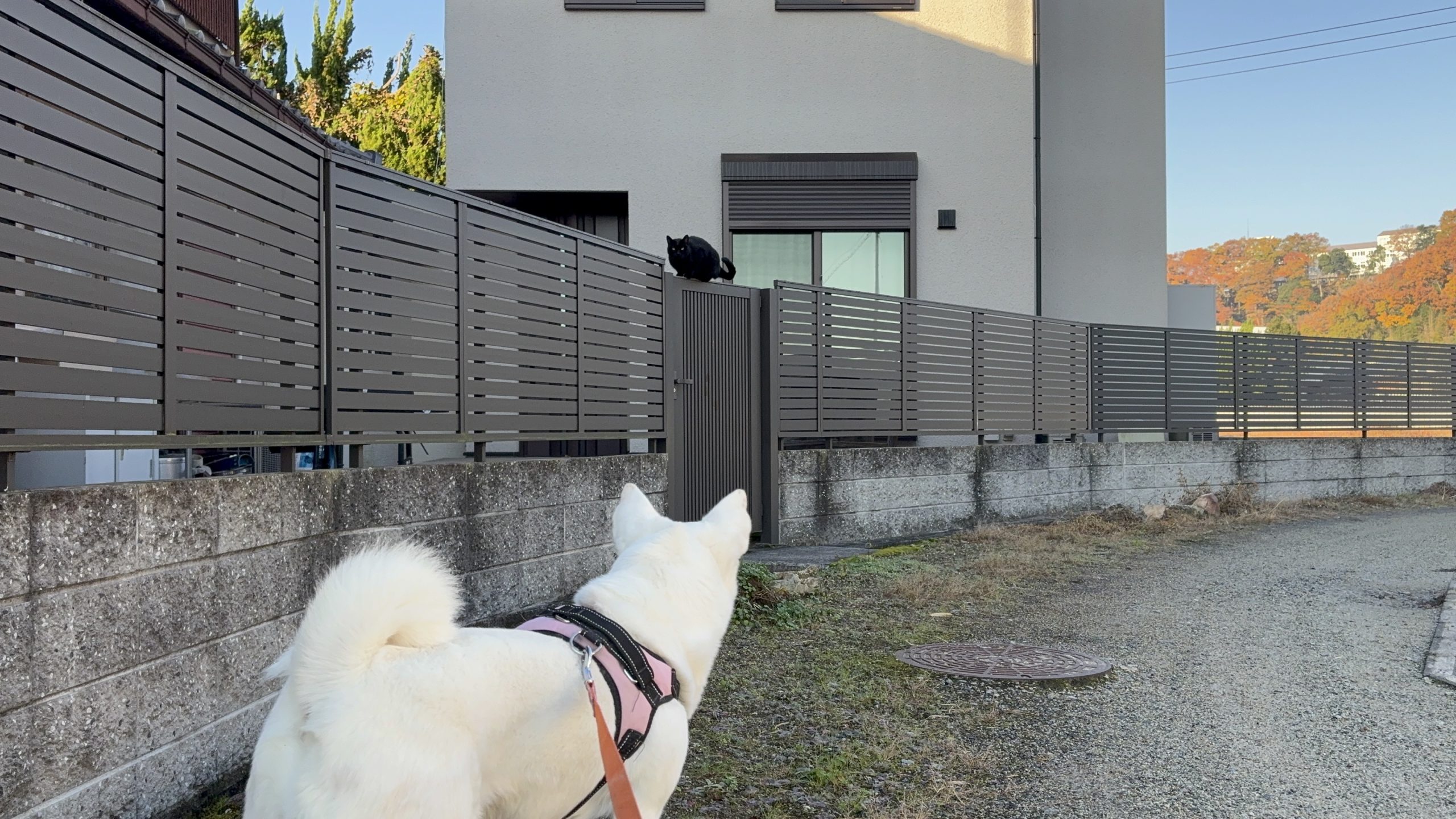 ヒラリちゃんは仕方なくお座りして、遠巻きにマルちゃんを見守りました(”◇”)ゞ