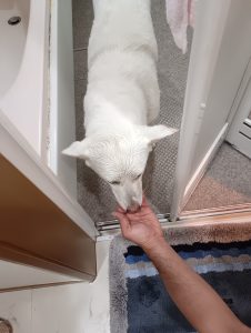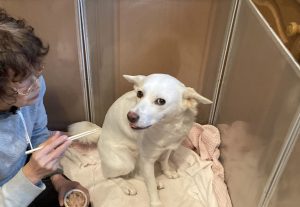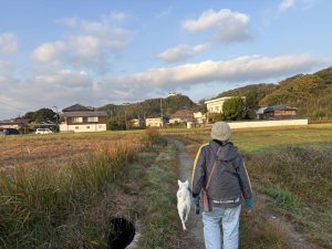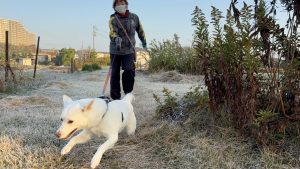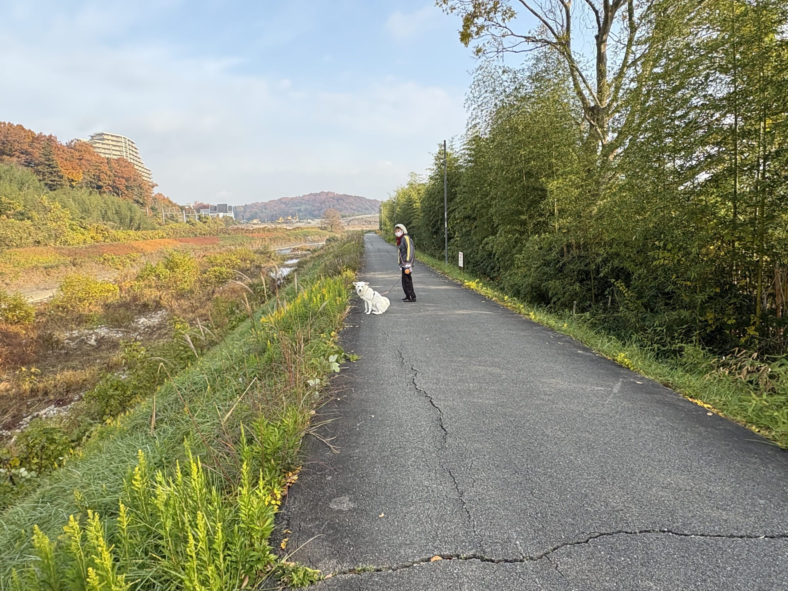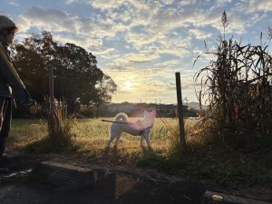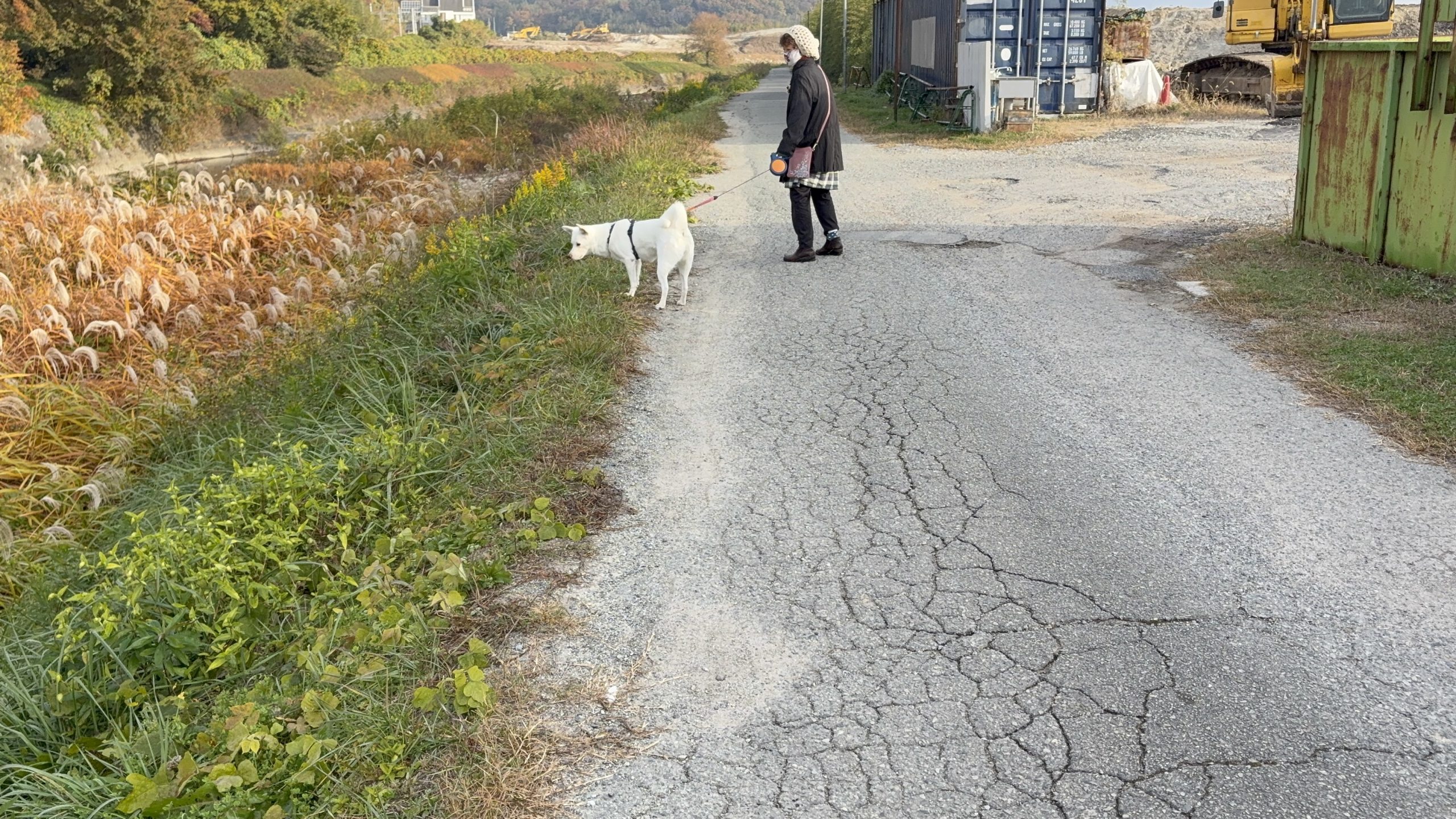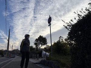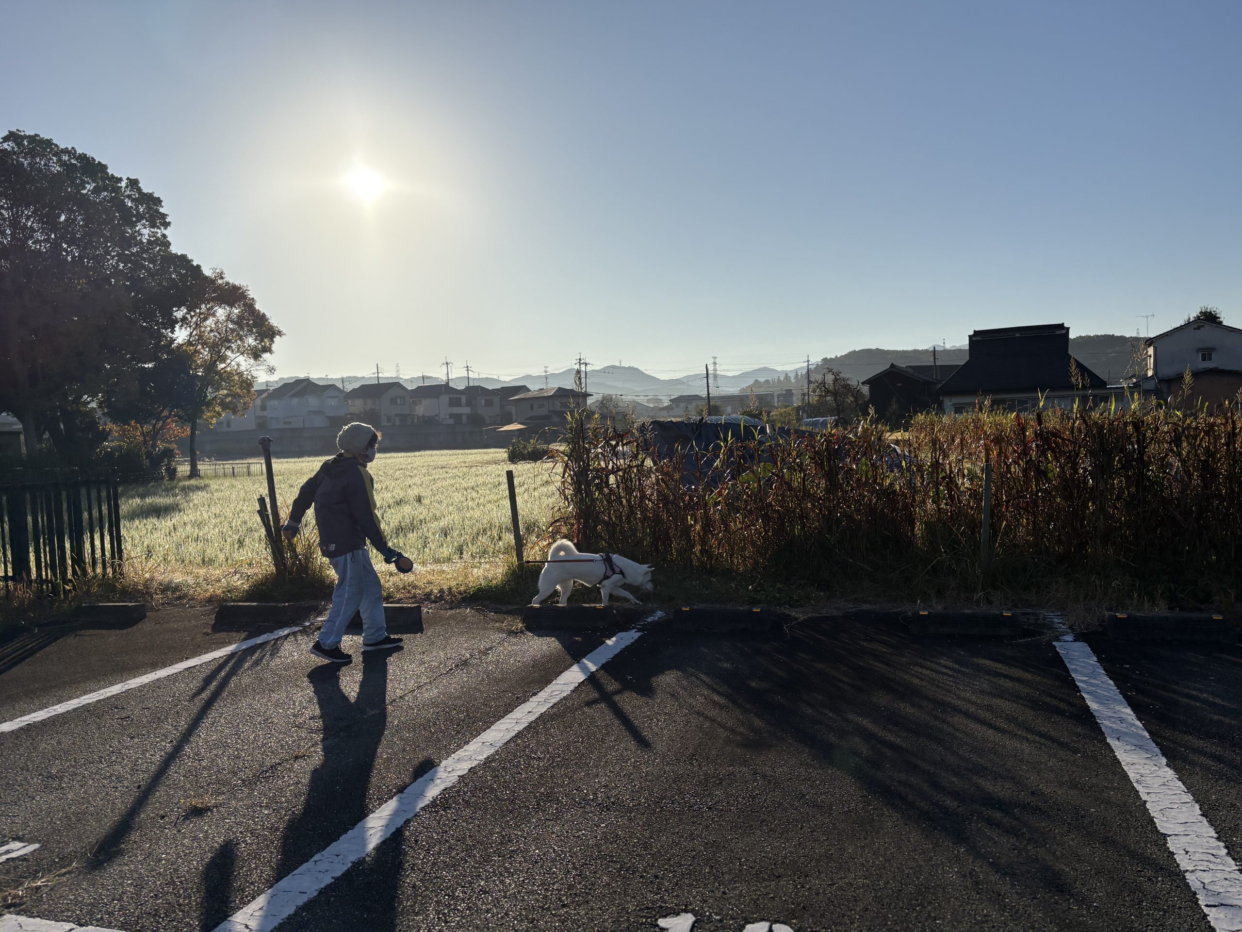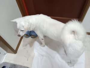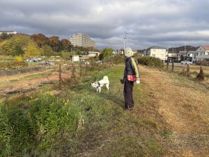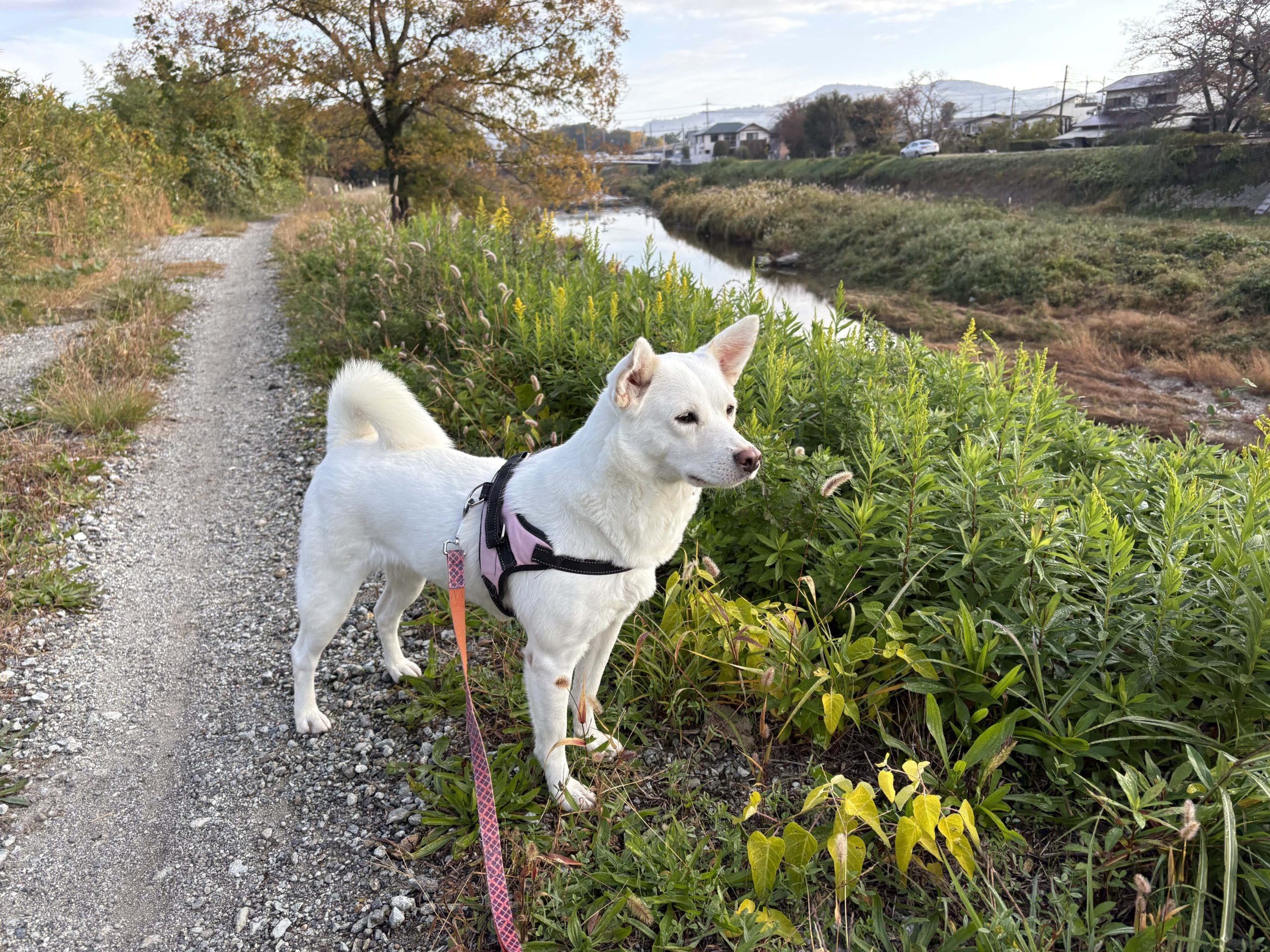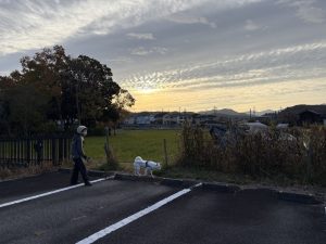 ヒラリちゃんは仕方なくお座りして、遠巻きにマルちゃんを見守りました(”◇”)ゞ