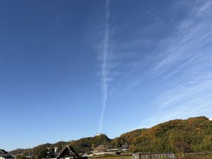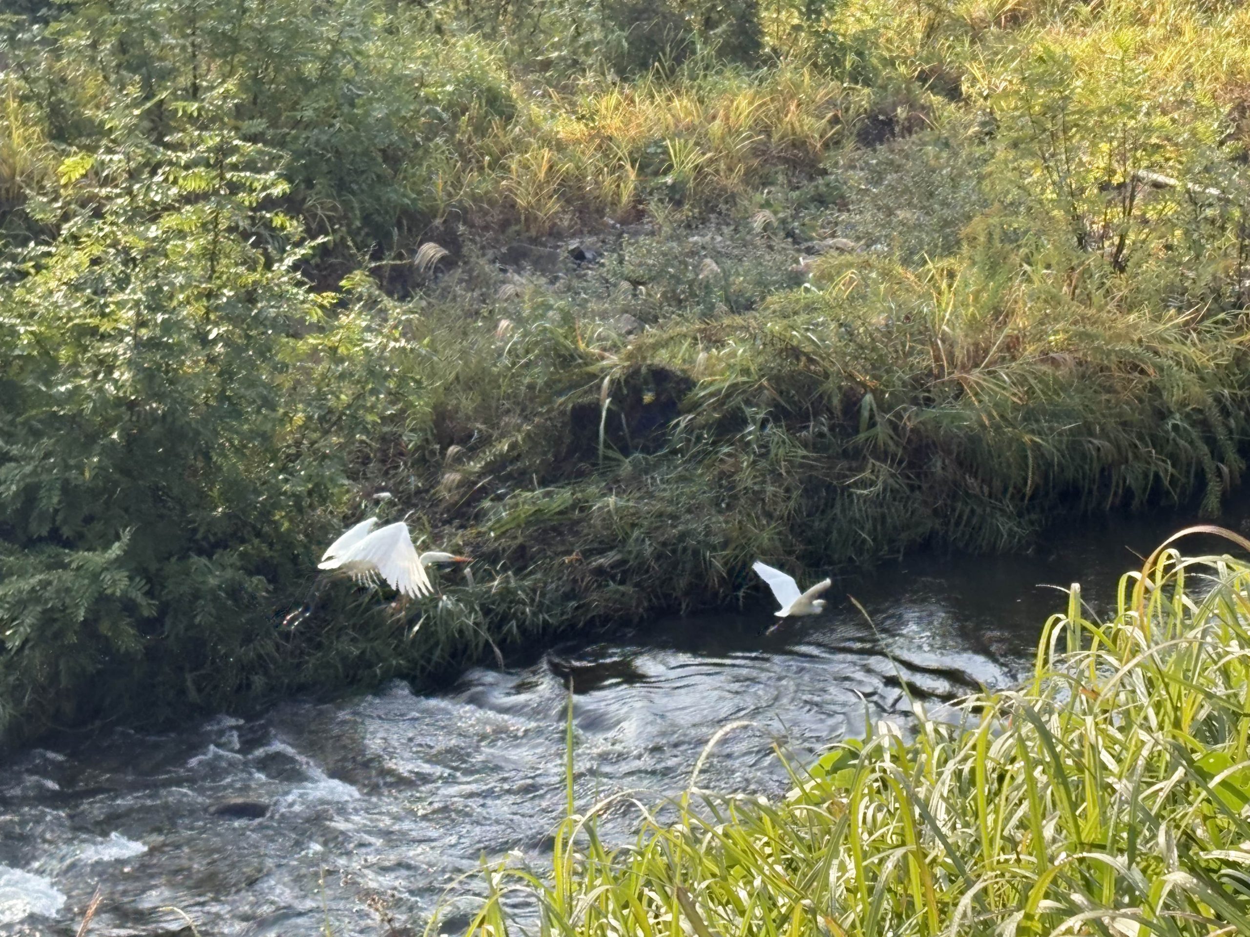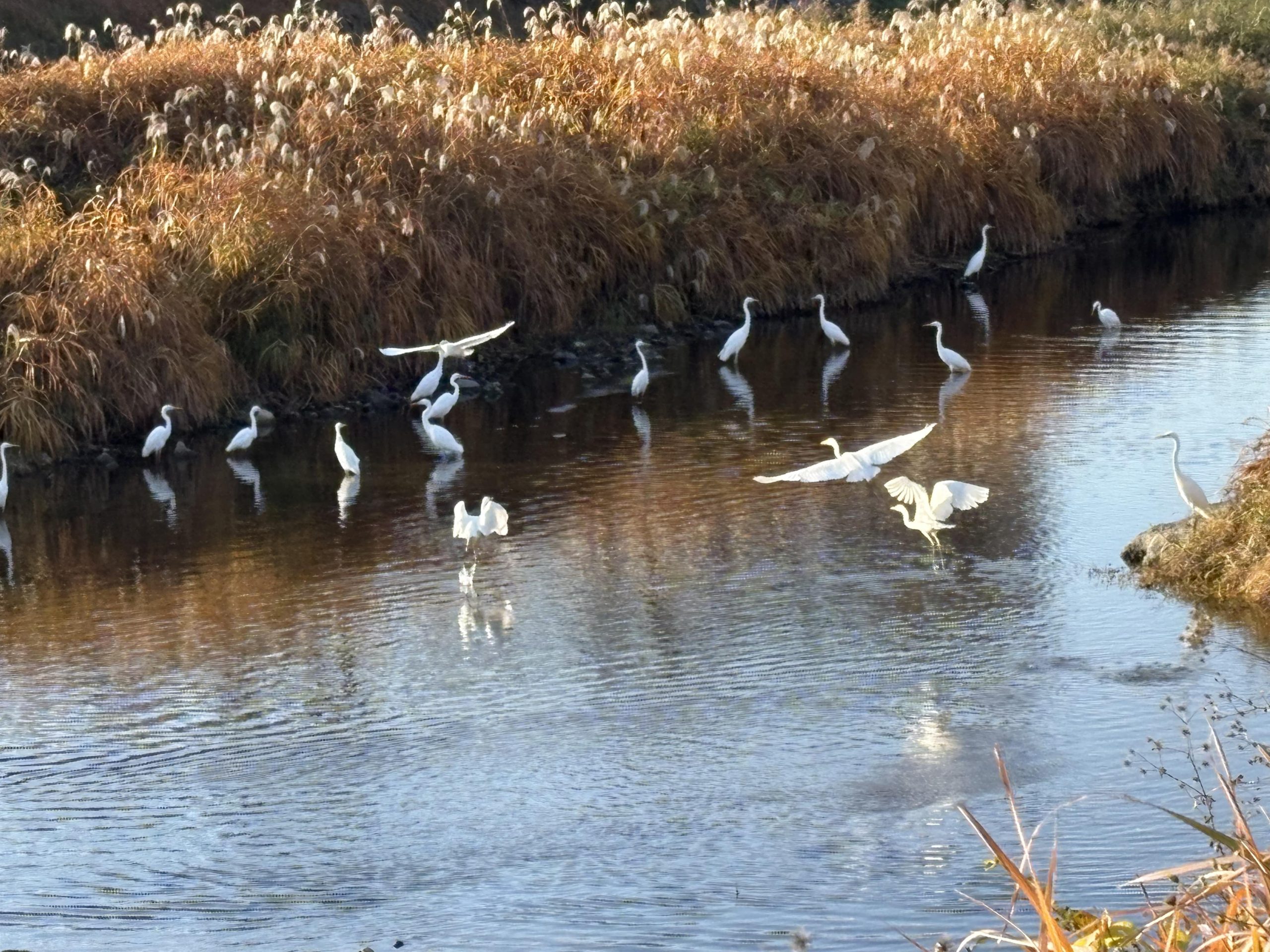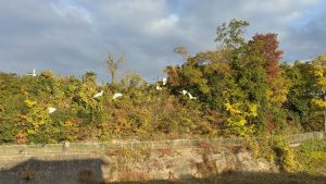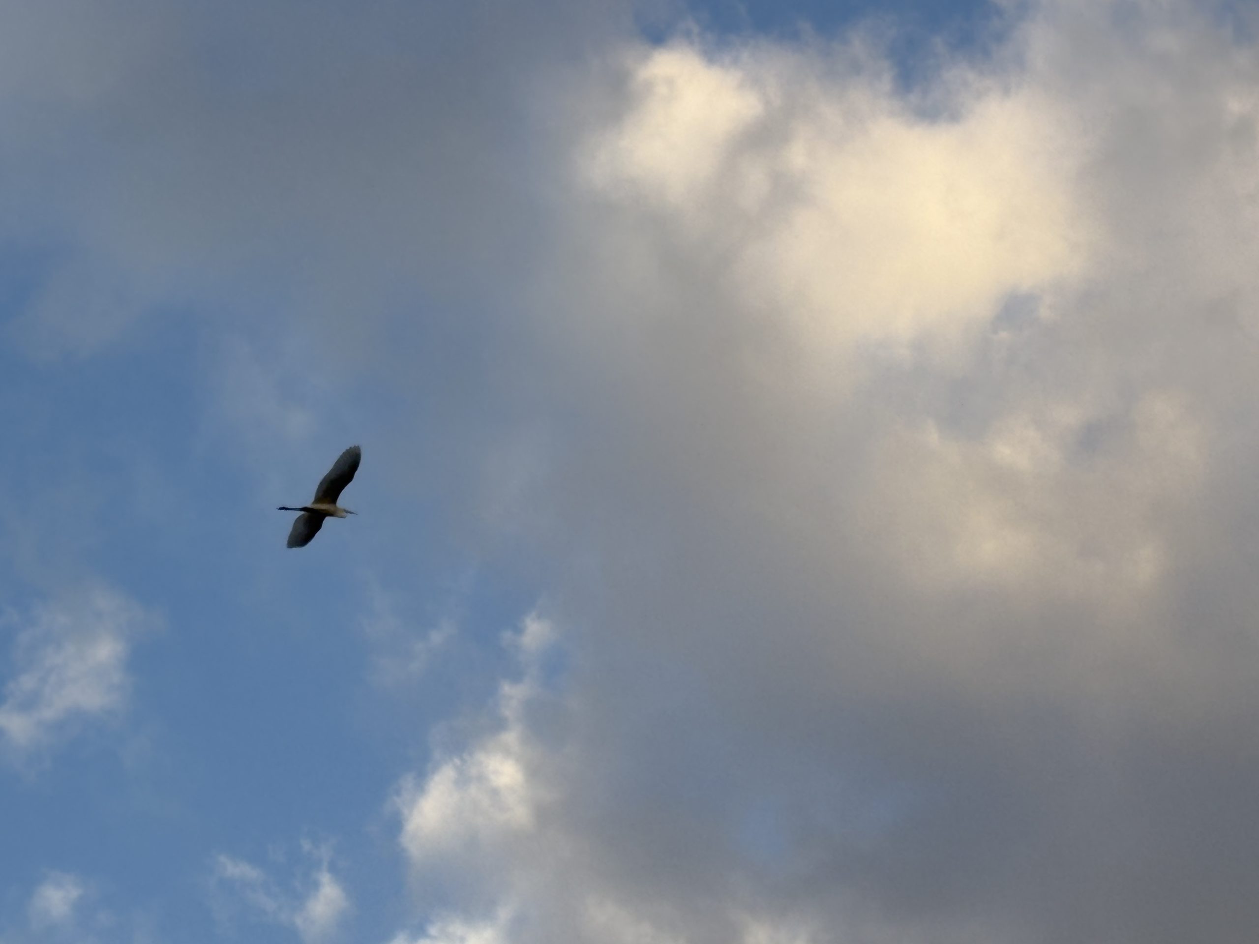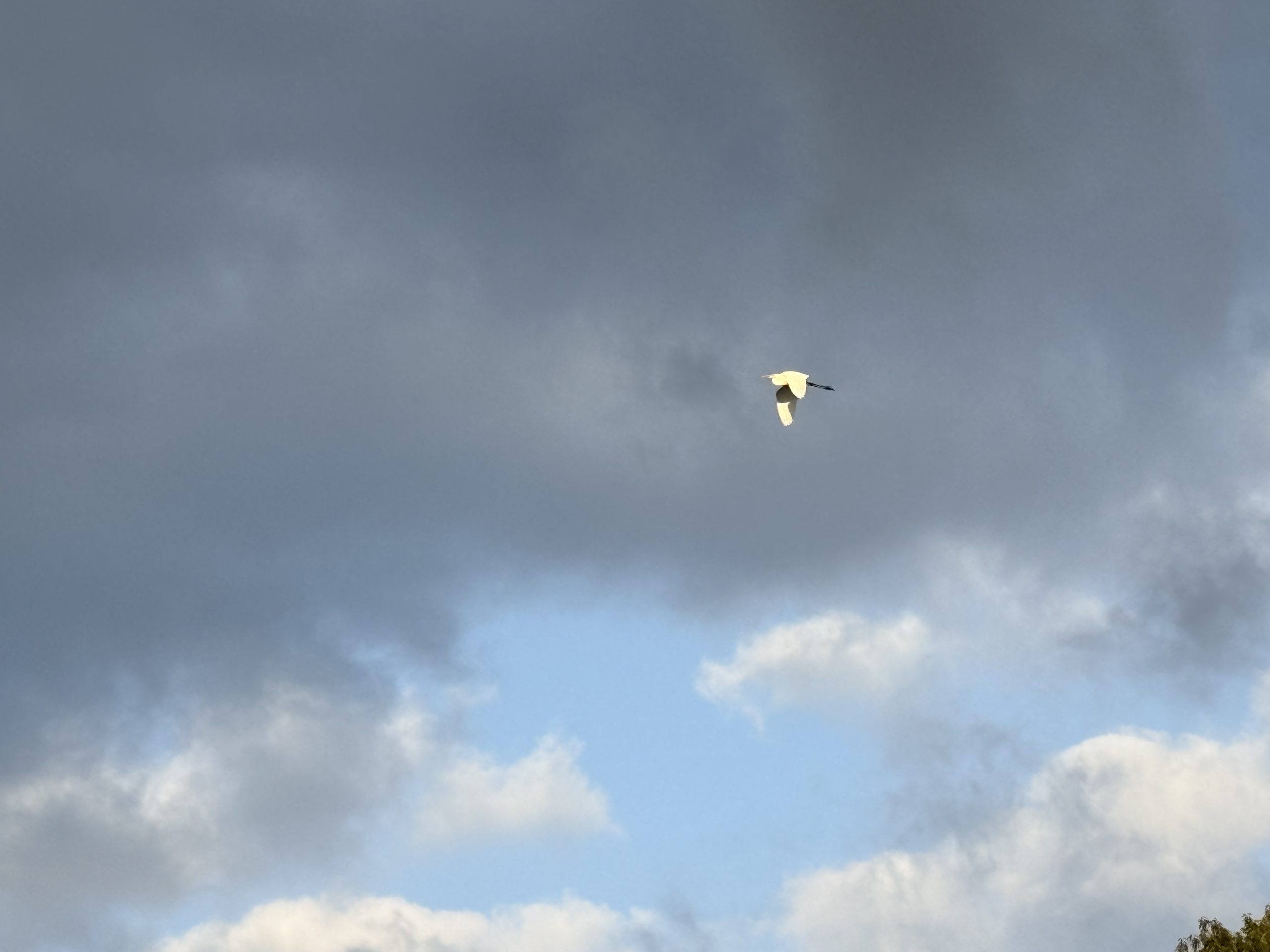 シラサギさんは 紅葉した杜の空を高く飛びました🍂