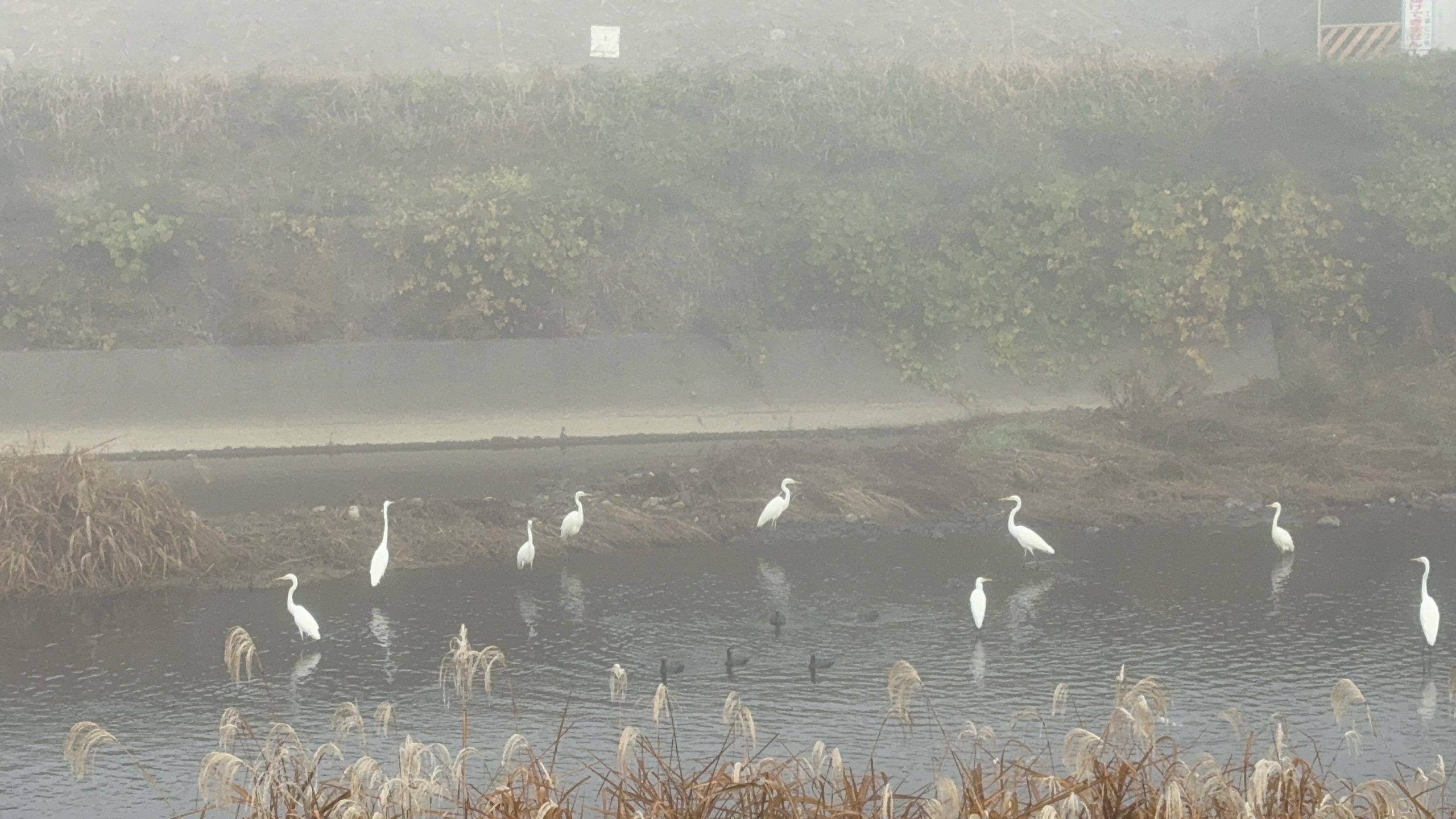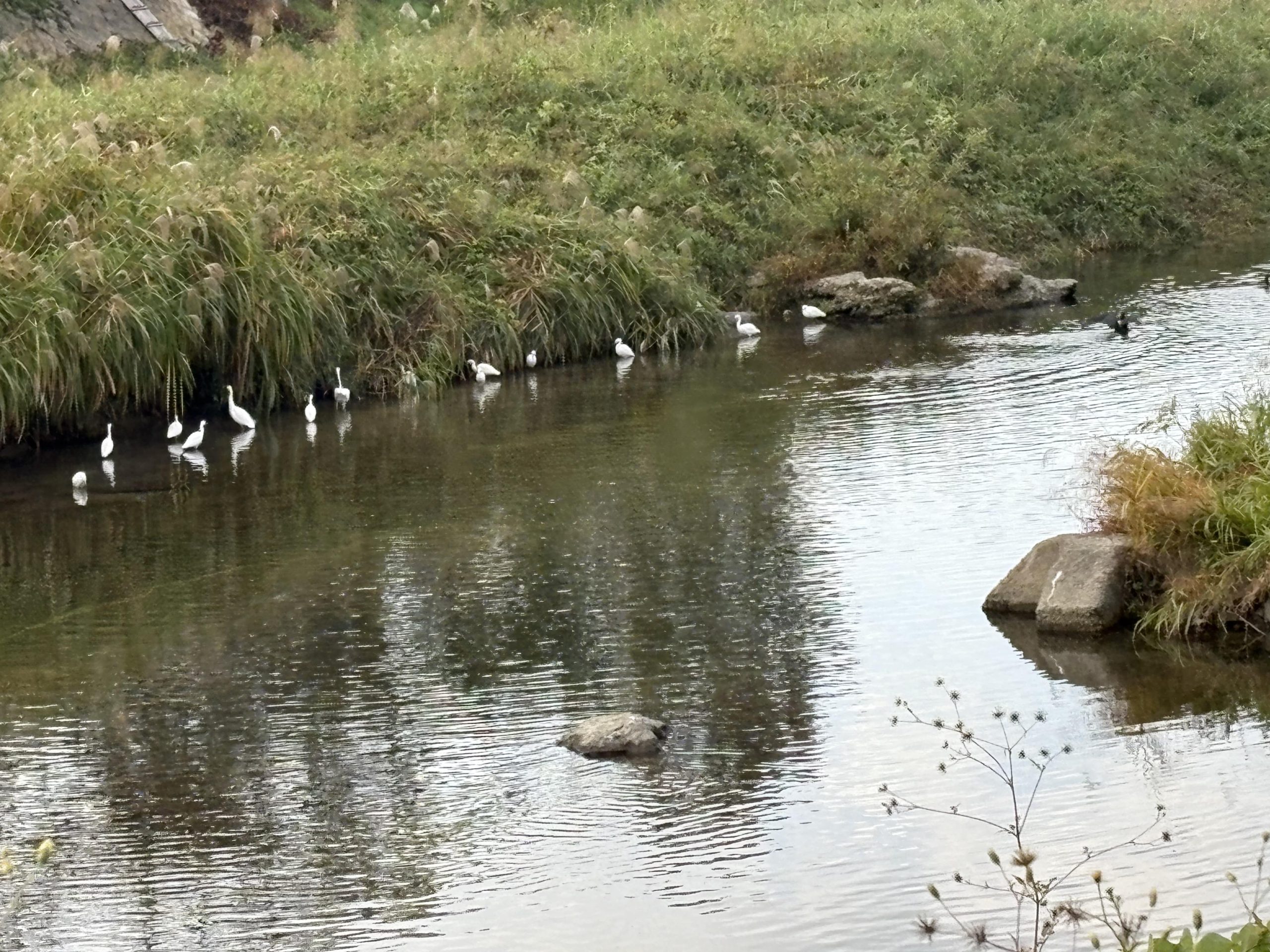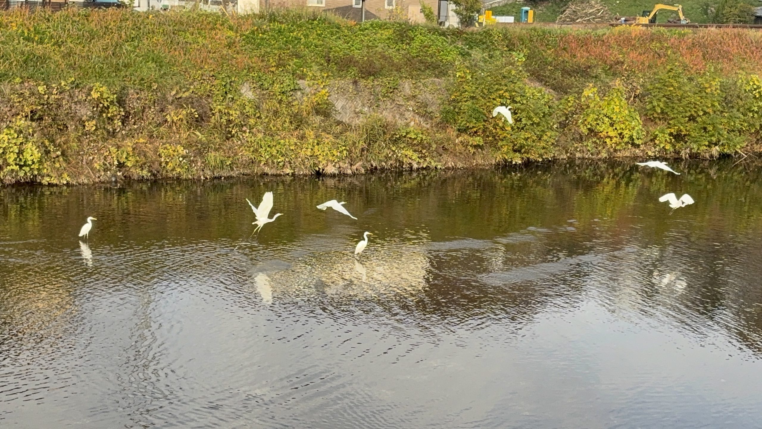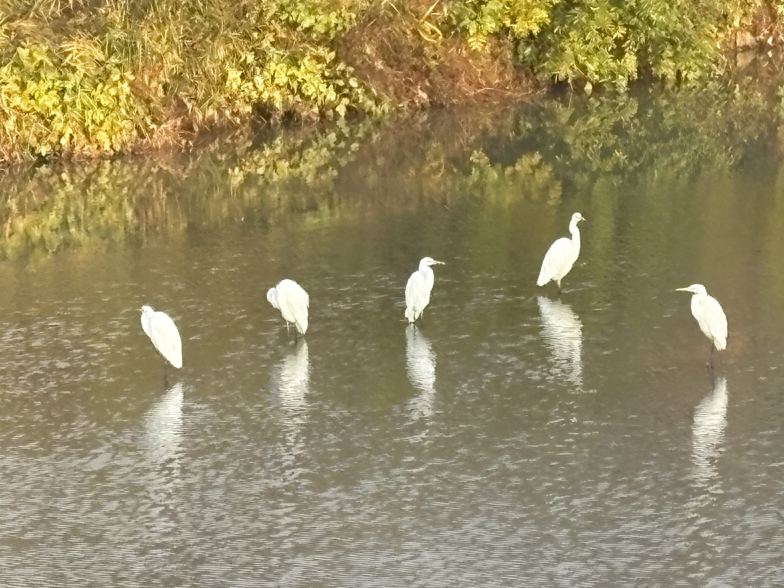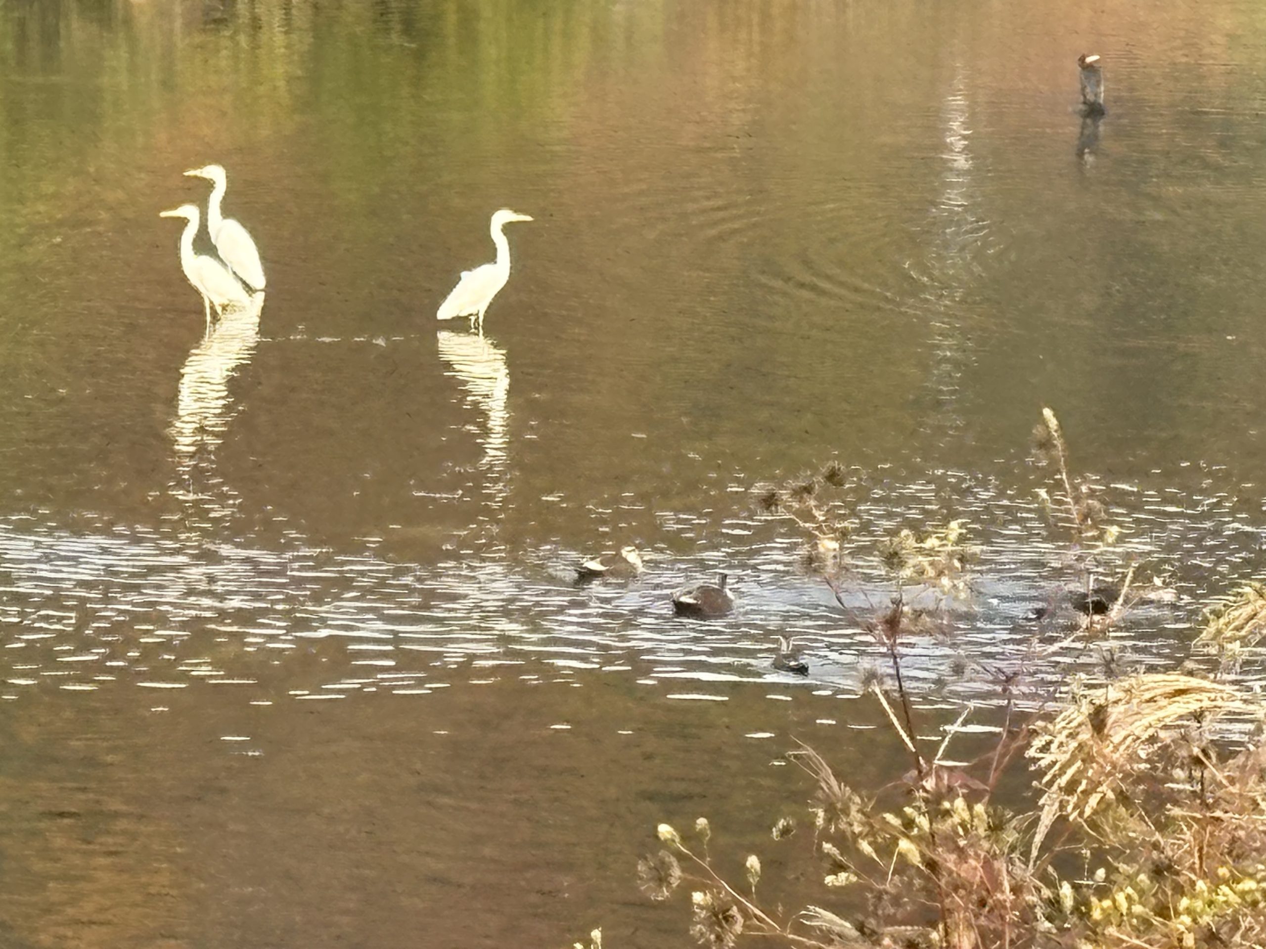 シラサギさんは 紅葉した杜の空を高く飛びました🍂