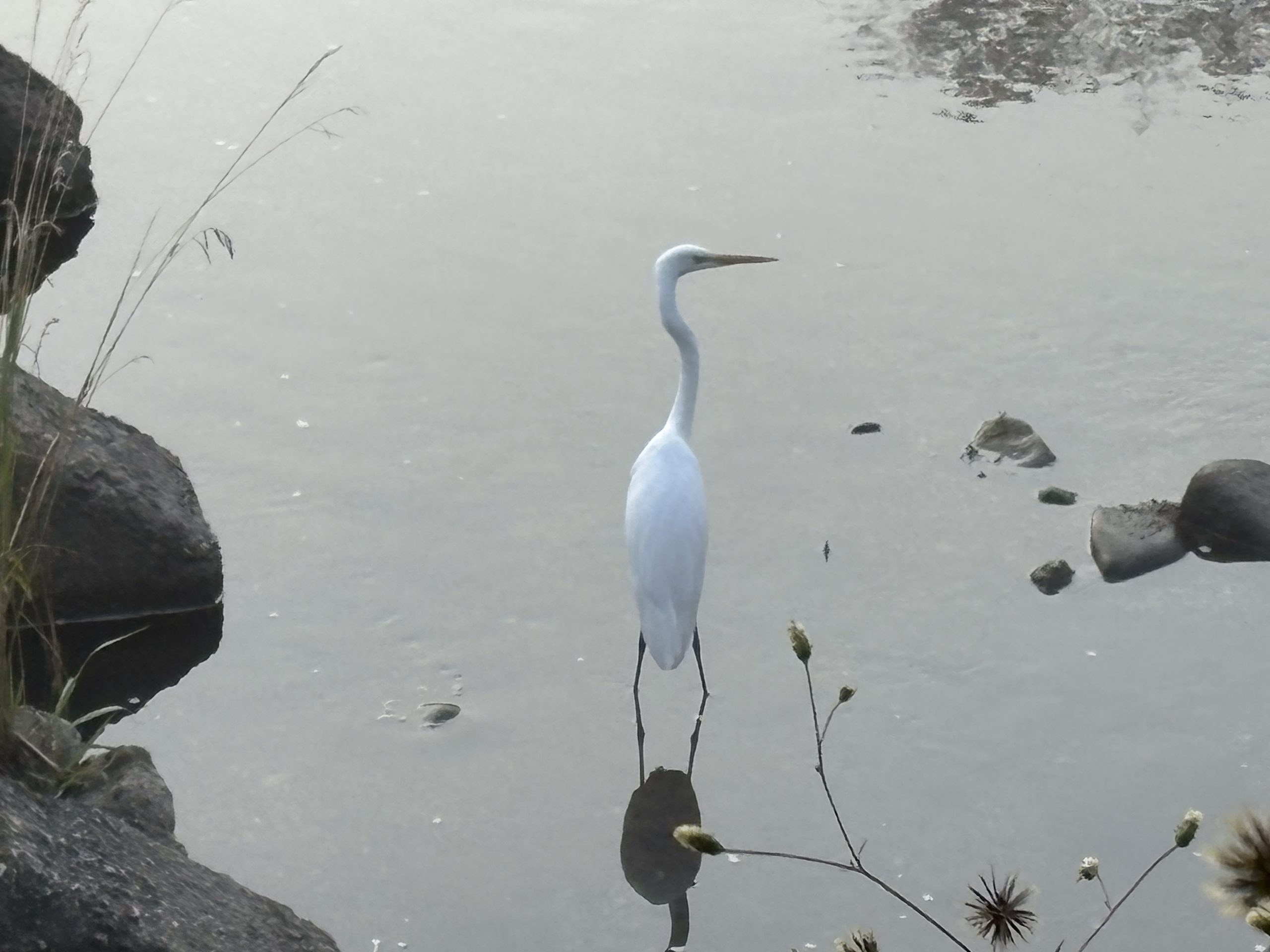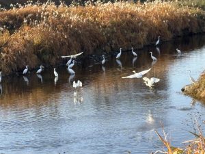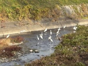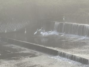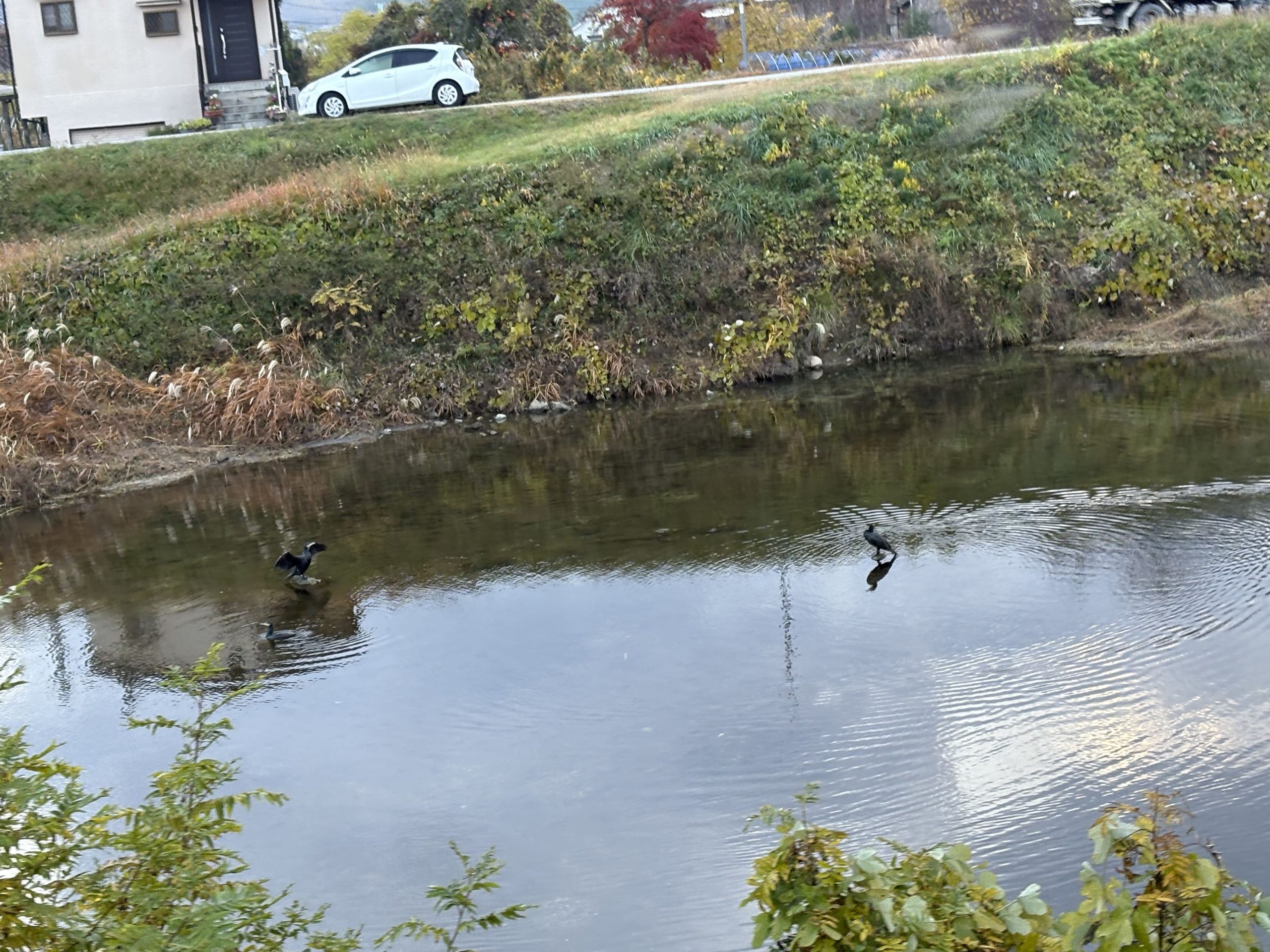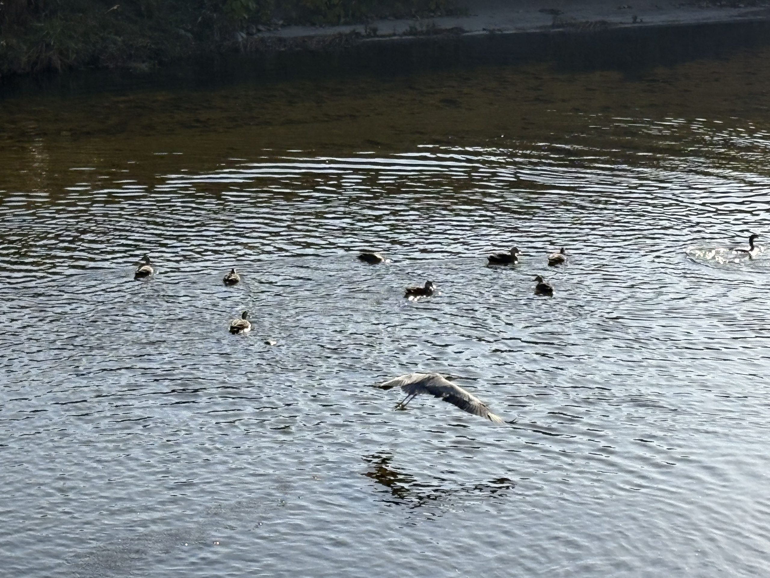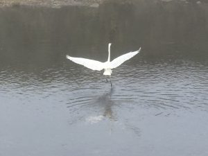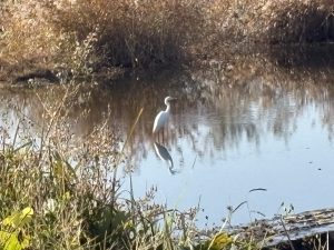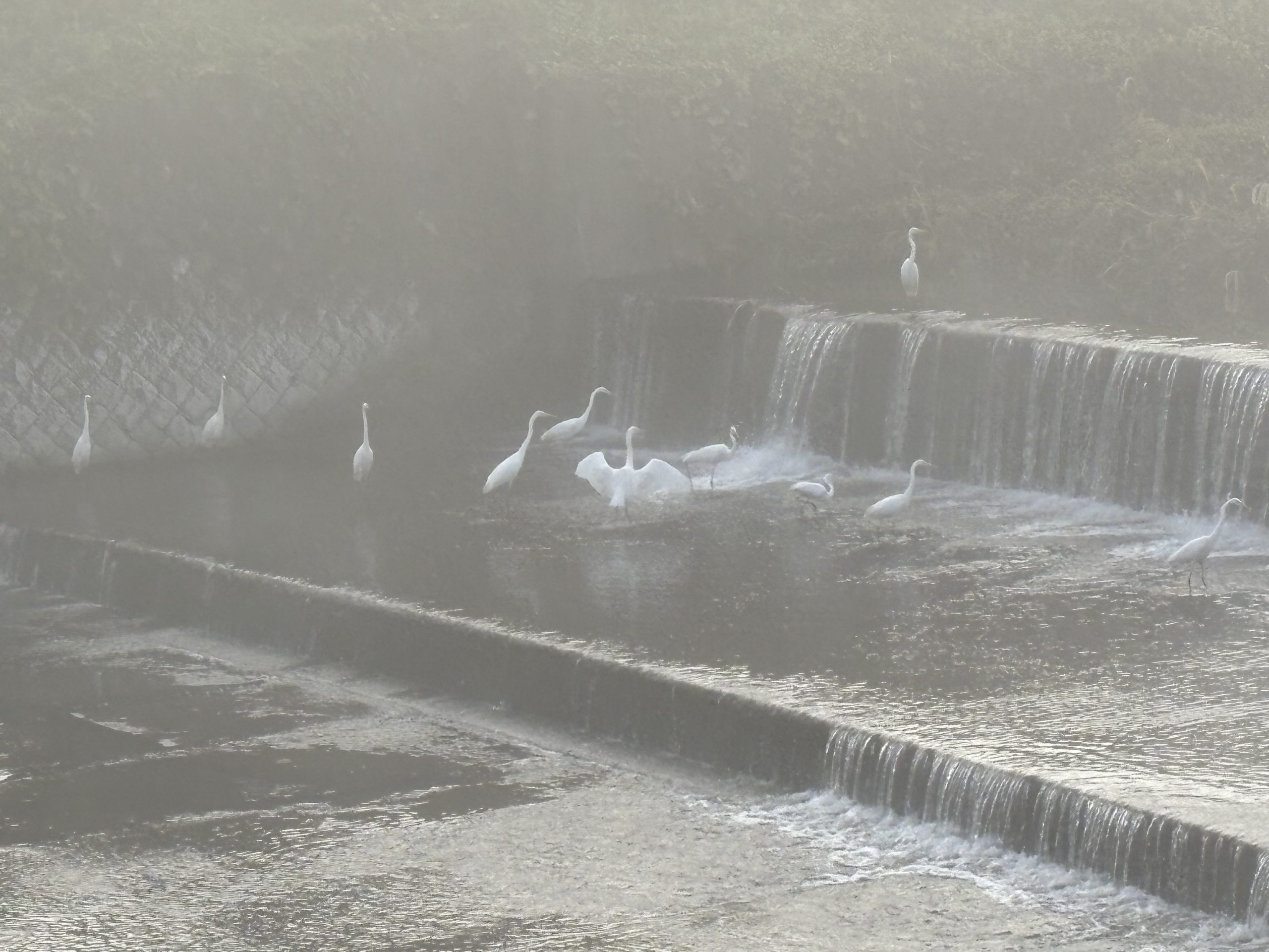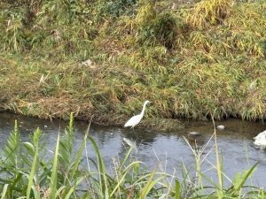 シラサギさんは 紅葉した杜の空を高く飛びました🍂