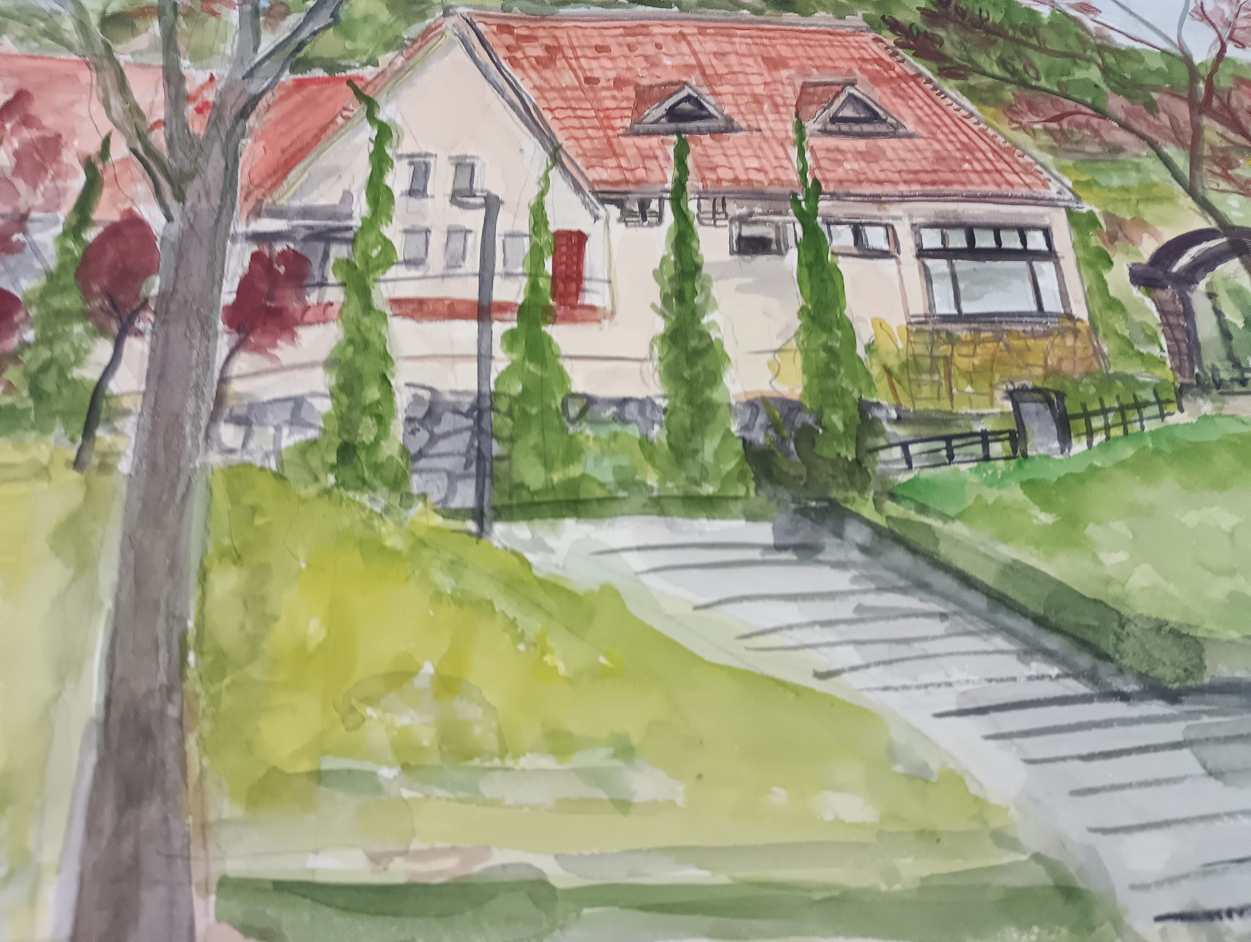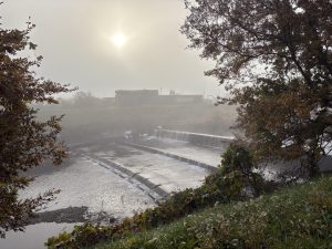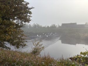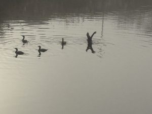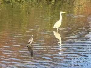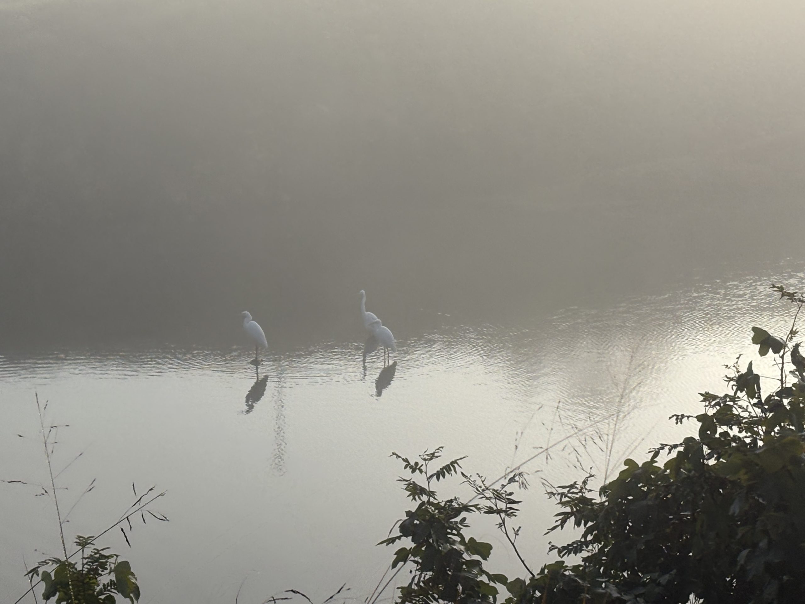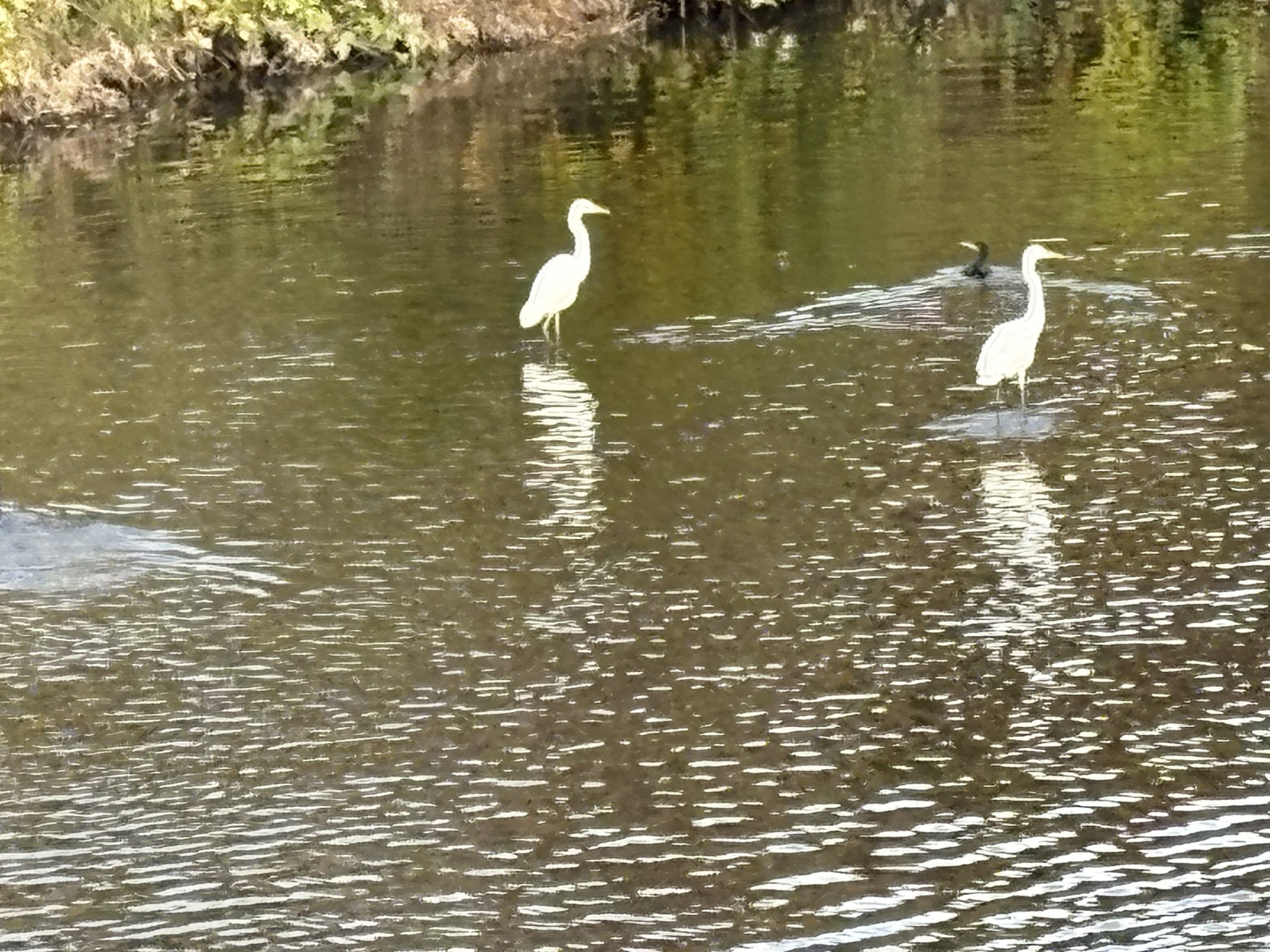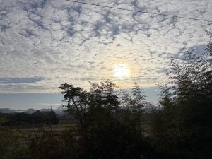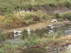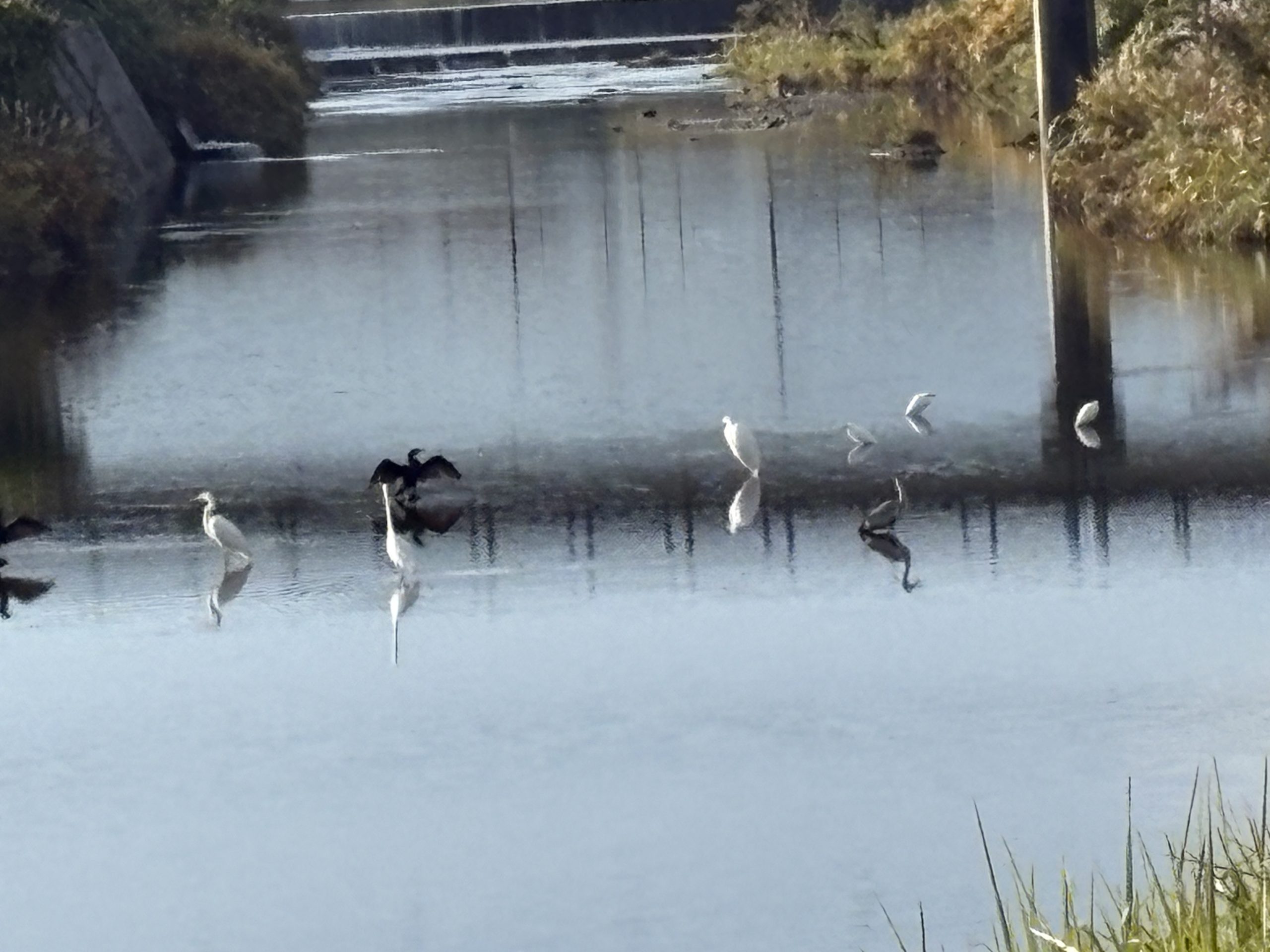 シラサギさんは 紅葉した杜の空を高く飛びました🍂