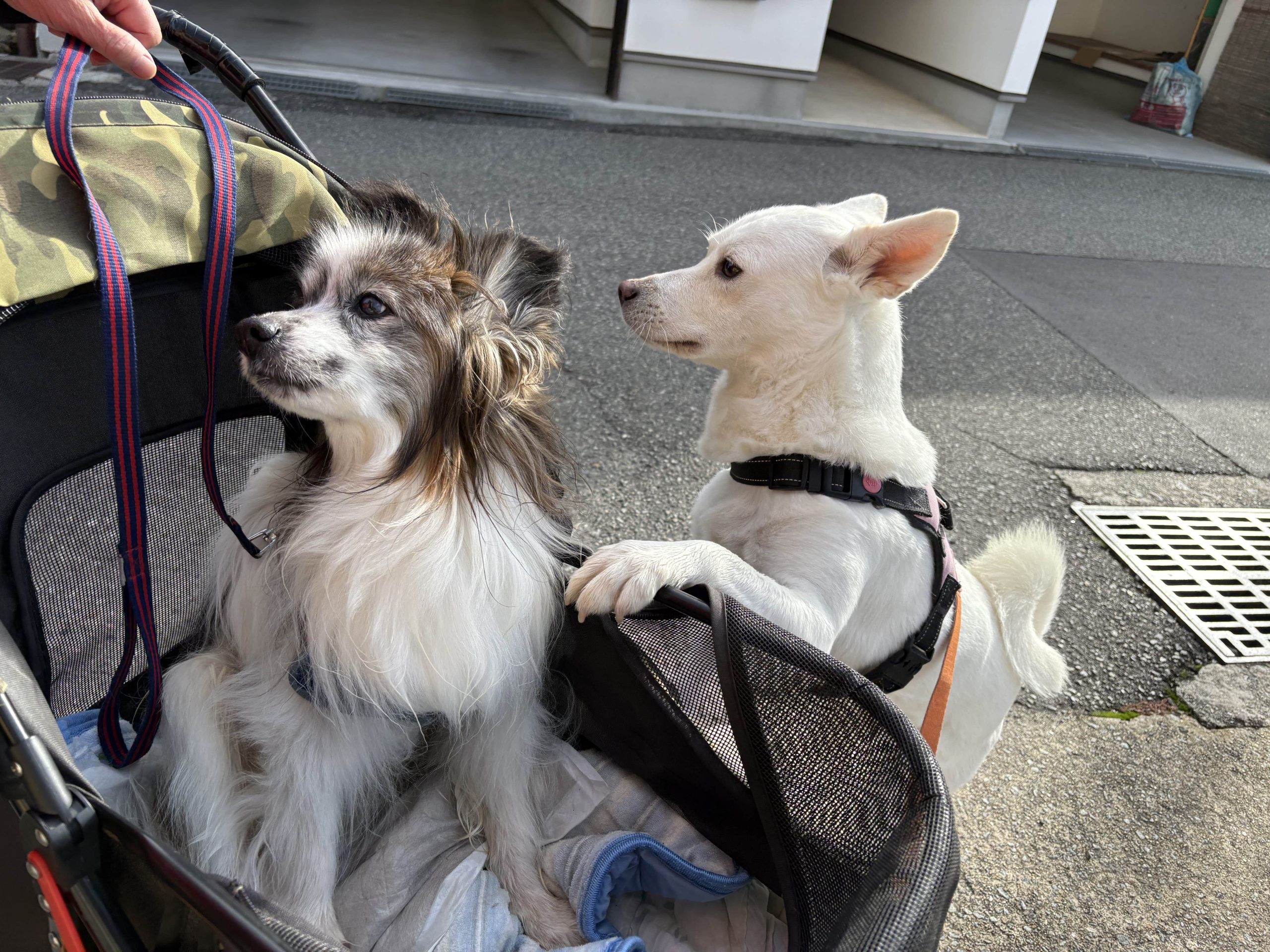 おかあさんは散歩の後、友だちとのランチにお出かけです~🚋