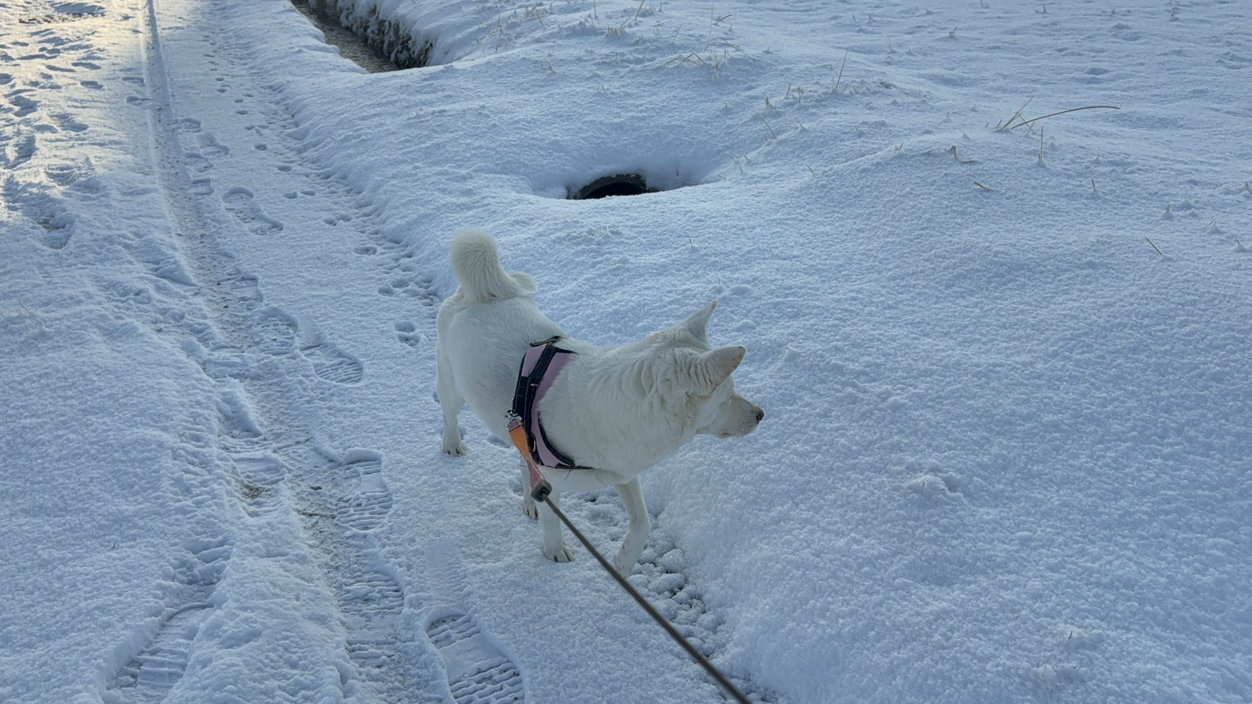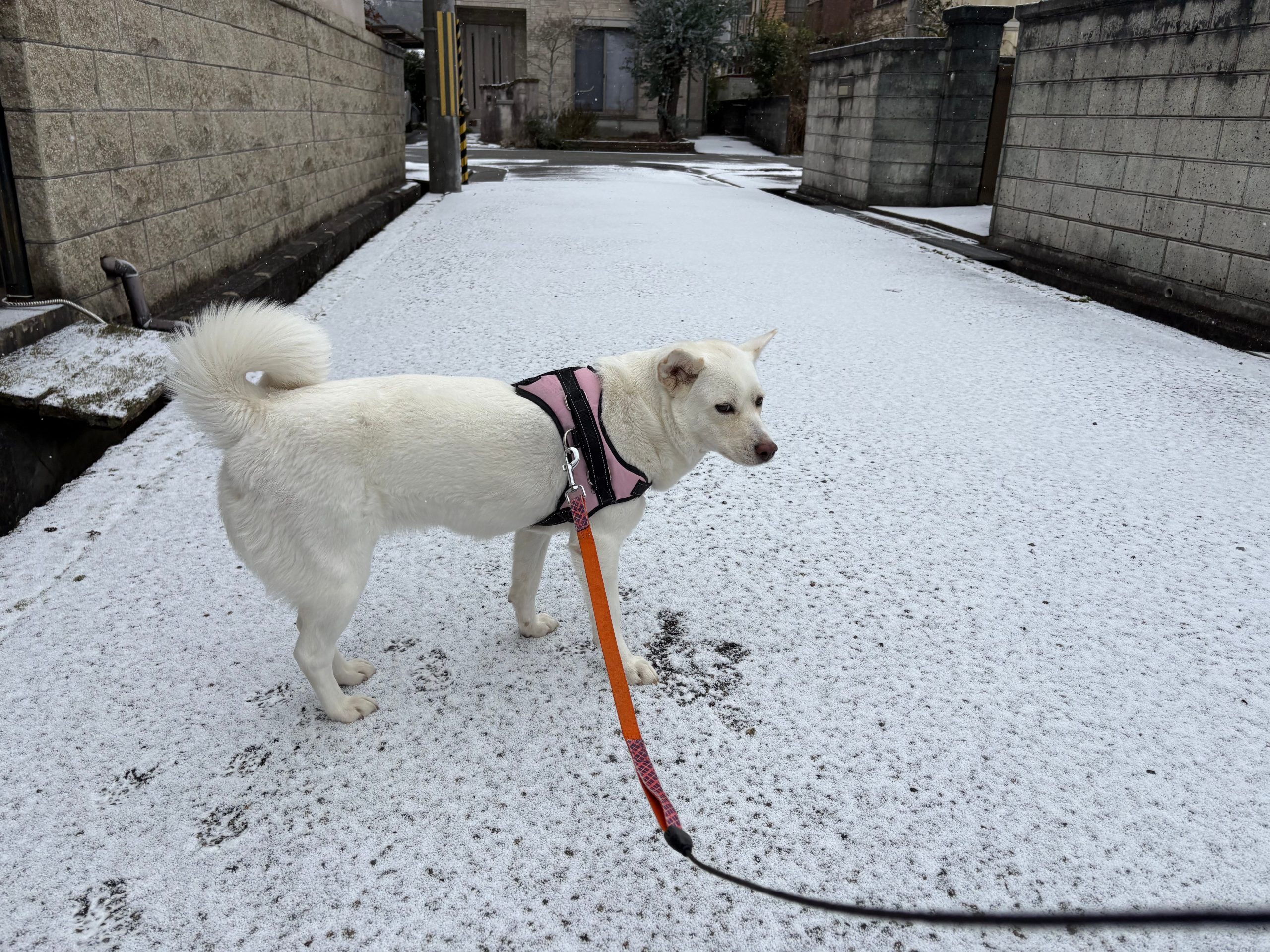 一面 真白な雪で お散歩行けないかなと思った朝~😶🌫️