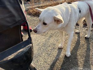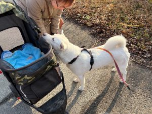帰り道にマルちゃんに会いましたが、バギーで寝たきりです。
