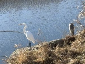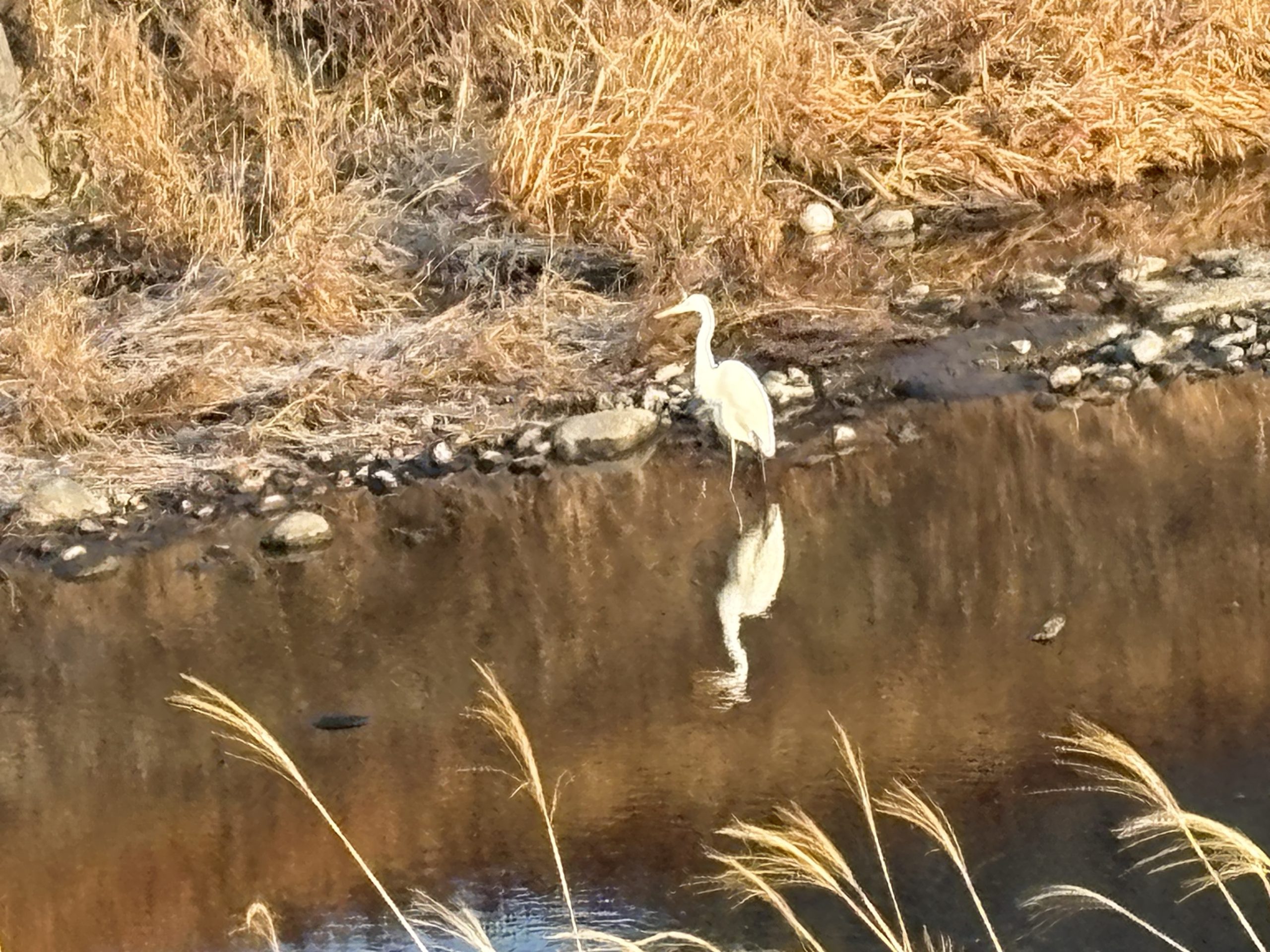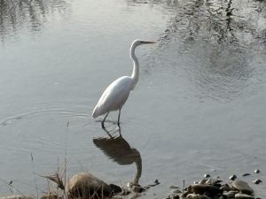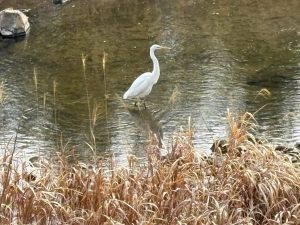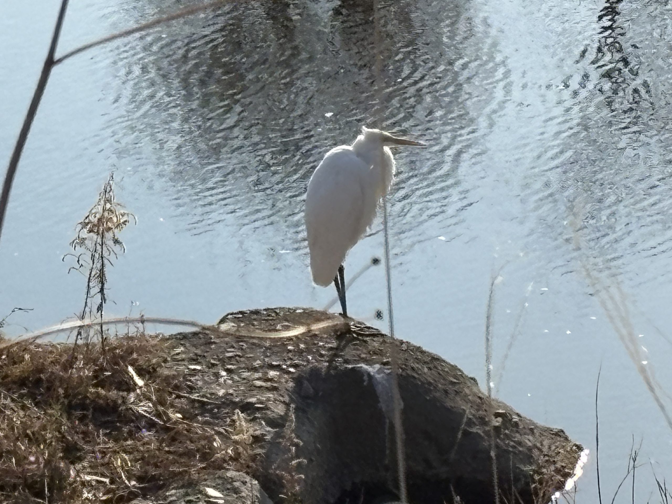 川では シラサギさんが 大きな水の輪を作って 朝食をゲットしました~🐛🍴🐛