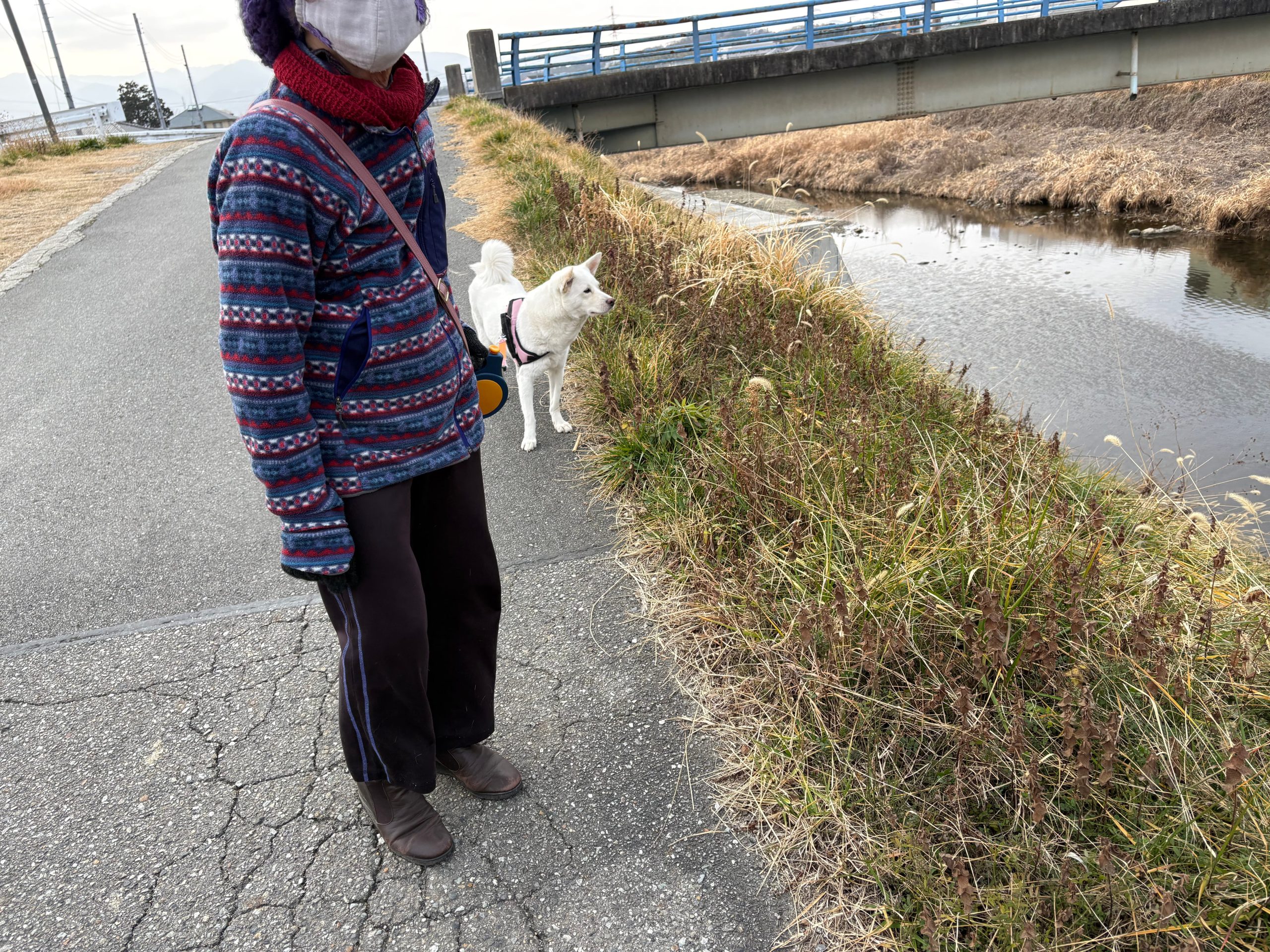 ヒラリちゃんとおかあさんは 向こう岸を見ています~👀