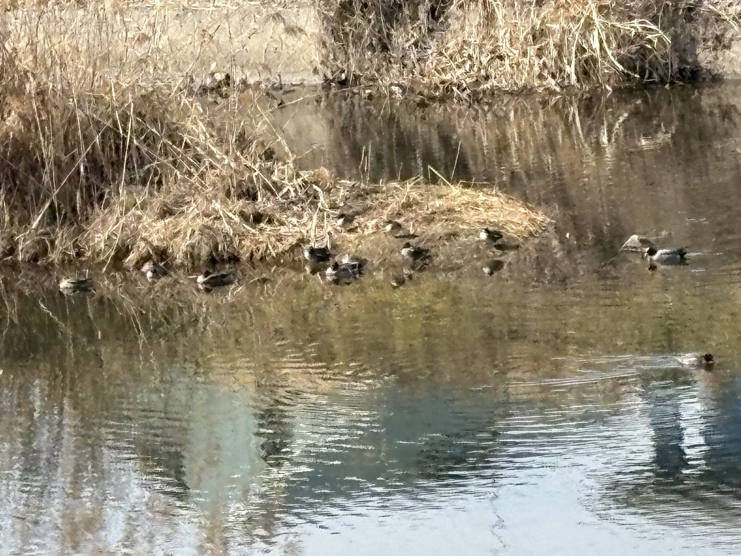 川を一周してやっと、賑やかに遊んでいる鴨さんたちに逢えました~🦆🦆🦆🦆