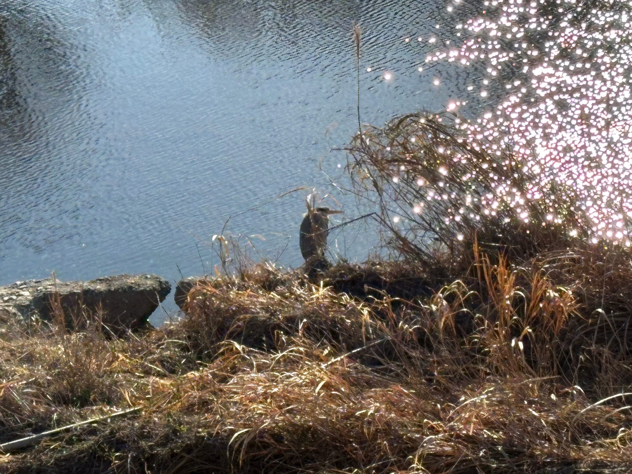アオサギさんの横には キラキラした光の花びらが写っていました🌼