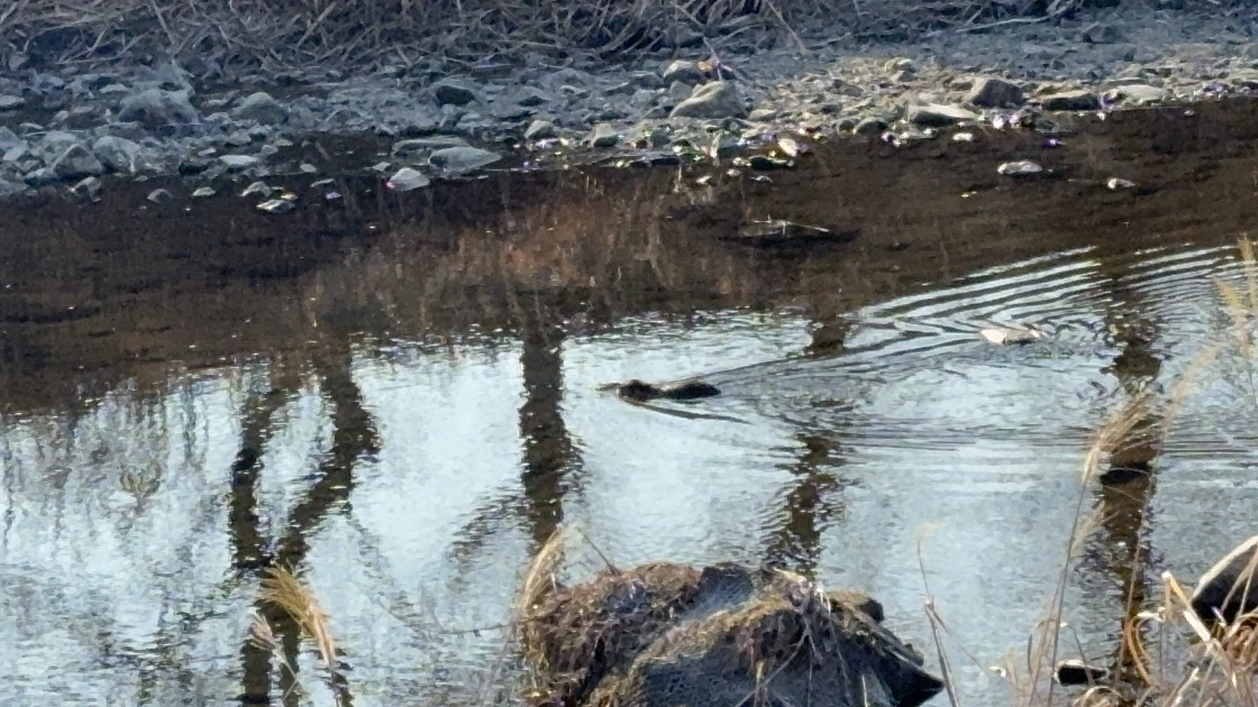 何か月も見なかったヌートリアさんが泳いでいました🐀