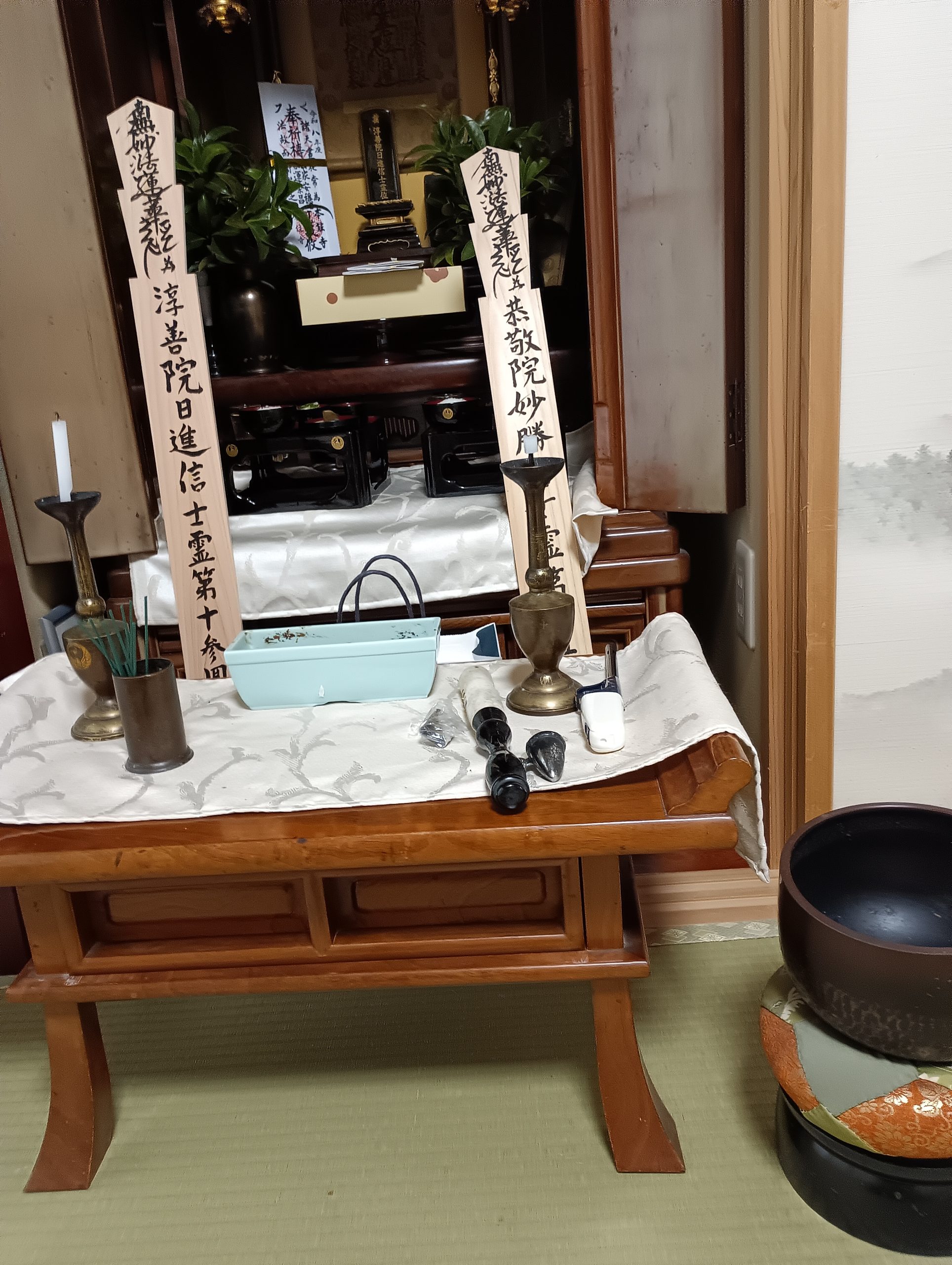 山茶花と菊の花に飾られて穏やかに逝ったのです💐