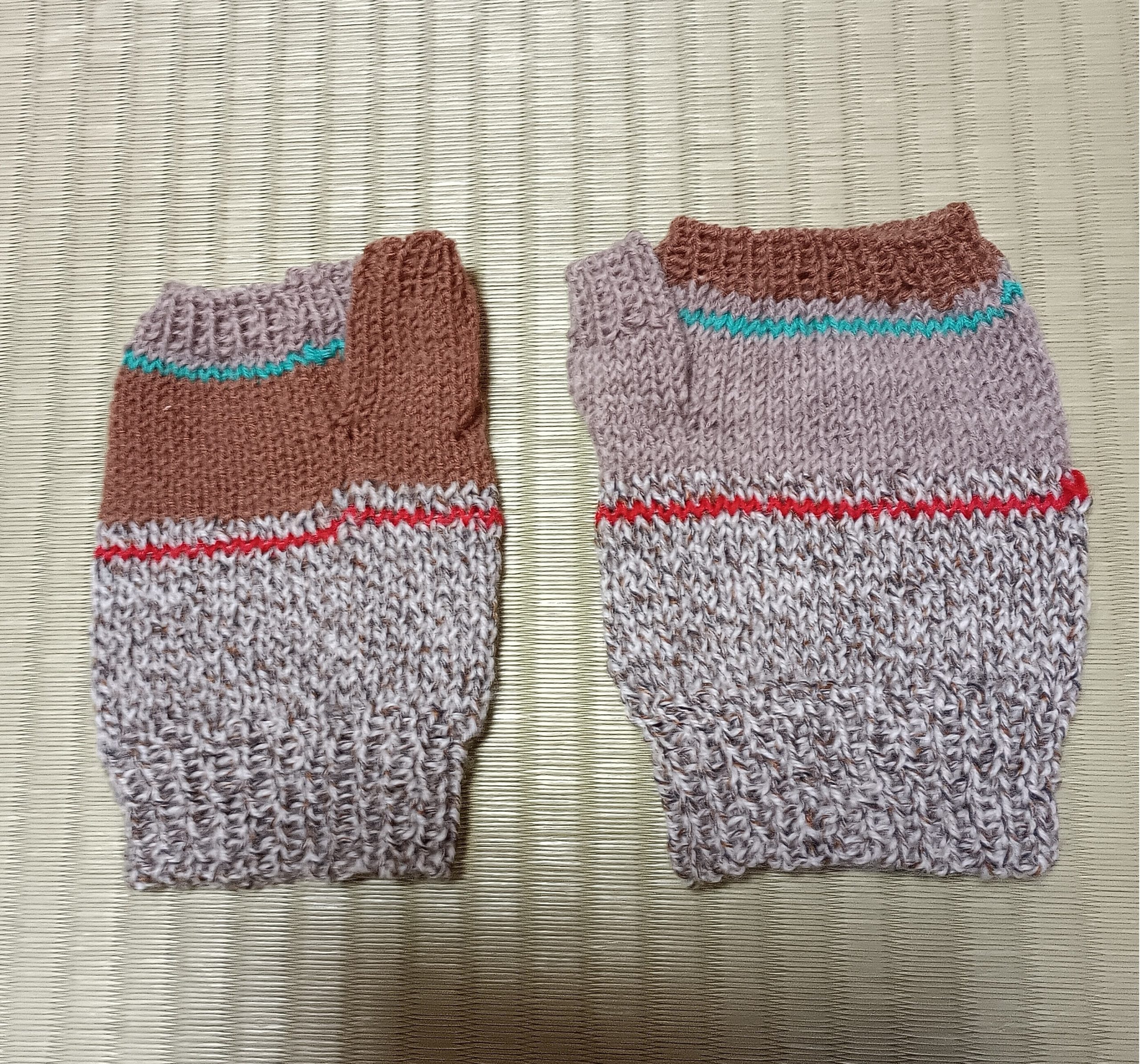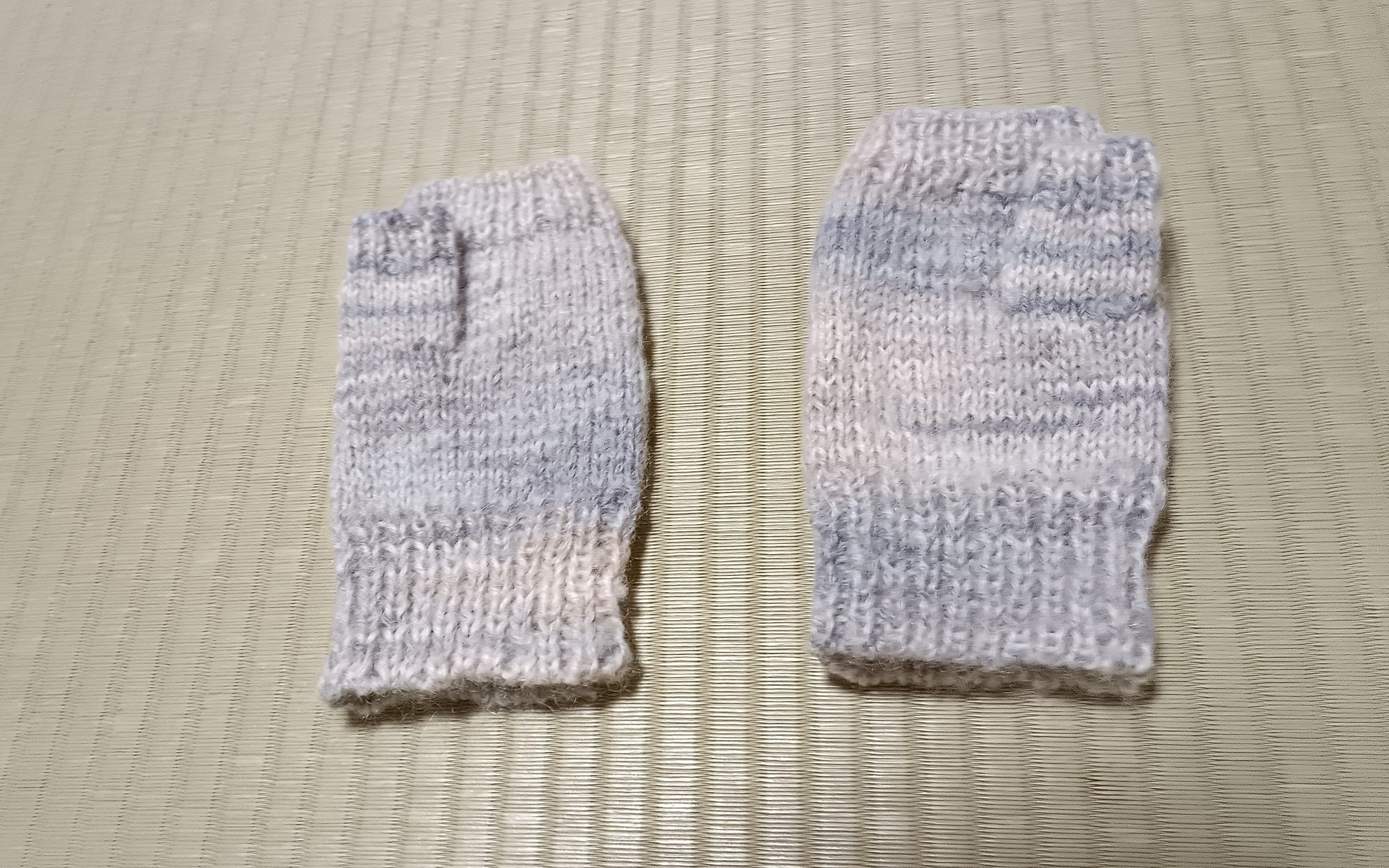 おかあさんは昨日、残り糸ばかりで自分のための手袋を作りました~🧶🧶