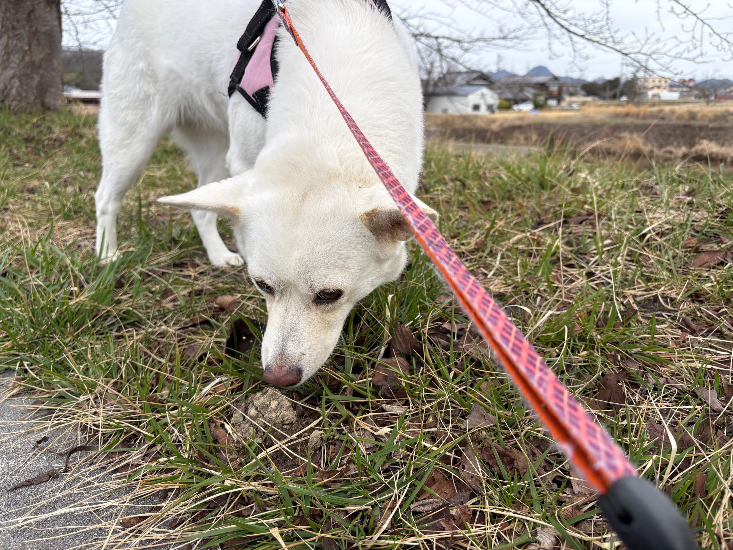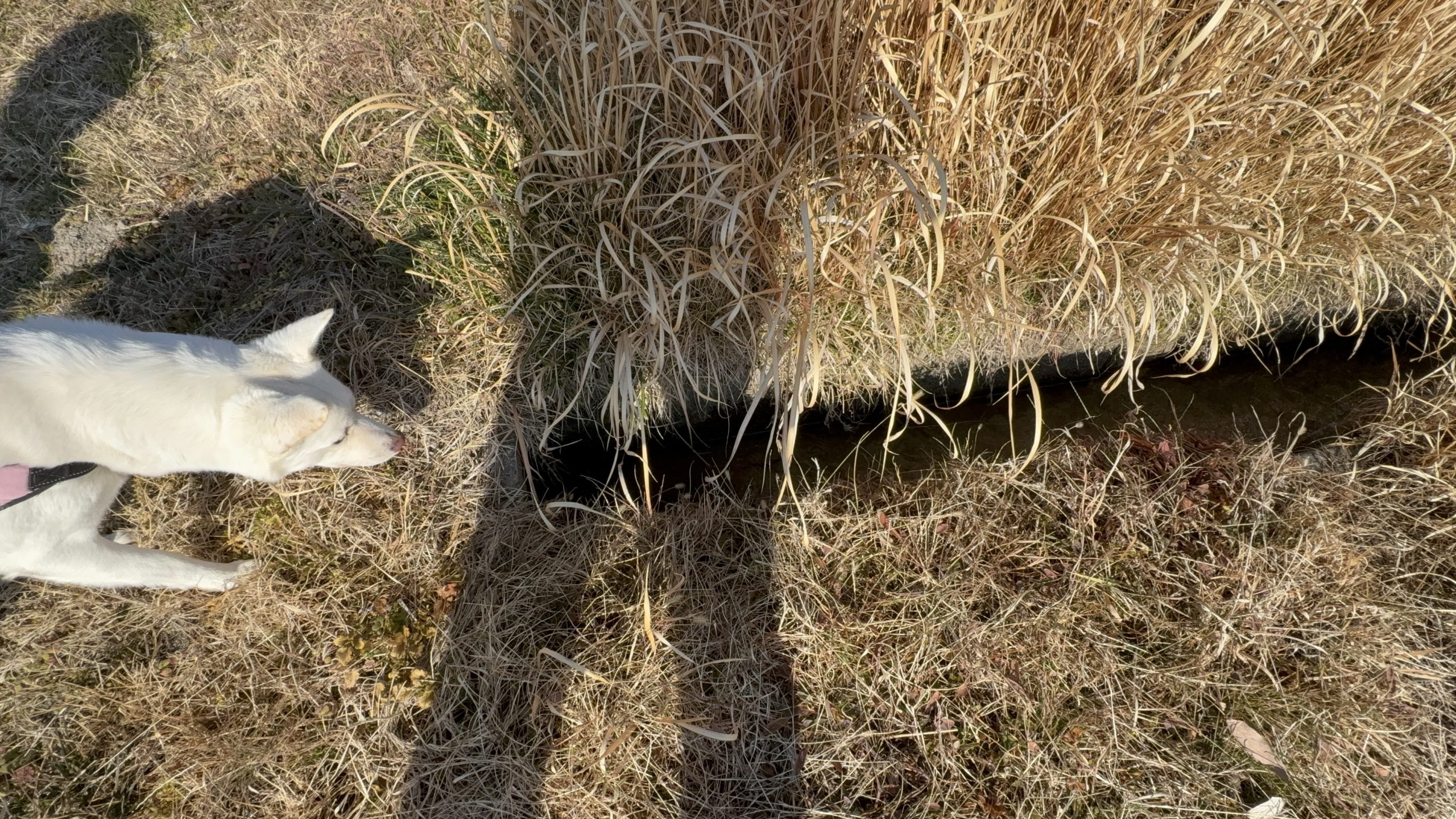河川敷でなにかもぐもぐしています(´~`)モグモグ
