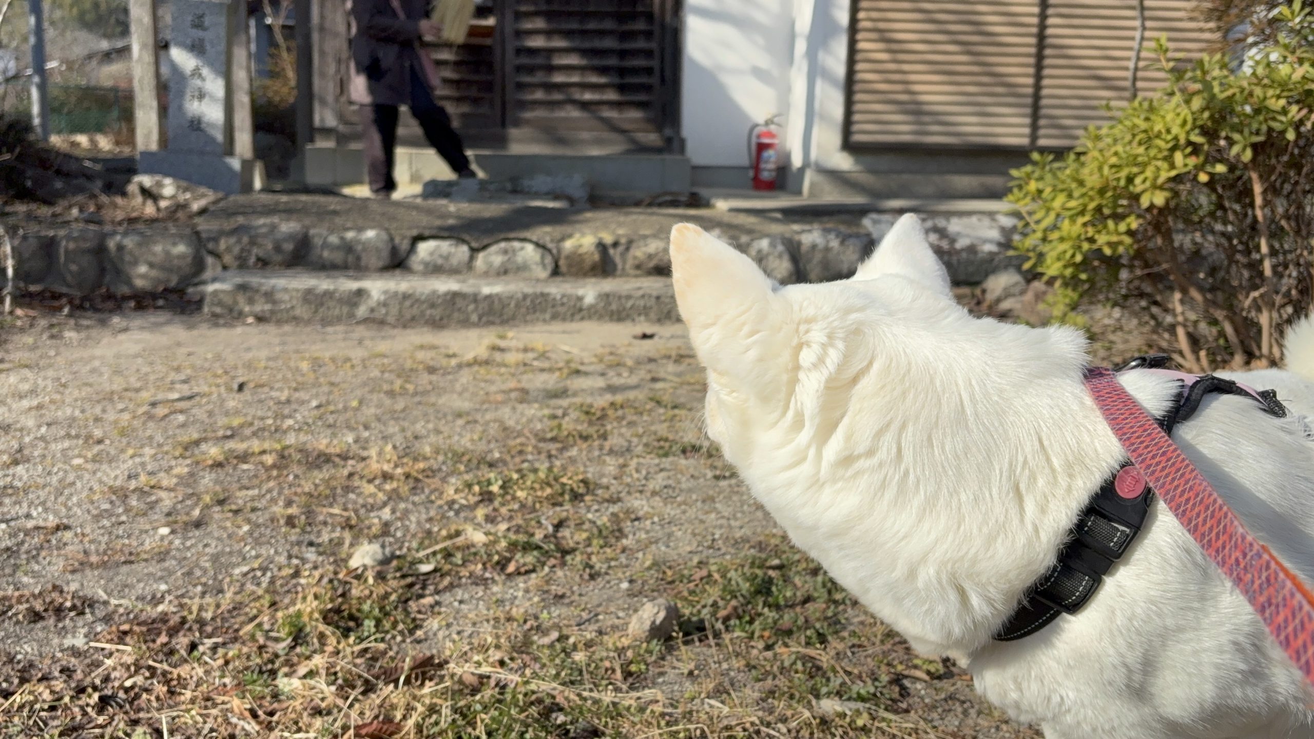 ヒラリちゃんとおかあさんは 境内の前で別れました~(@^^)/~~~👋