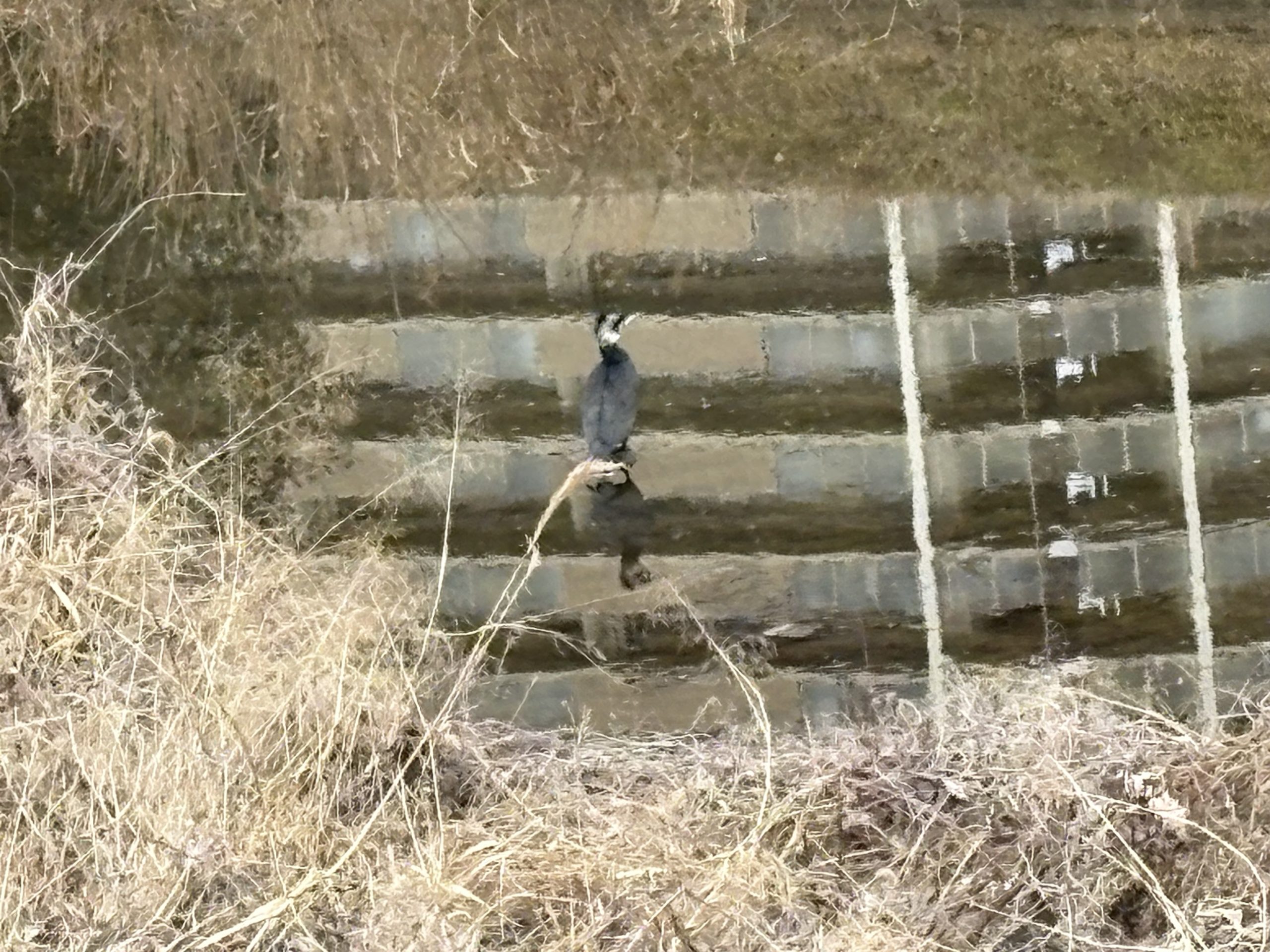 カワウさんは三段壁の上段に シラサギさんは川べりの近いところに
