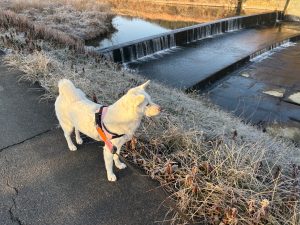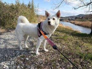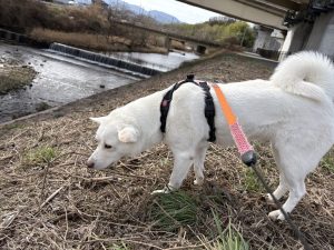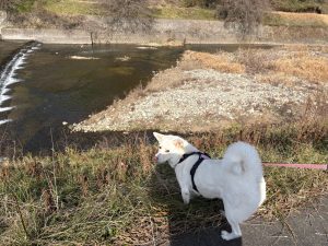 川の道で ハチ君に会いました~🐕(^^)/