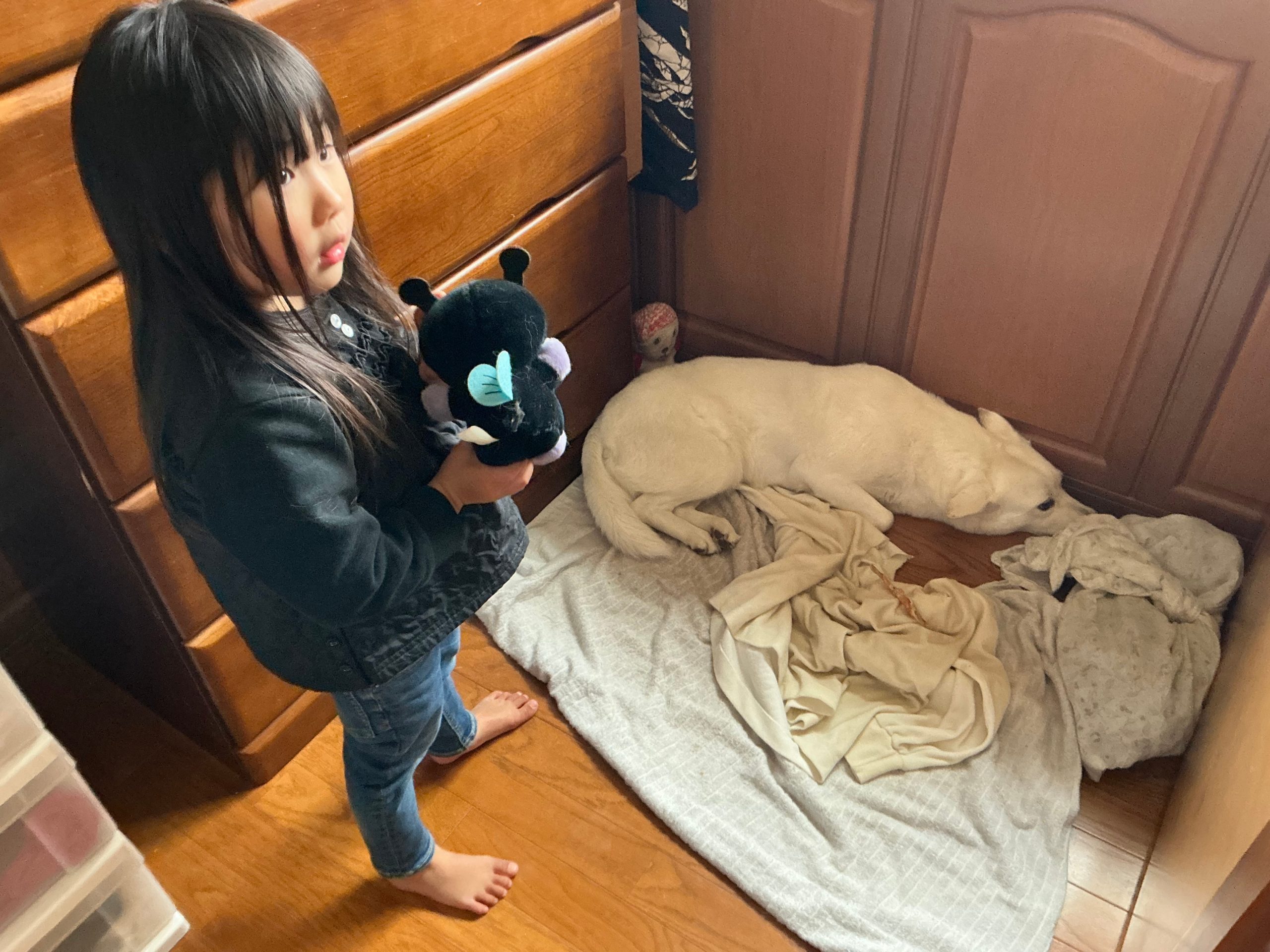 クンクン嗅いでいます~あ、おかあさんの匂いだぁ”(-“”-)”