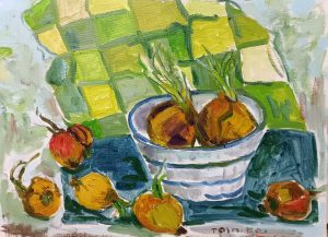 淡路の兄が作って送ってくれた玉葱。年を越して芽が出てしまったのですが…