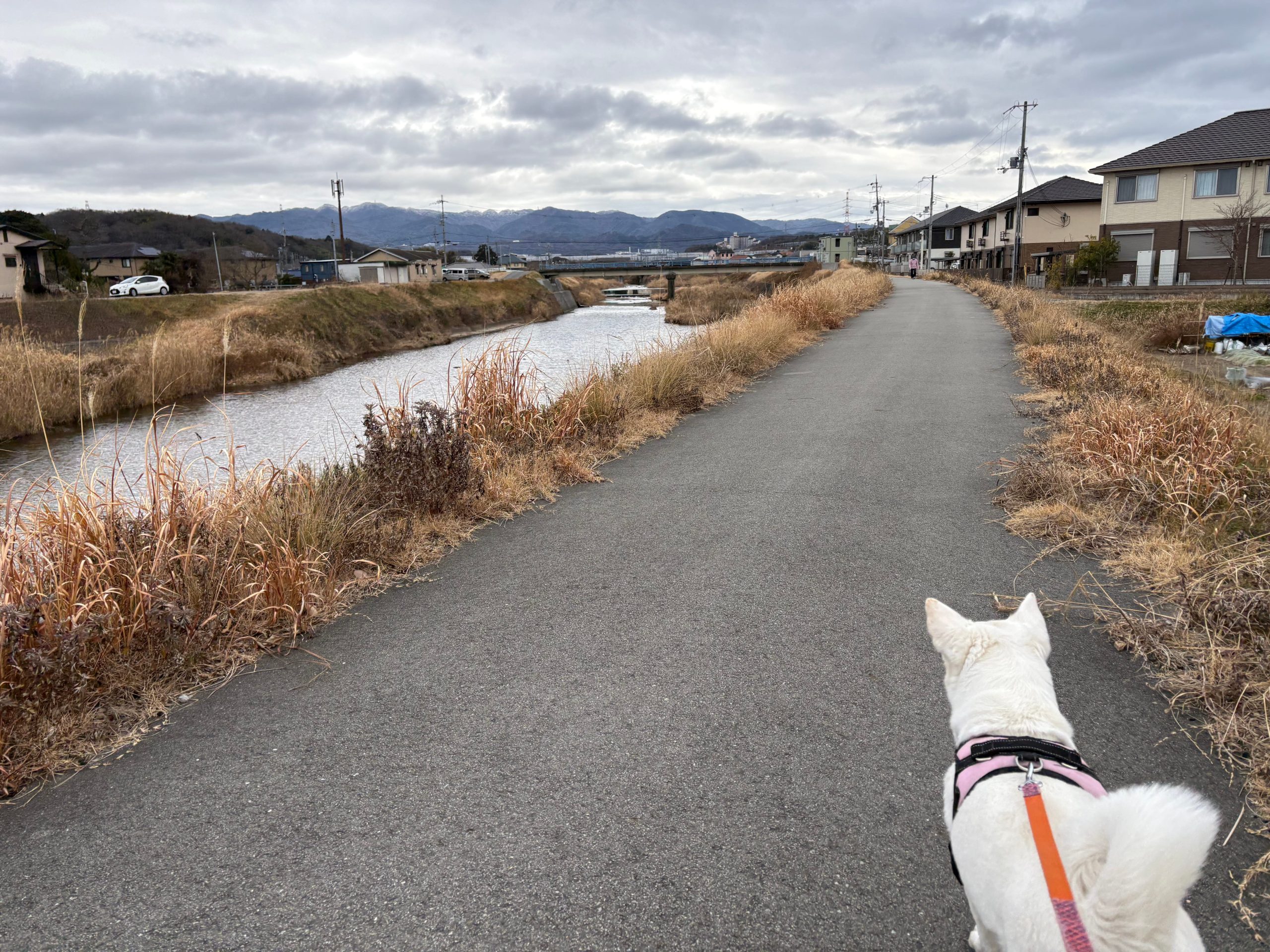 川の道で バギーを押したマルちゃんママさんに会いました。