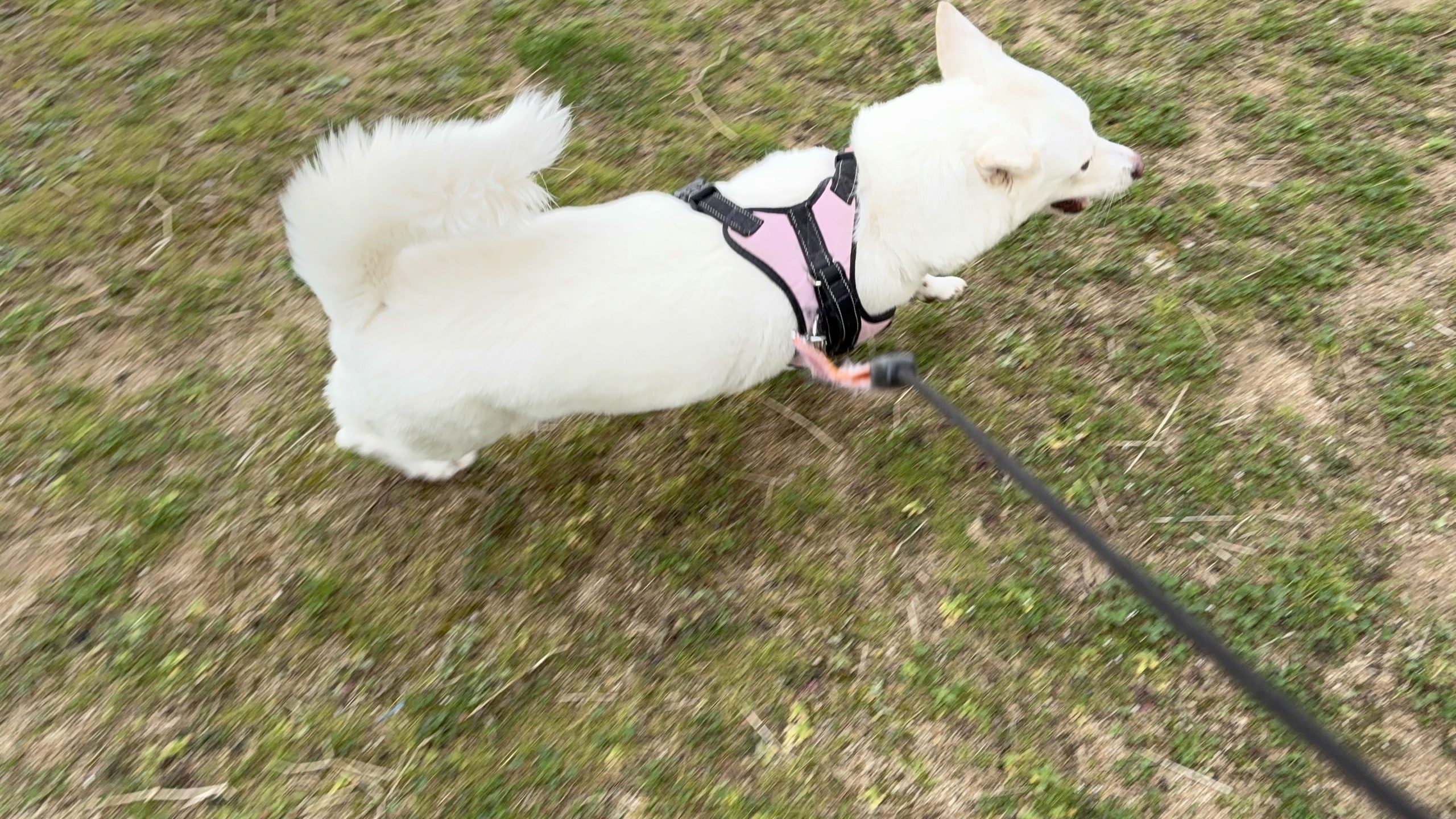 大きな尻尾とお尻は 中型犬でも大きいほう?( *´艸`)