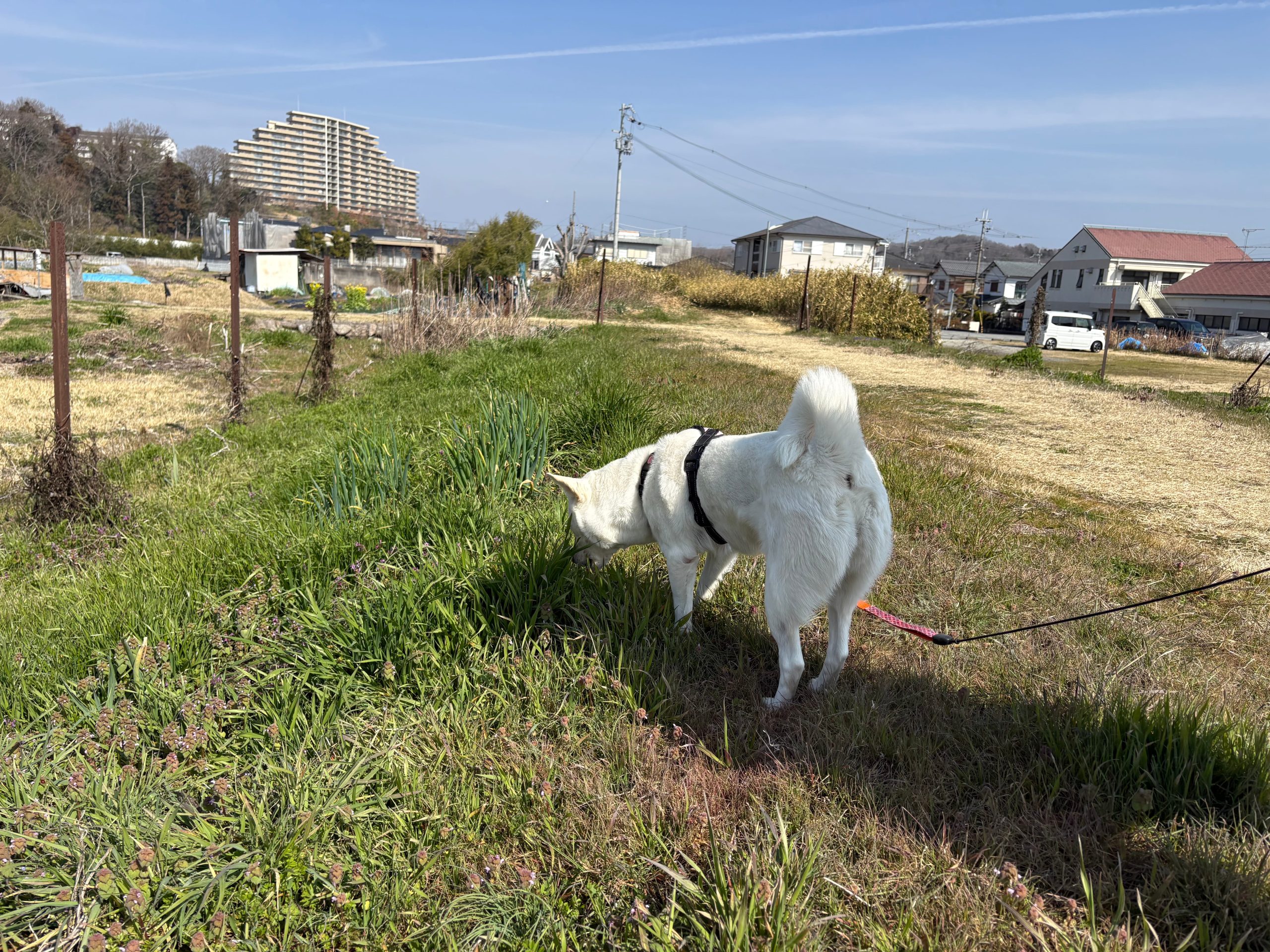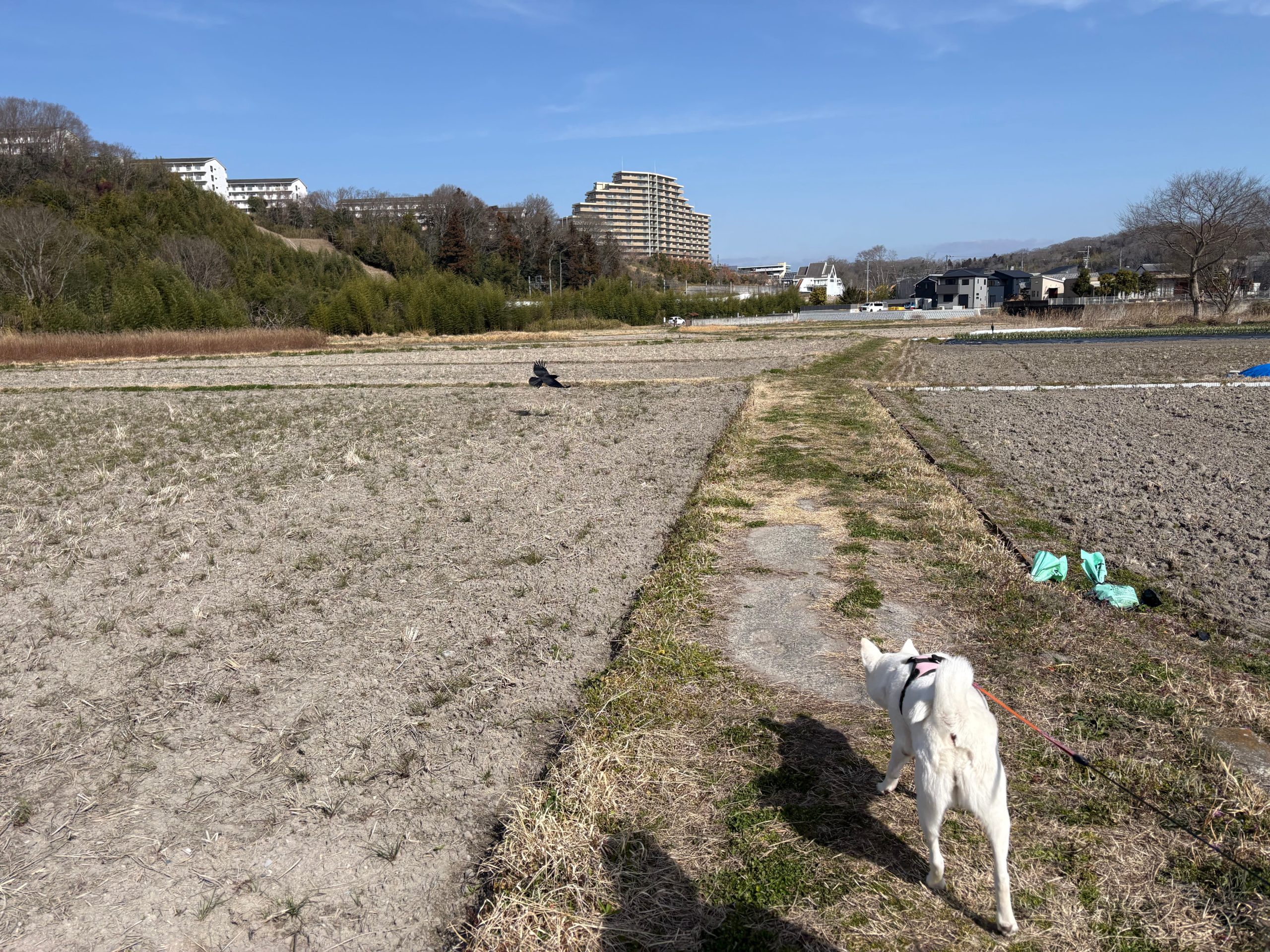 今日はいつもの川の道一周ではなく、夕方散歩コースのもっと上流の方へ行きます。