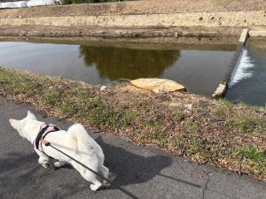 川を半周して ヒラリちゃんとおかあさんは いつものところで別れます~👋