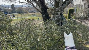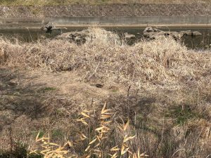 この辺りは川沿いの樹木伐採工事が進み、大きな切株もみえます。