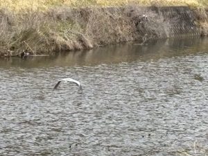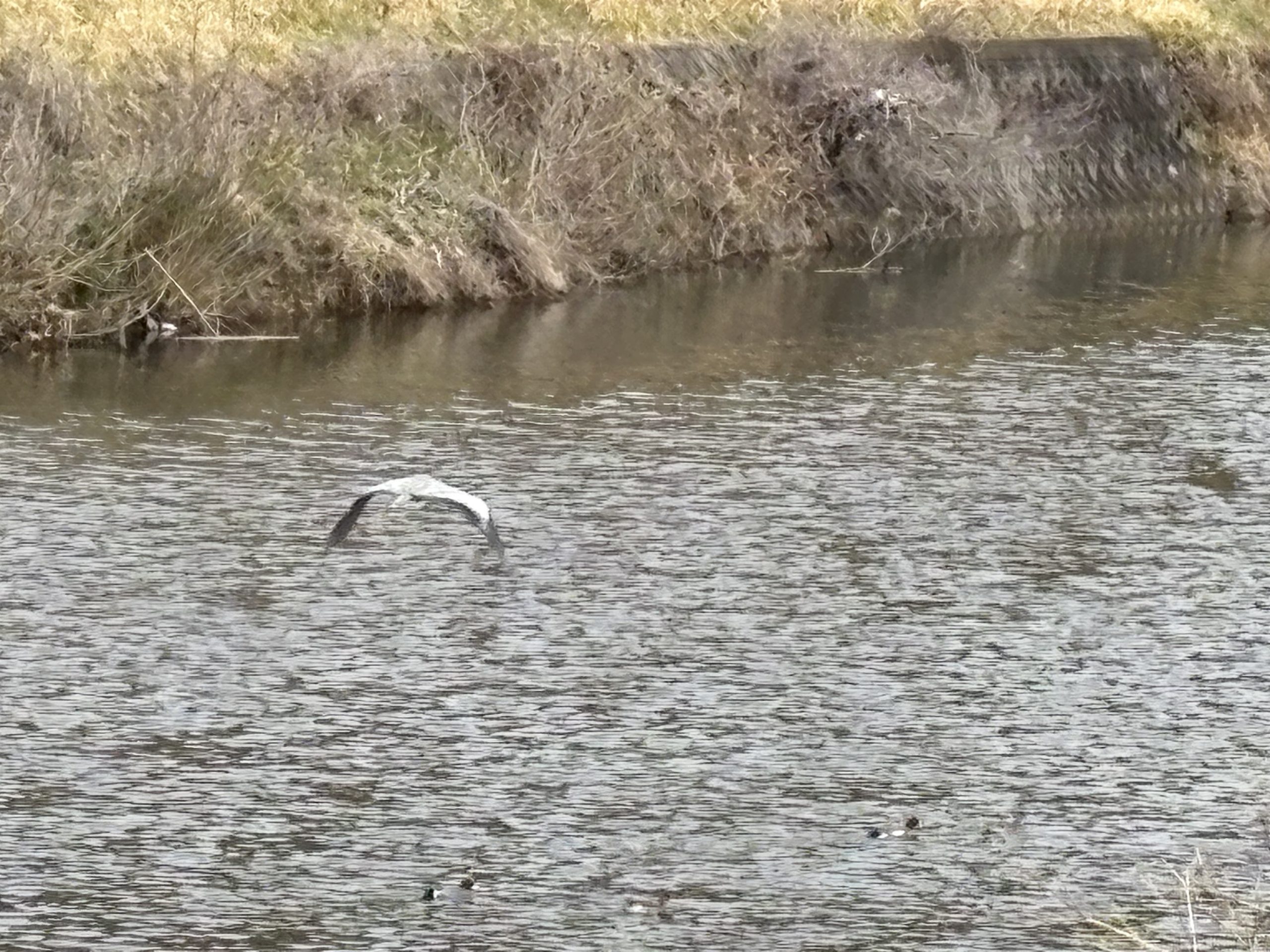 川を半周すると シラサギさんの影も黒いシルエットになりました~🦢