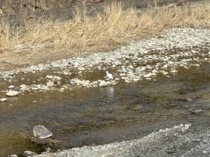 川の水は冷たそうで、大きなシラサギさんも足を石の上です(^_-)-☆