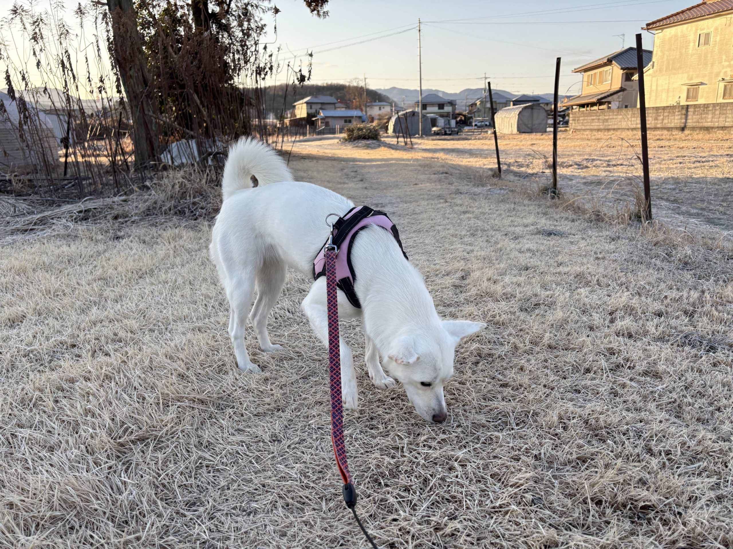 朝のお散歩。今日もちょっぴり朝方の雪が残っていました⛄