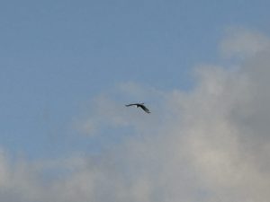 水色と白い雲の二層の空に シラサギさんは高く飛んでいます!(^^)!