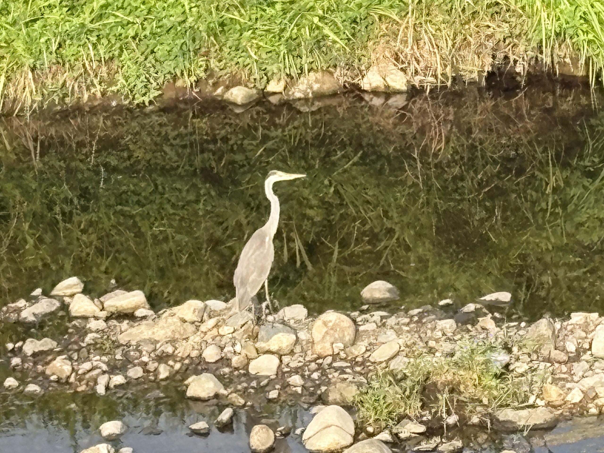 向こう岸のアオサギさんは 悠然と水辺に佇んでいました~!(^^)!
