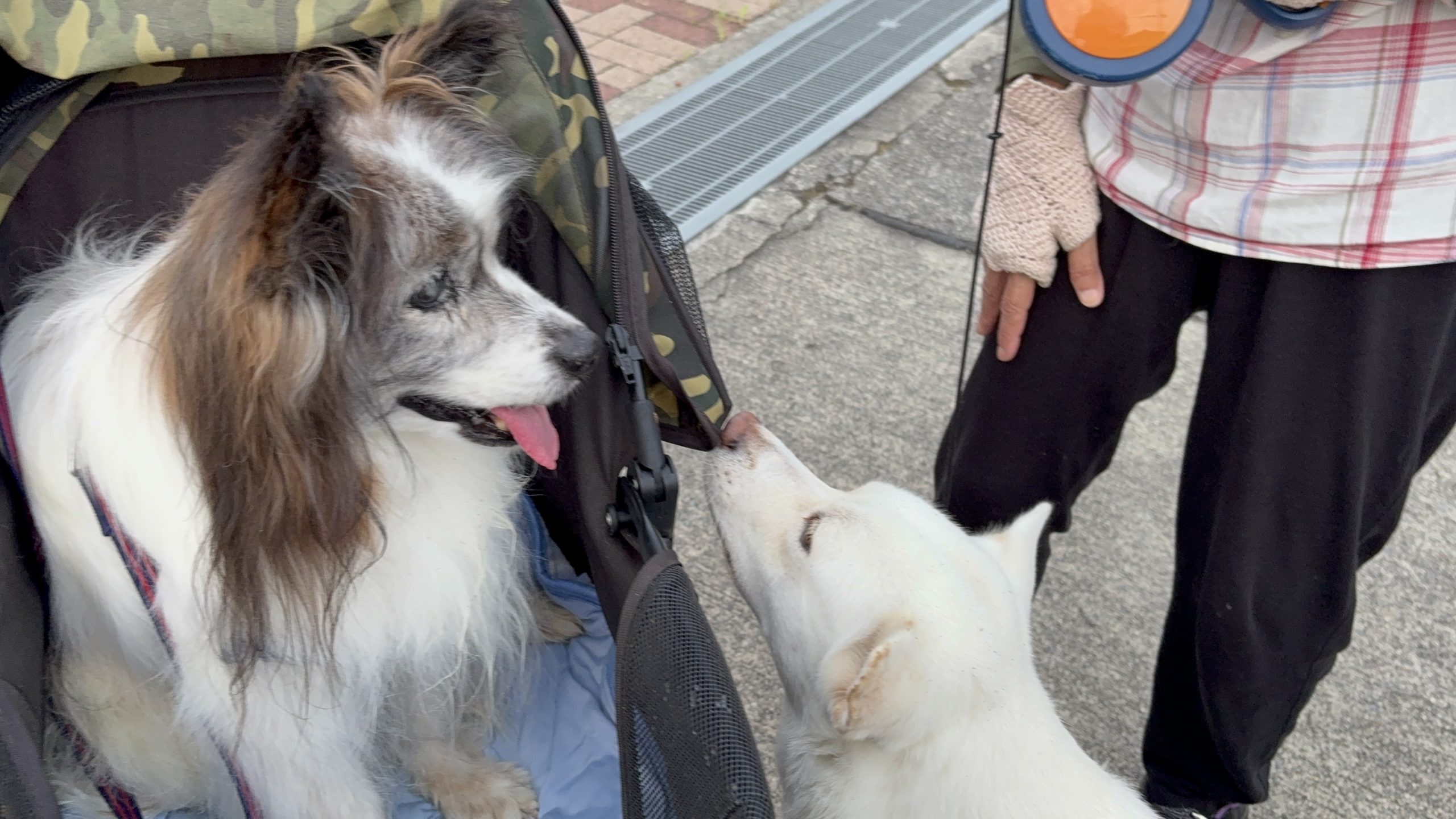 「マルちゃん、おかあさんが心配していたのよ~💦」ヒラリちゃんが耳元で話してくれます👂