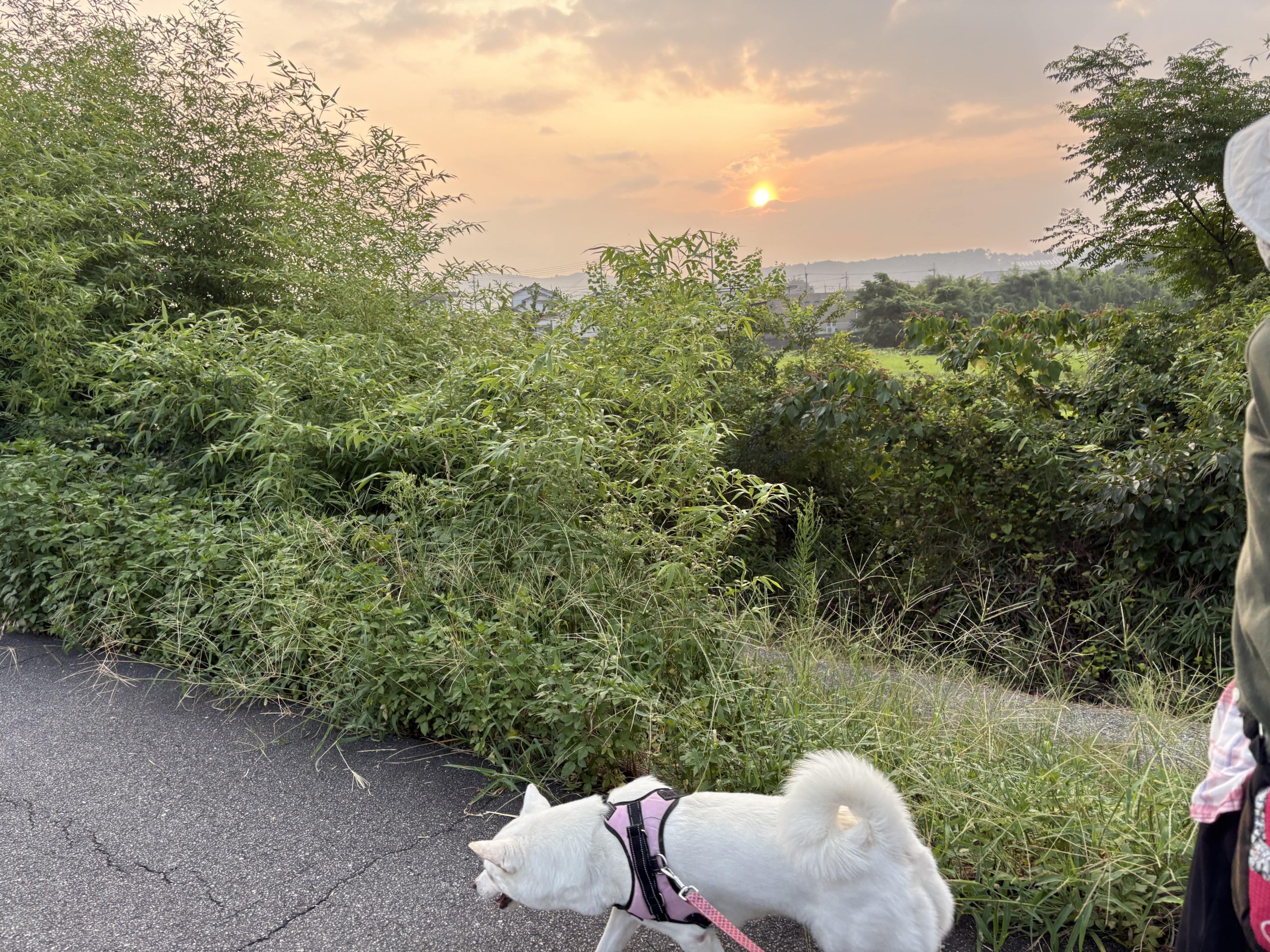川の道に出た時には 空が橙色に変わり お日さまは黄金色です🌞