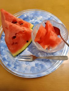 今日のデザートは西瓜。お盆前はとっても高価だったので 今年2度目です🍉🍉