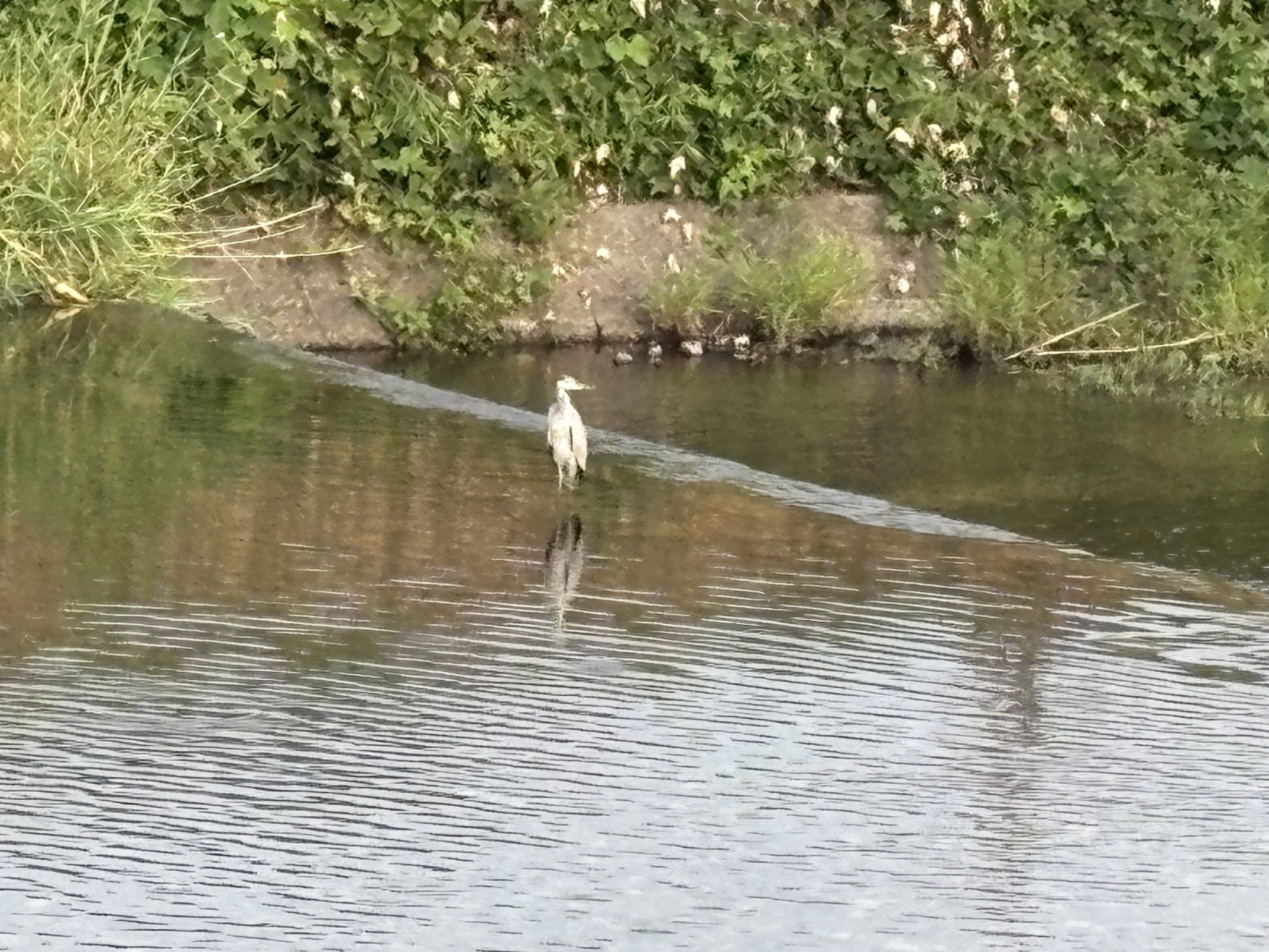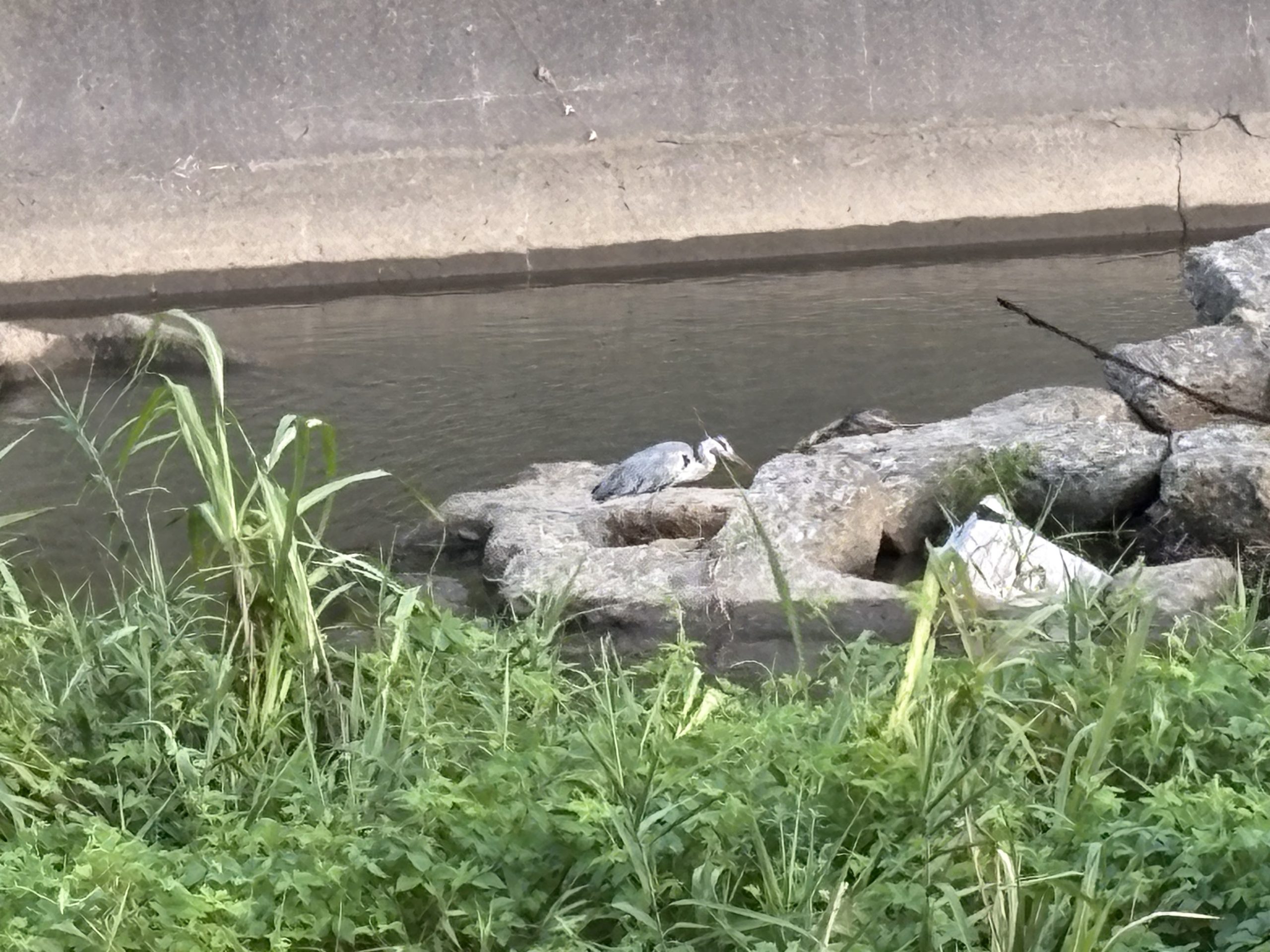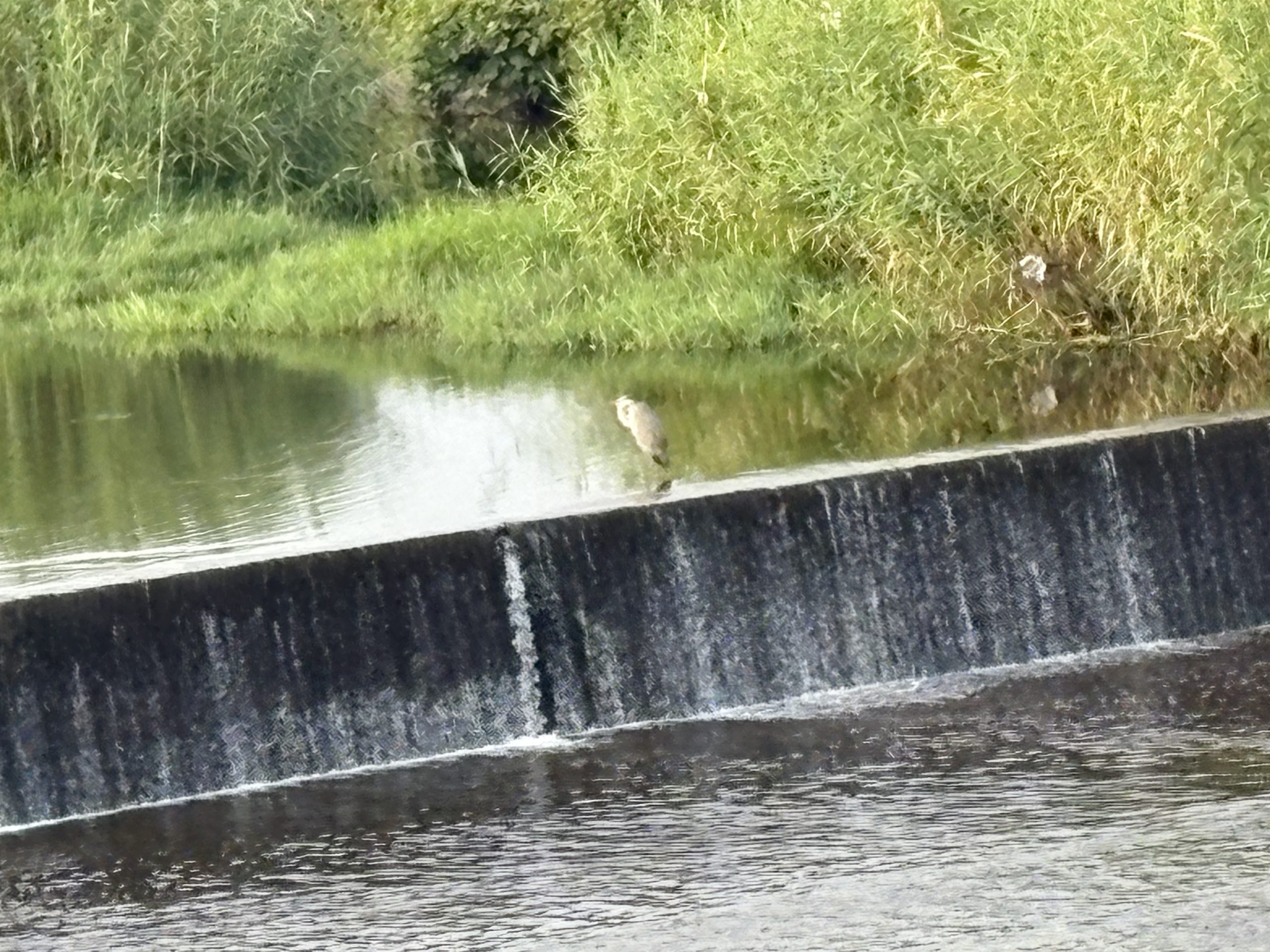 アオサギさんは移動して 水嵩が少し増えた三段壁の一番上に来てくれました~(*’▽’)