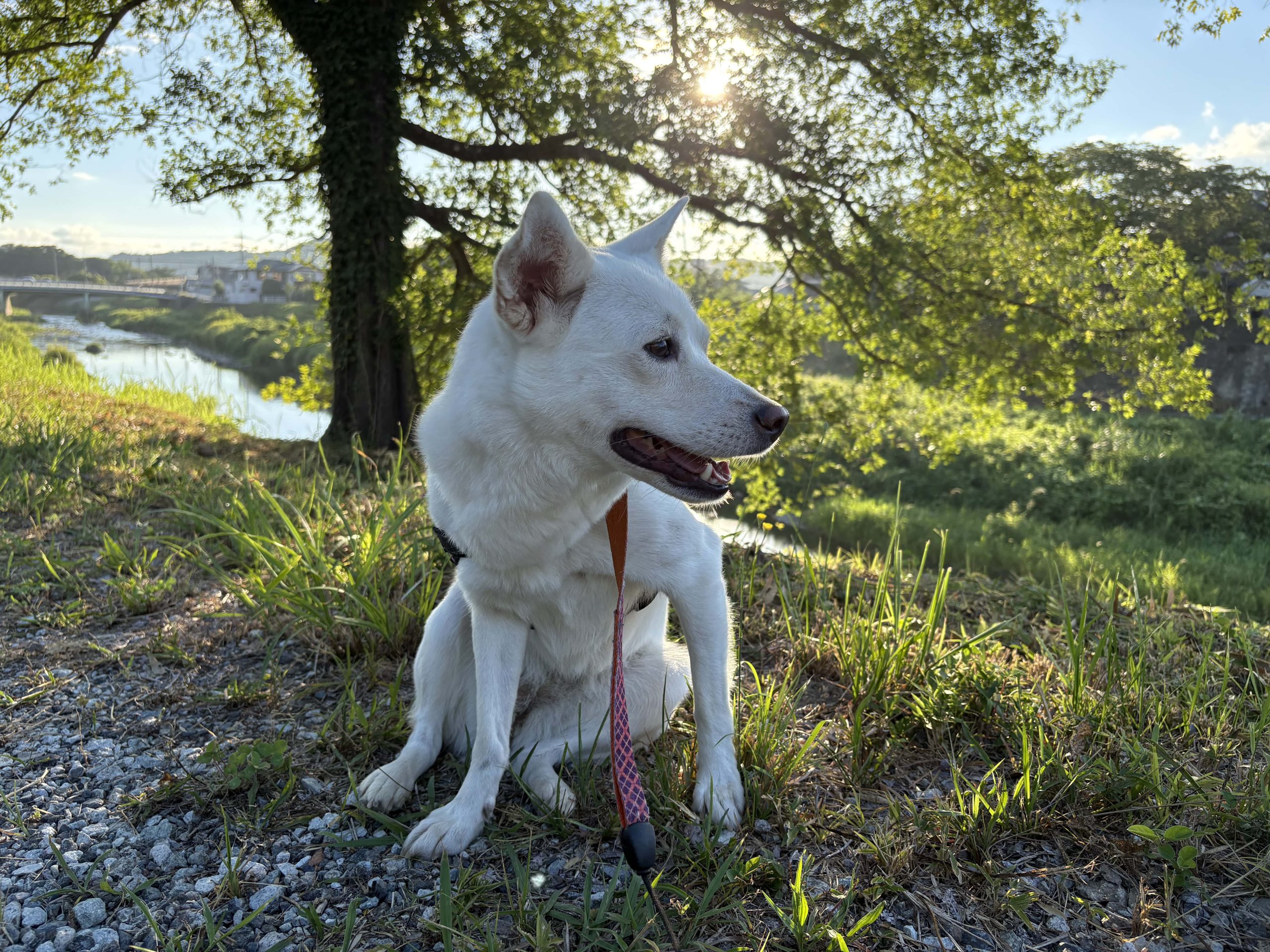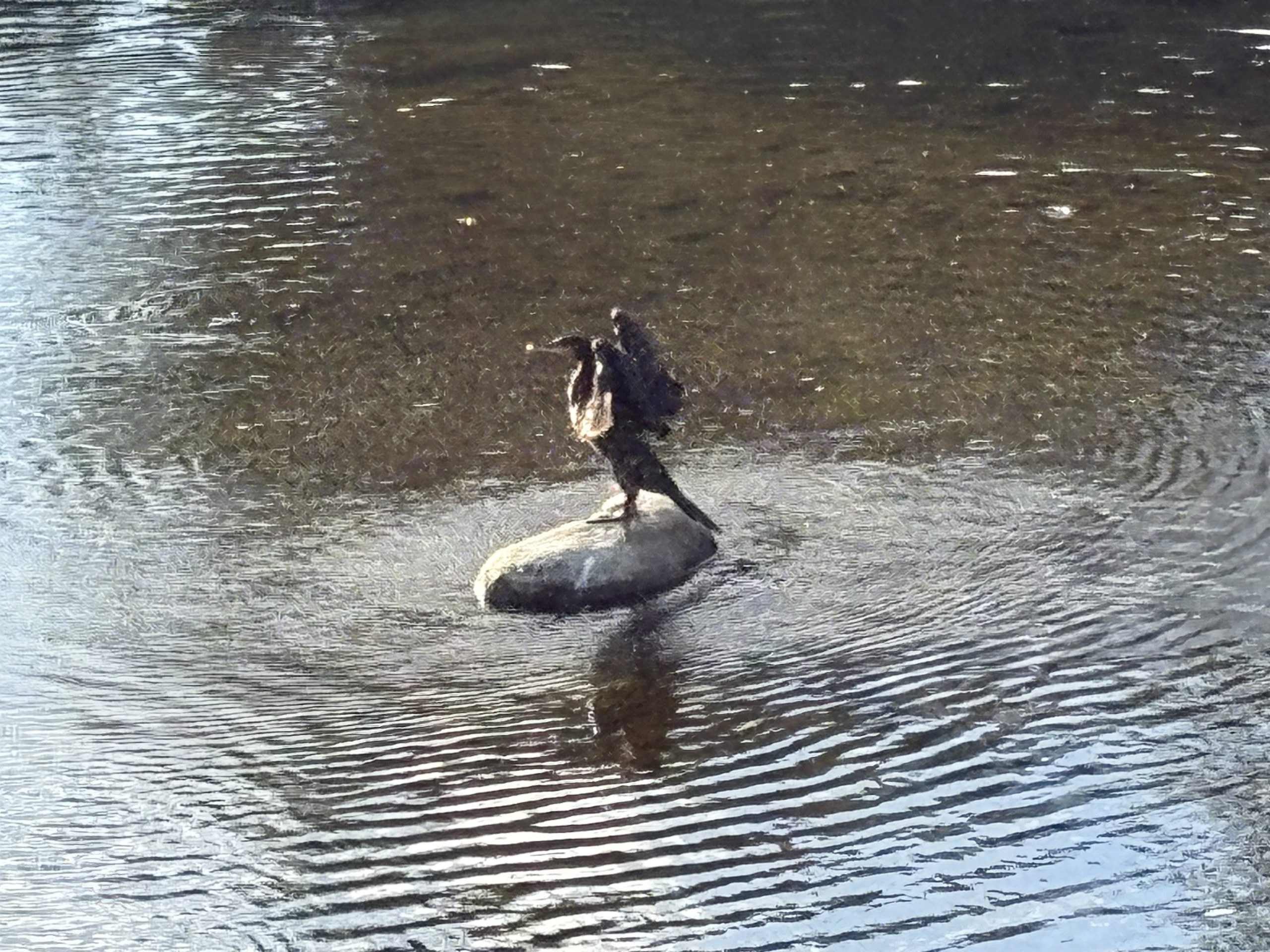 向こう岸に回ったヒラリちゃん 強い陽射しに一休みです(-“-;💦