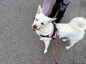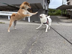 ヒラリちゃんを見て 嬉しくて飛び上がります🐕