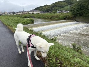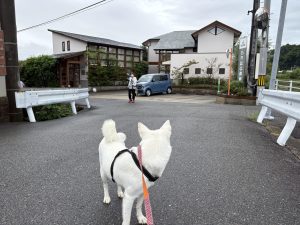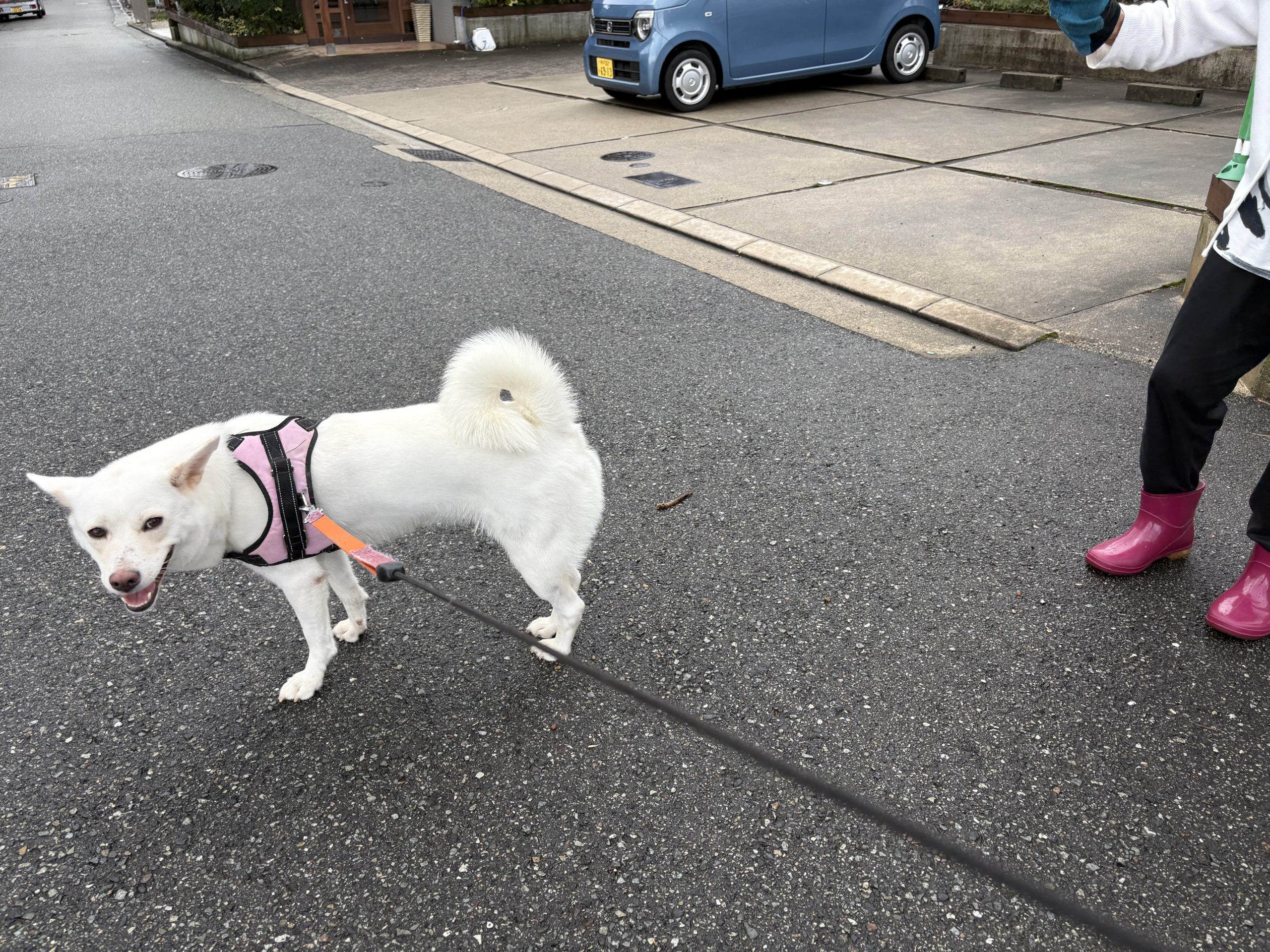 朝のお散歩。雨がなかなか止まなくて9時出発です~⏰