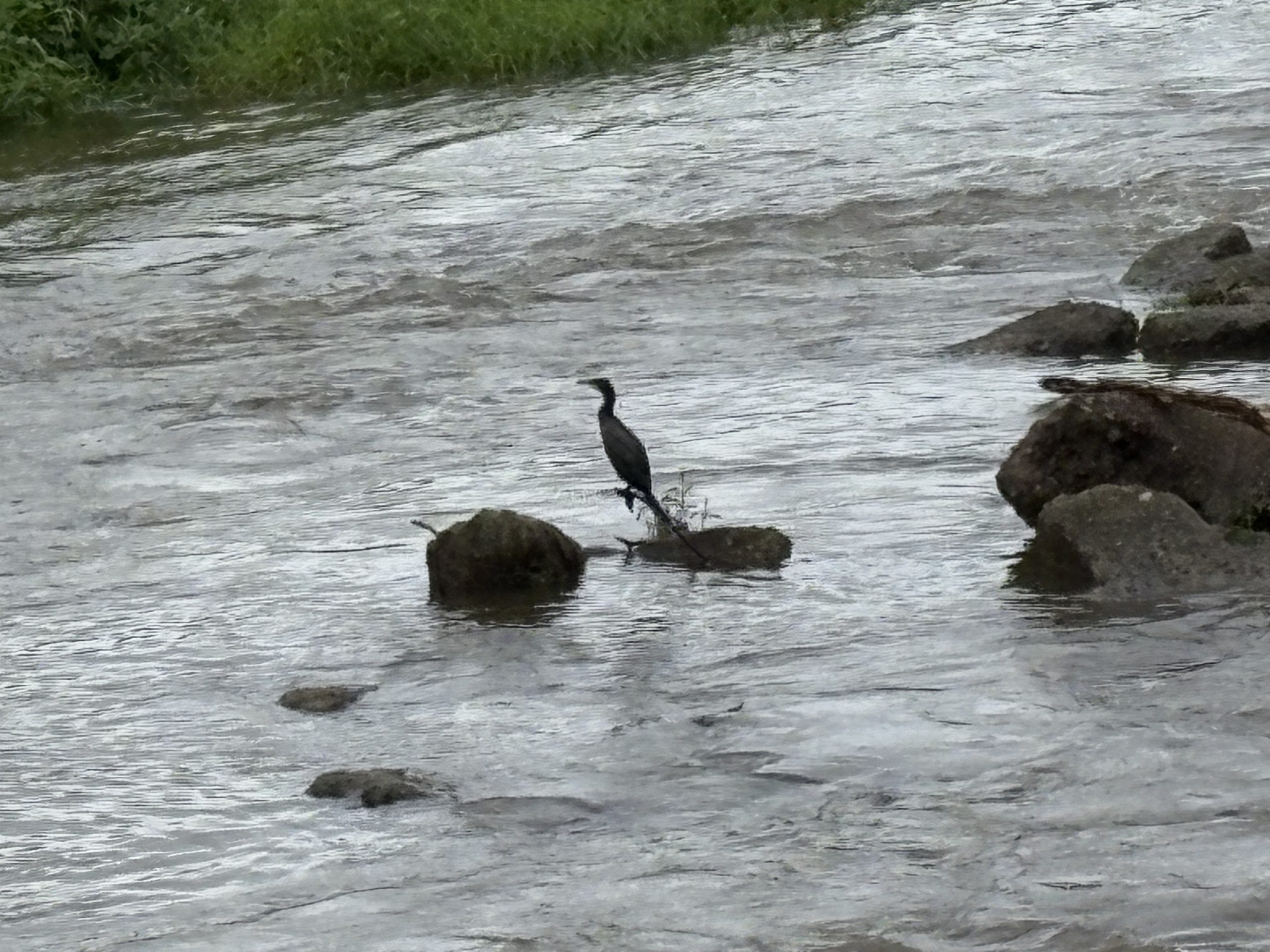 向こう岸では全景を究極の黒でまとめた お洒落なカワウさんΣ(・ω・ノ)ノ!