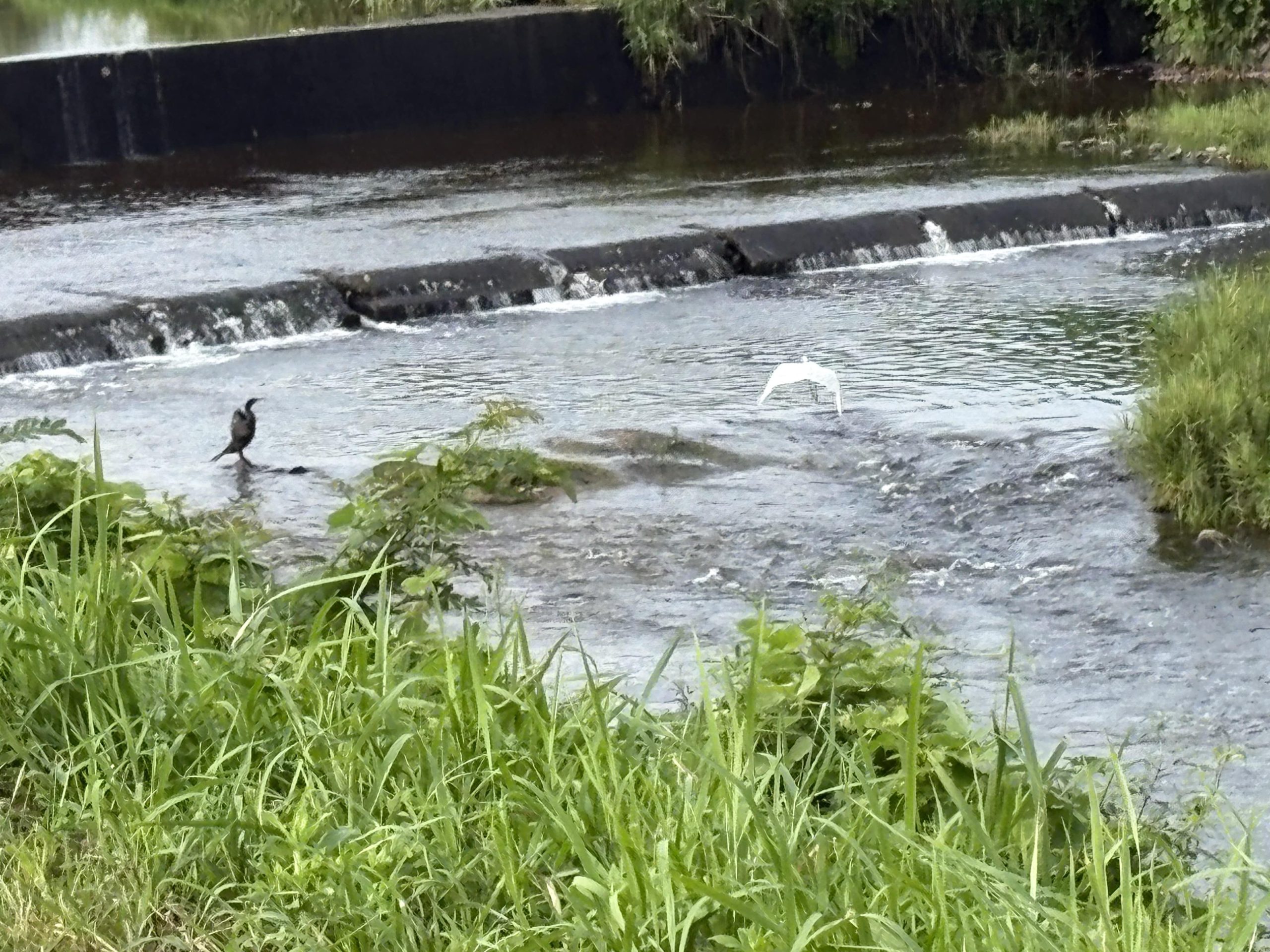 まだ流れのある三段壁 シラサギさん&カワウさんは仲良く水遊び中~ヽ(^。^)ノ