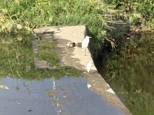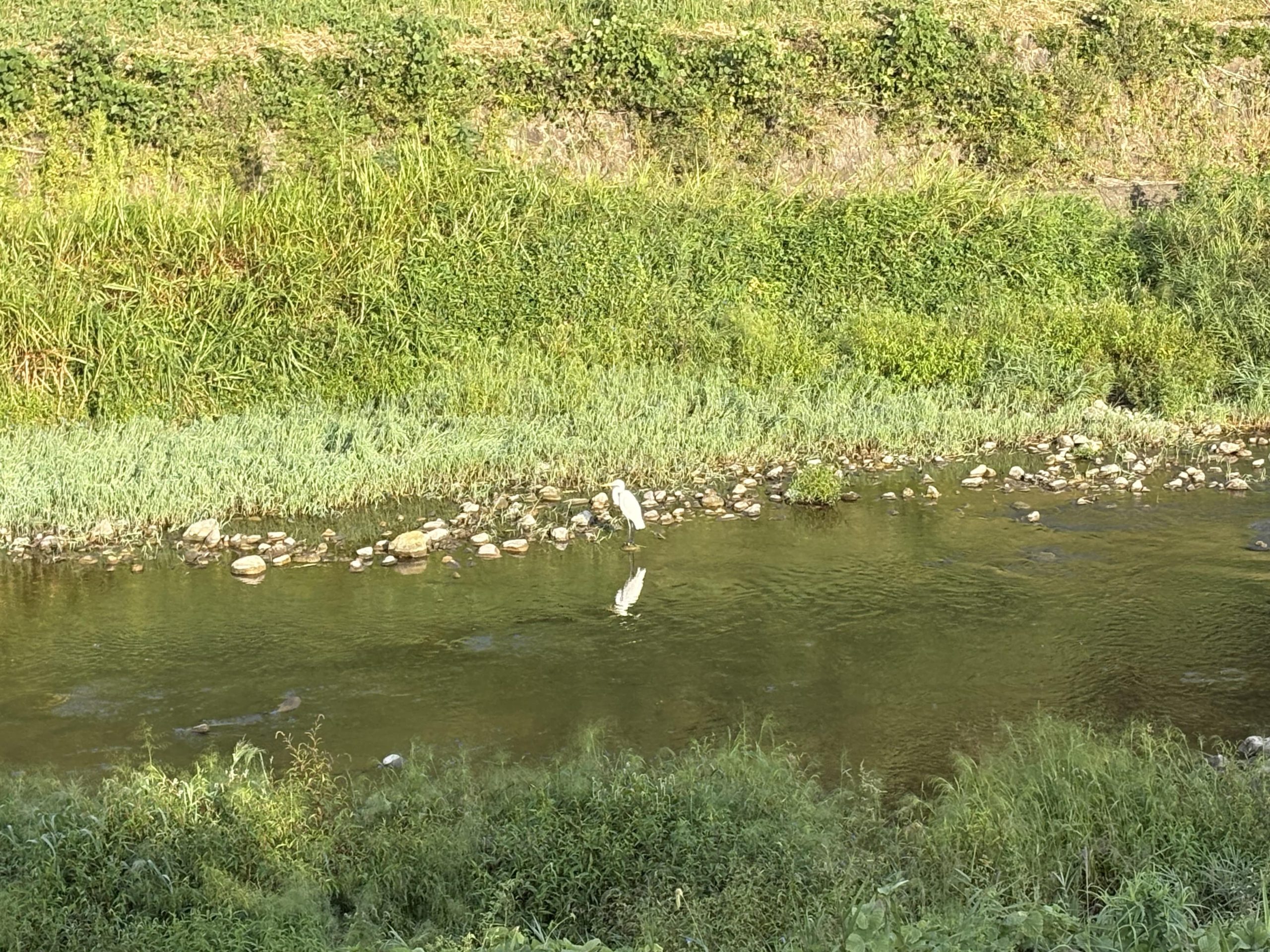 川にシルエットを映して すっかりくつろいでいるシラサギさん(*’▽’)