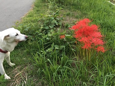 二年前の10月、彼岸花が咲く河川敷の土手で亡くなる前の愛おしいひまちゃんです🐶