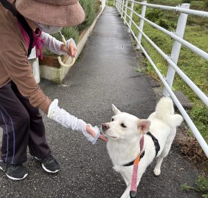 川の道で 久し振りに柴犬テンちゃんに逢いました🐕