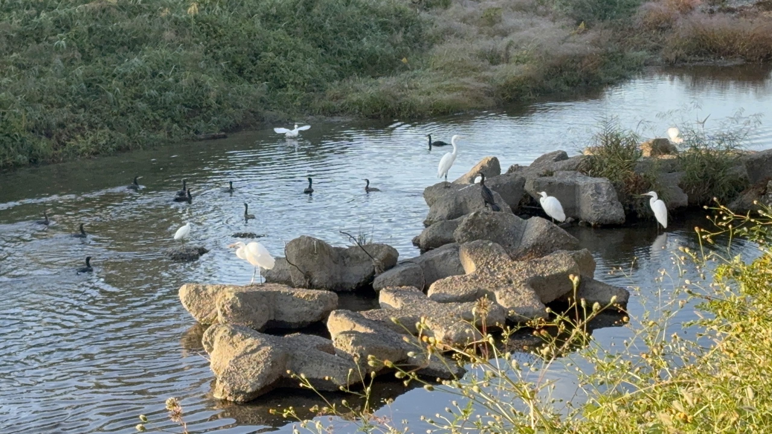 シラサギさん アオサギさん カワウさん 鴨さんたちも集合です🦆🦆