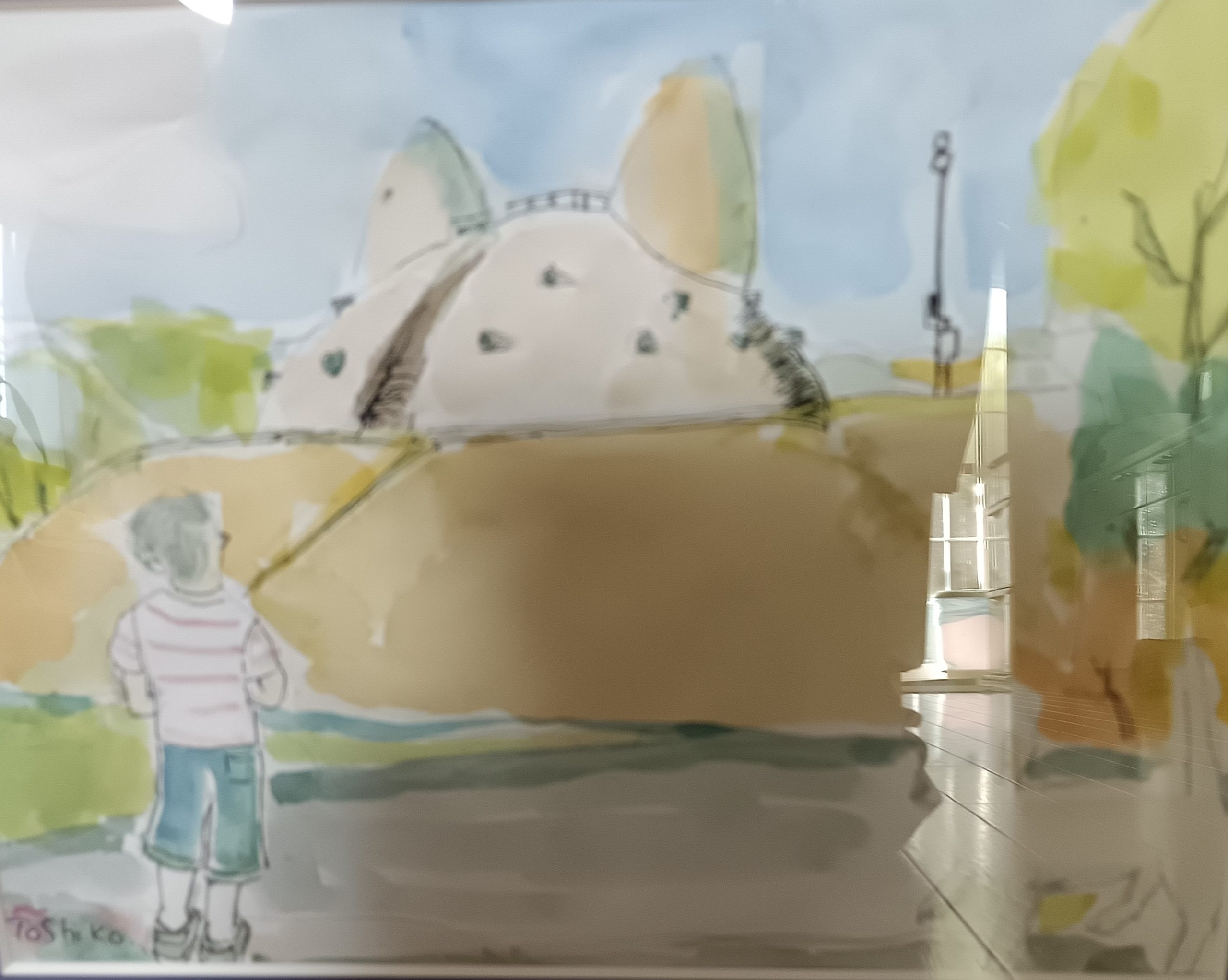 遊びの王国のモニュメントに 小学生だった孫と亡きひまちゃんを描きました🖼