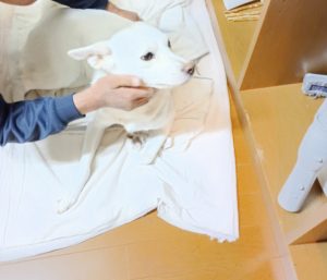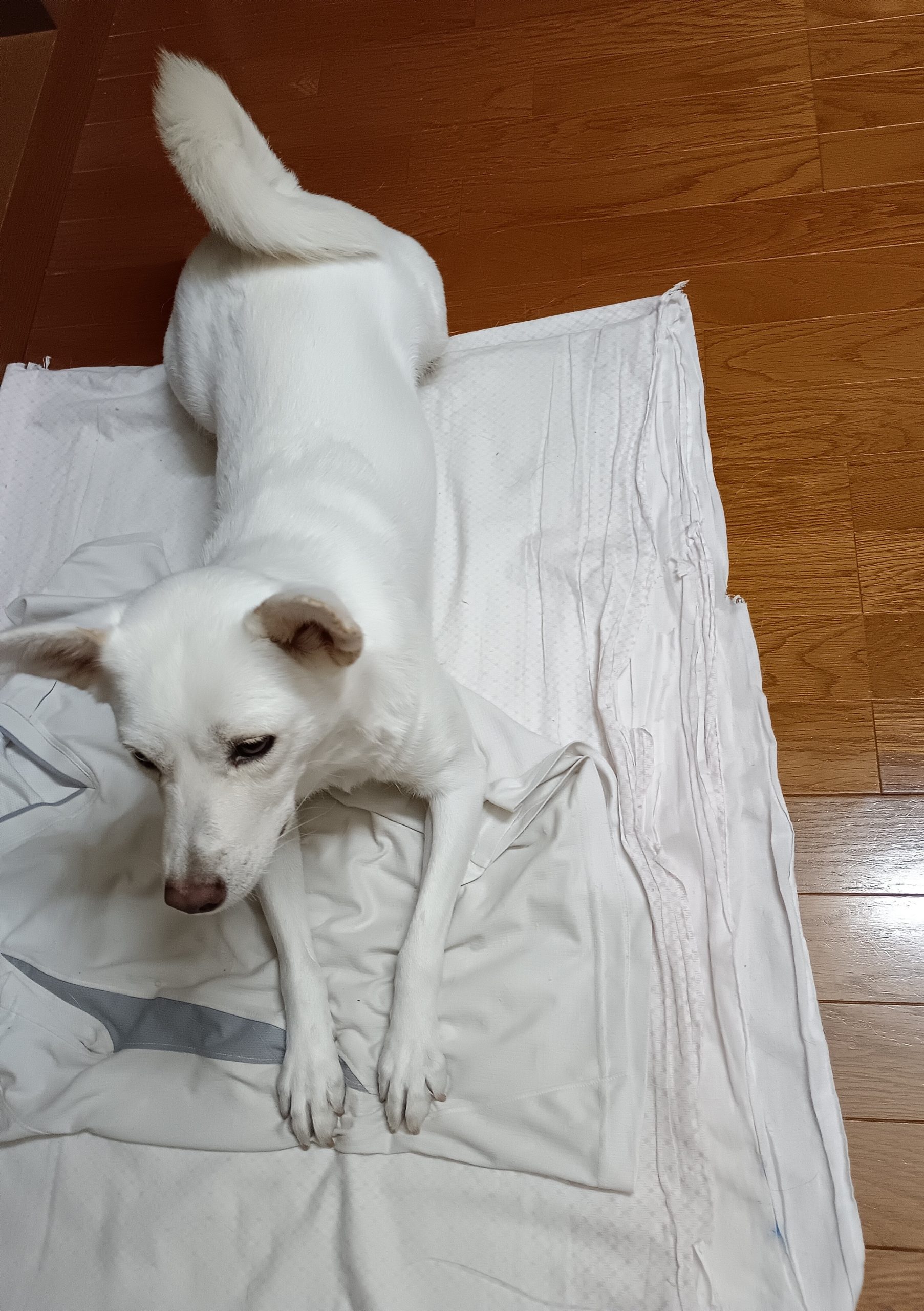 昨日の疲れを 散歩に行けないヒラリちゃんと一緒に癒しています(笑)